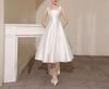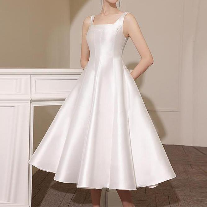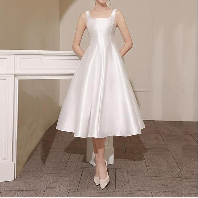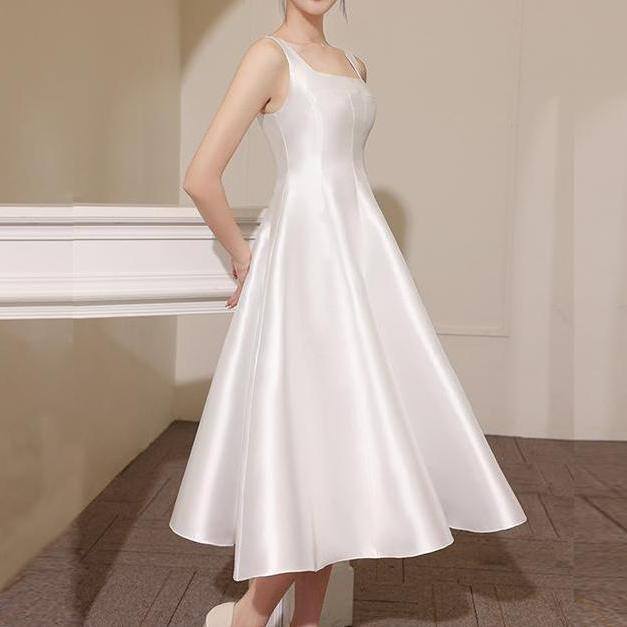 Vestido de novia ligero de satén francés de alta gama para mujer, blanco