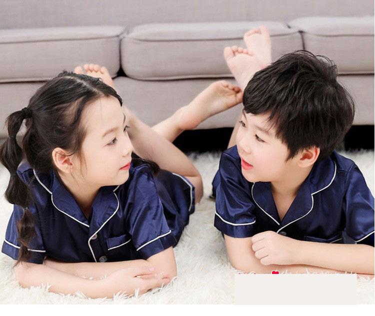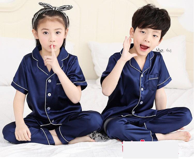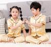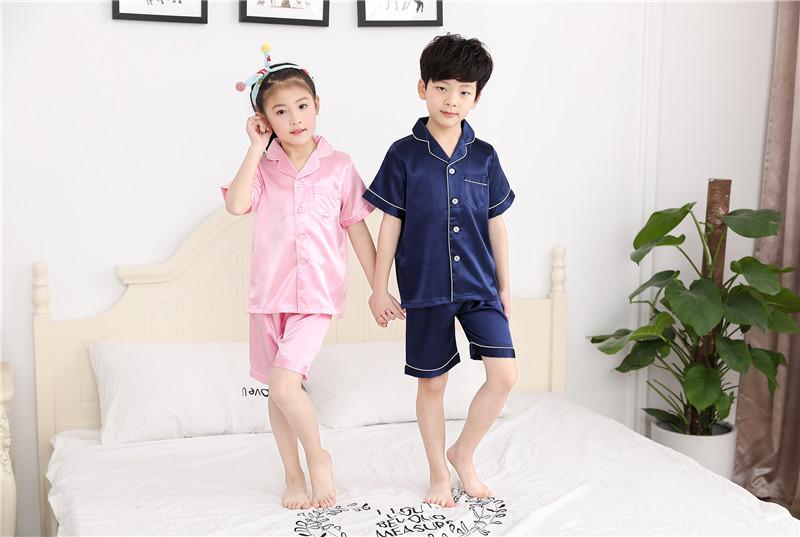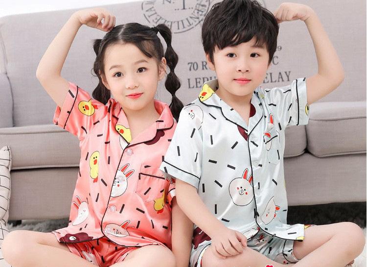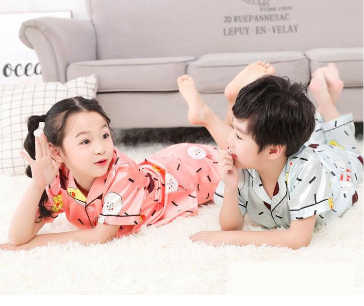 Pijamas para niños, primavera y verano, pantalones cortos de manga corta, ropa fina para el hogar para niños, pijamas de seda para niñas, ropa con aire acondicionado