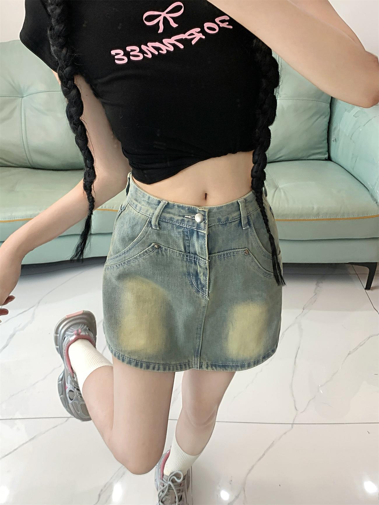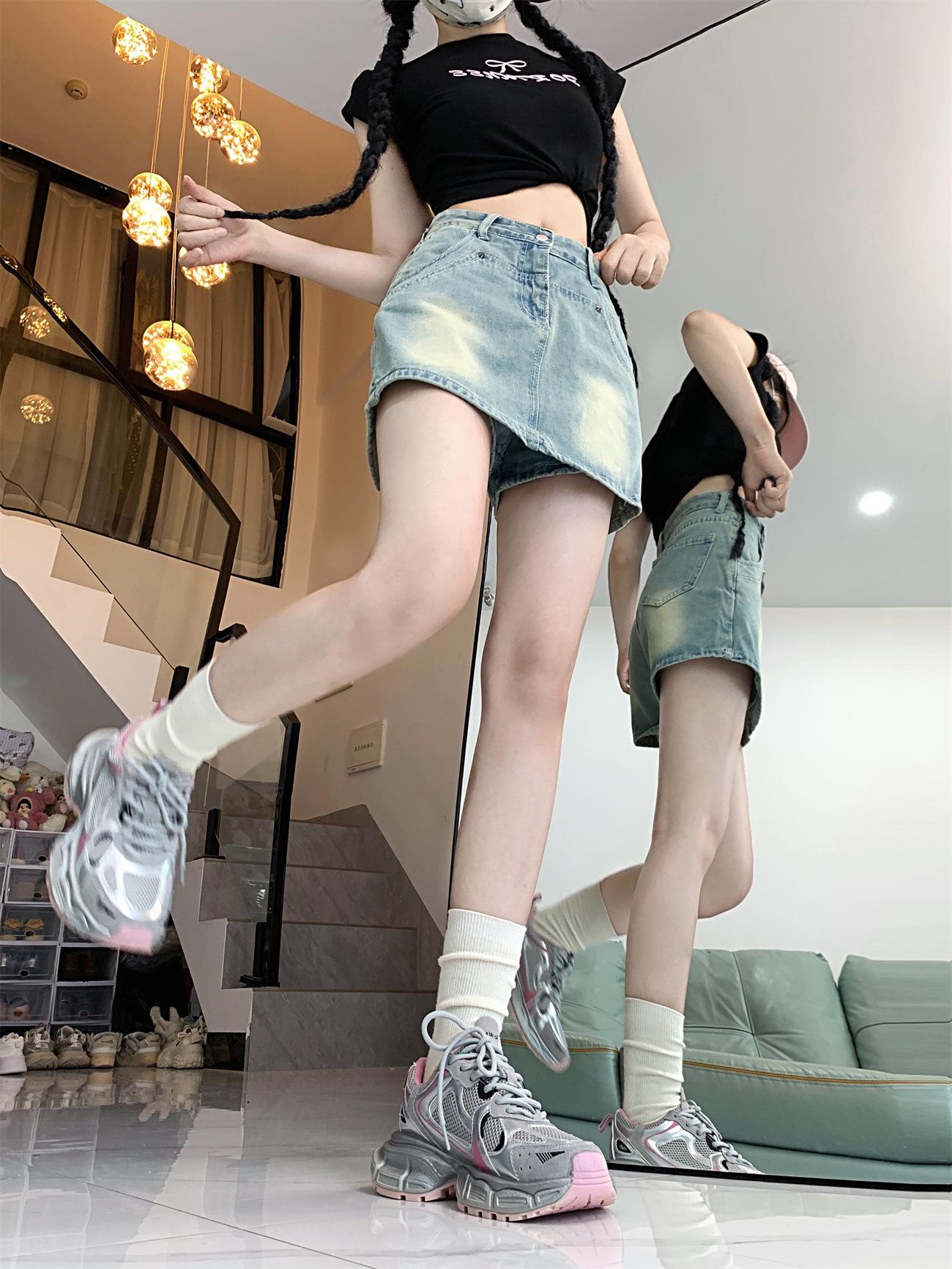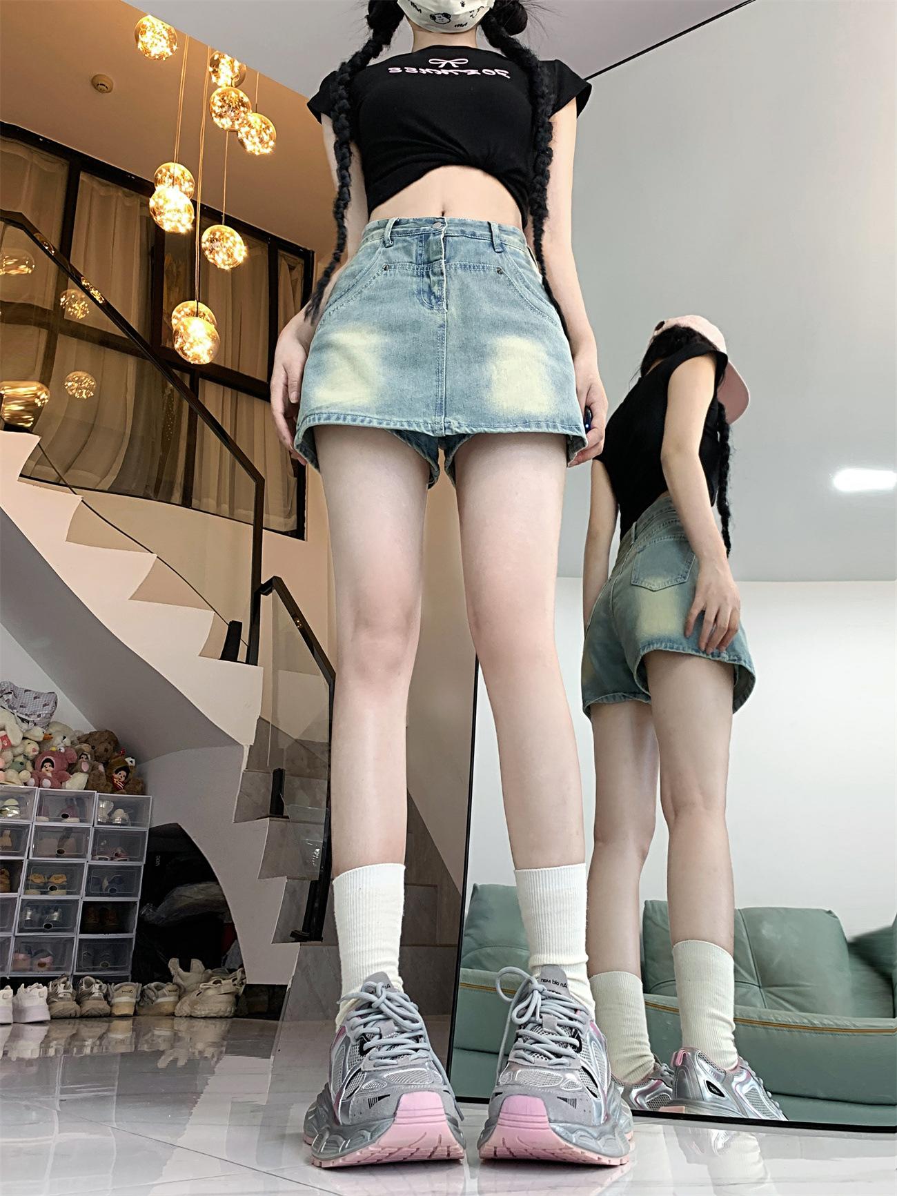 Falda vaquera línea A para mujer 2023 Verano Nuevo diseño Nicho Culottes anti-exposición Cintura alta Cadera Falda corta