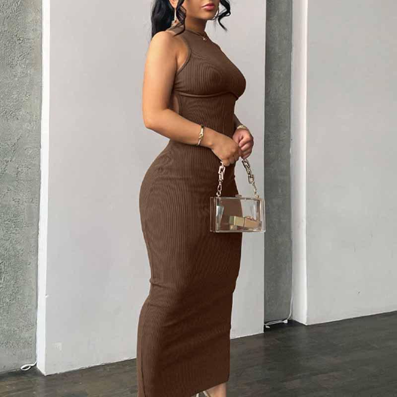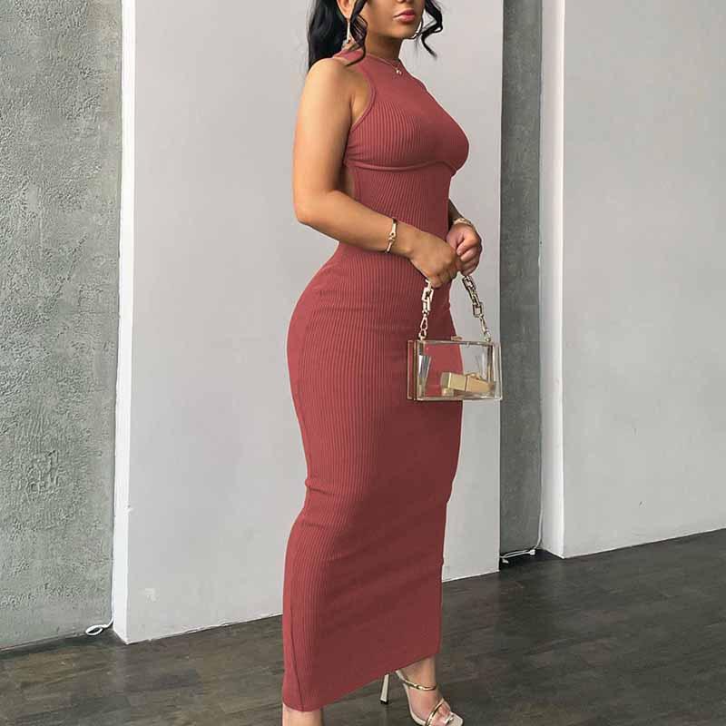 Vestido largo ajustado sin mangas con espalda descubierta para mujer europea y americana, novedad de verano 2024, AliExpress, comercio exterior al por mayor