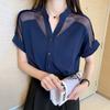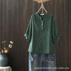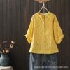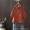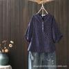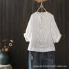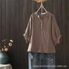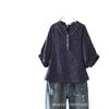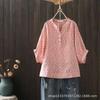 Camisa de Gasa de Algodón de Doble Capa Estilo Coreano Estampada con Cuello en V Semiabierto y Manga Murciélago para Mujer Primavera y Verano 2024 Nueva Blusa Casual Holgada
