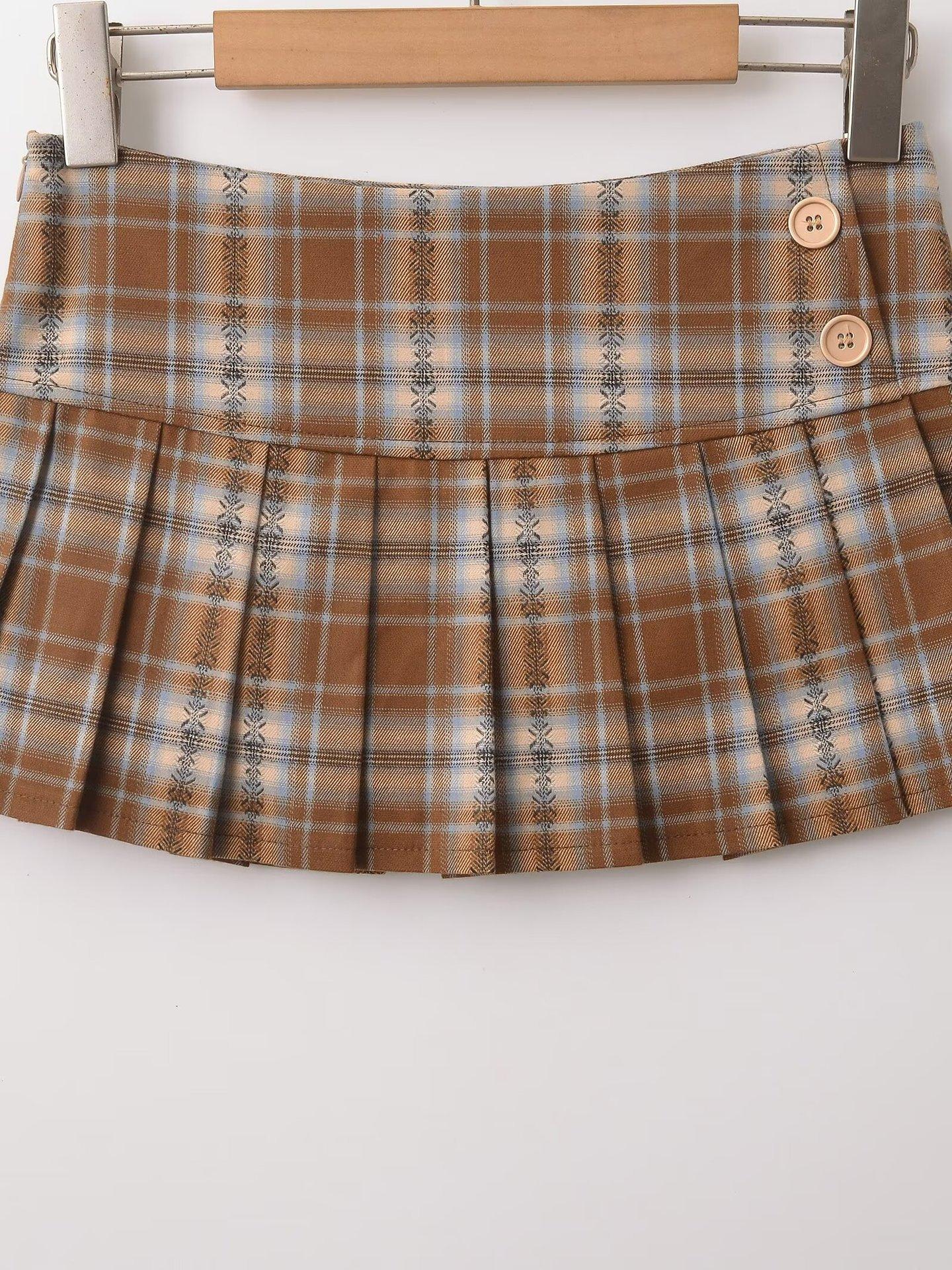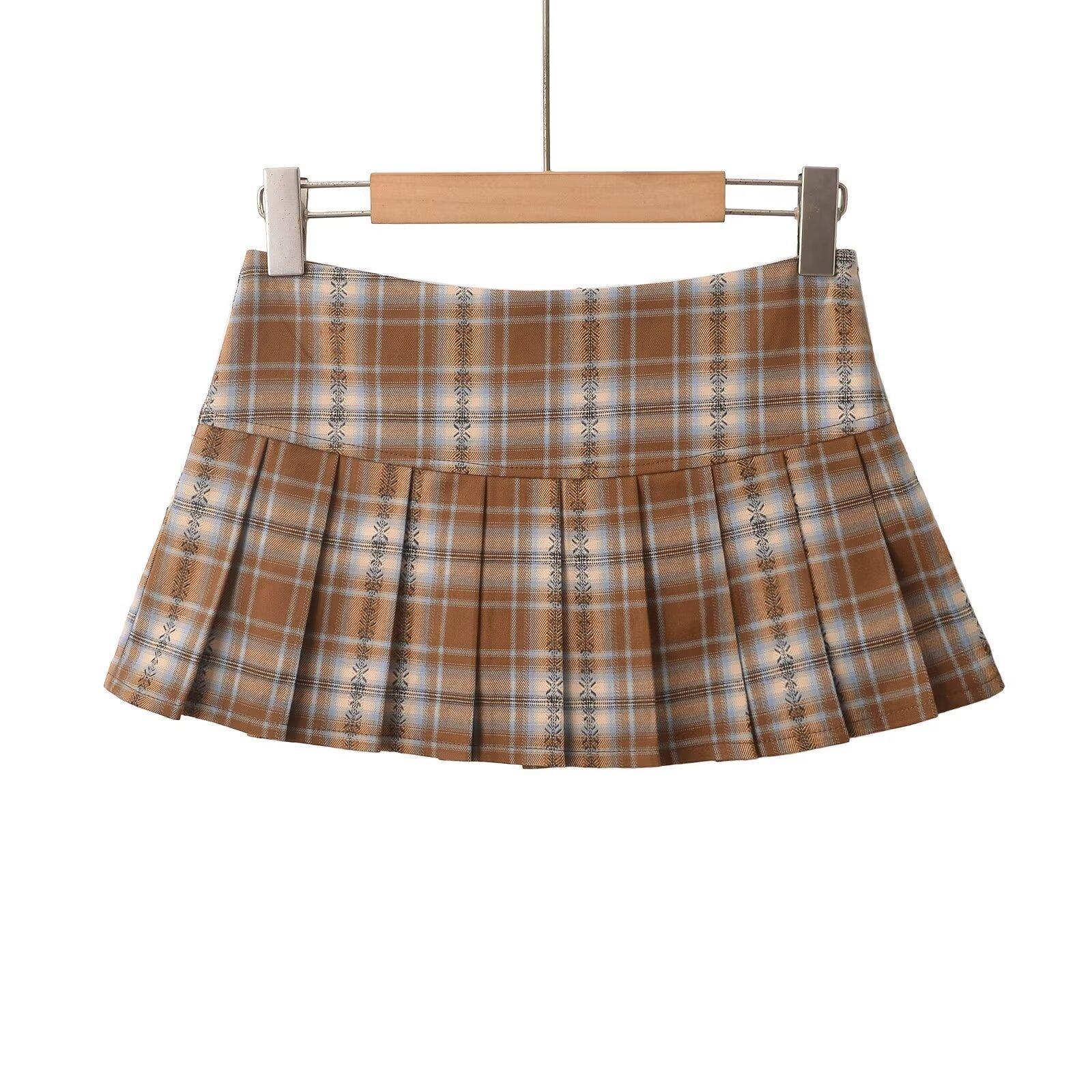 Estilo Deseo Puro Chica Caliente Sexy Chica Caliente Falda Plisada para Mujer Estilo Americano Estilo Universitario Cintura Alta Cuadros Rojos Falda Corta Antideslumbrante