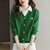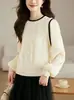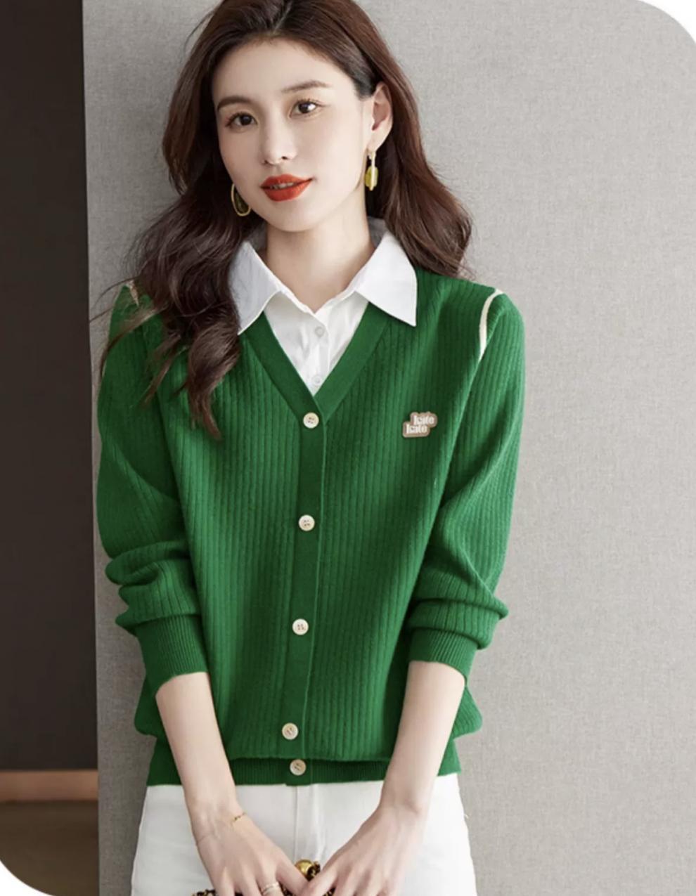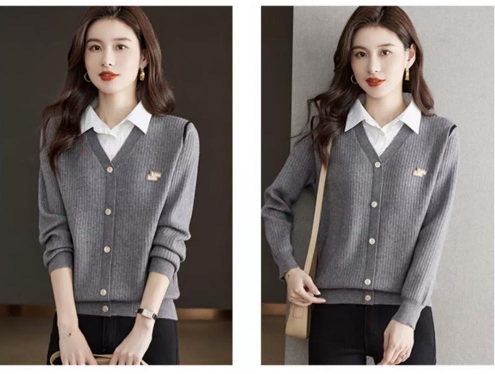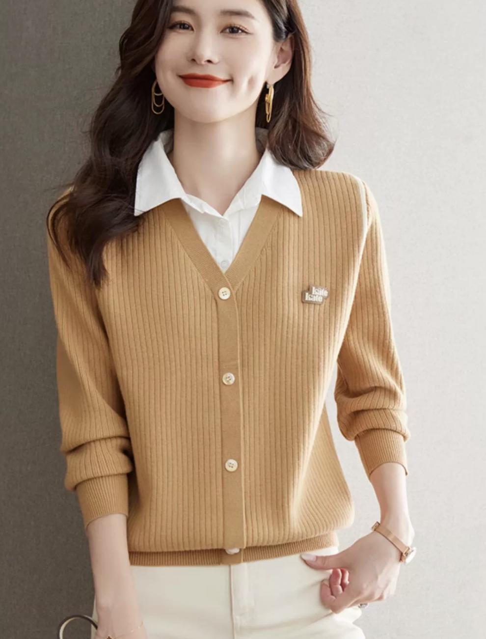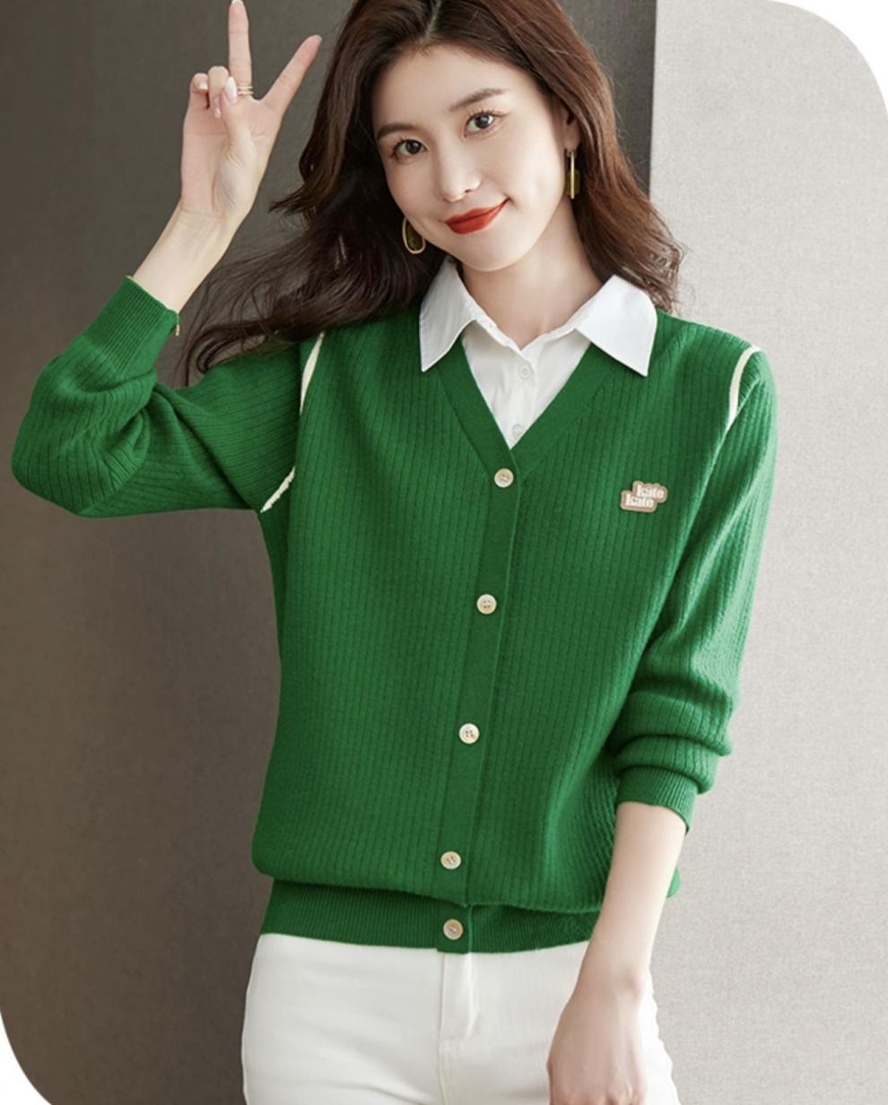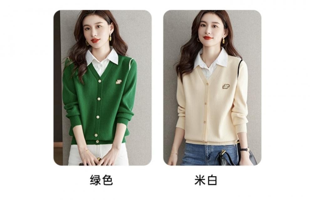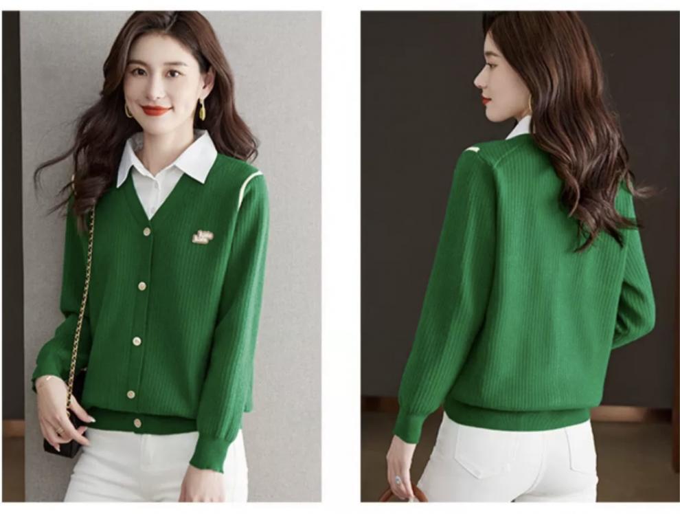 Tops Falsos de Dos Piezas para Mujer, Modernos y Elegantes Primavera y Otoño 2025 Nueva Camisa con Cuello Suéter Tejido Holgado de Manga Larga Camisa Básica