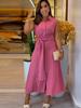 Vestido de verano 2025 transfronterizo nuevo de Amazon, color sólido, con solapa, cintura y cordones, sexy y a la moda.