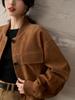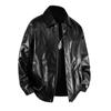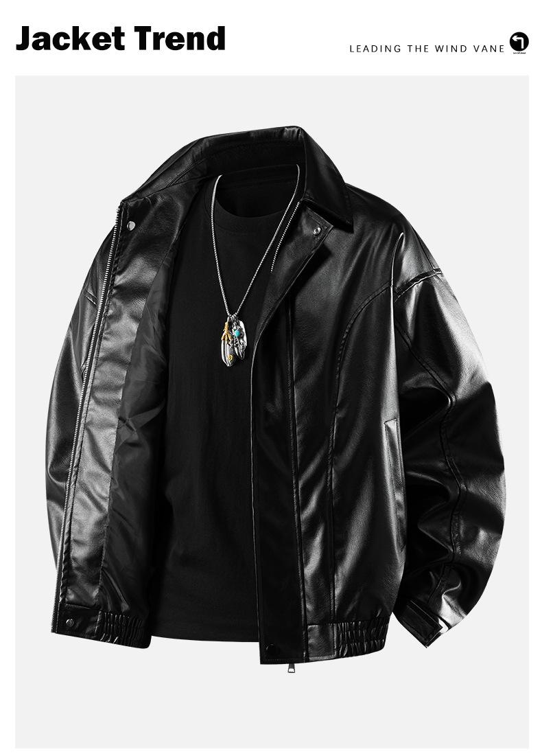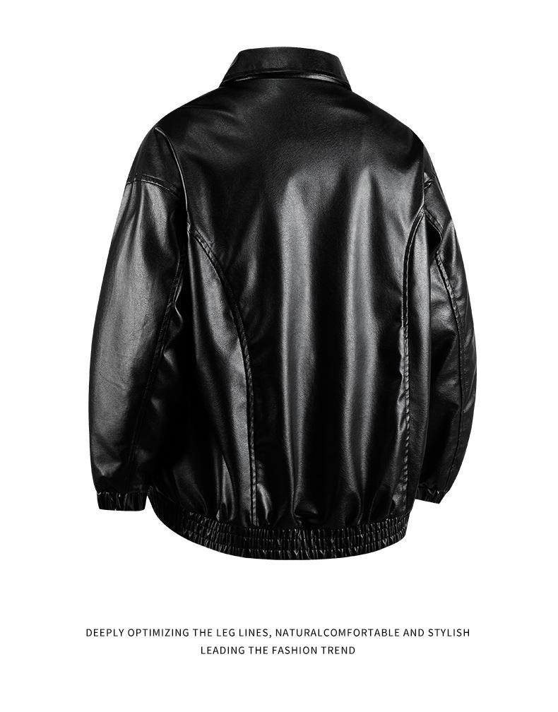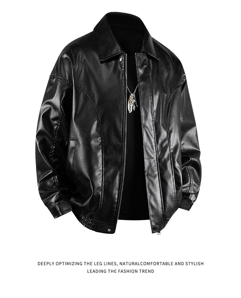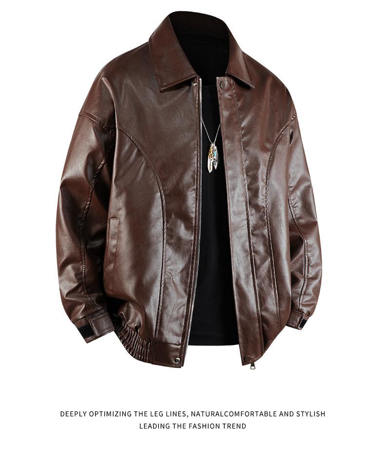 Abrigo de cuero con solapa estilo retro americano, estilo murciélago corto, chaqueta de cuero estilo motociclista, abrigo retro americano YH35