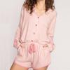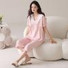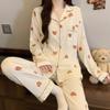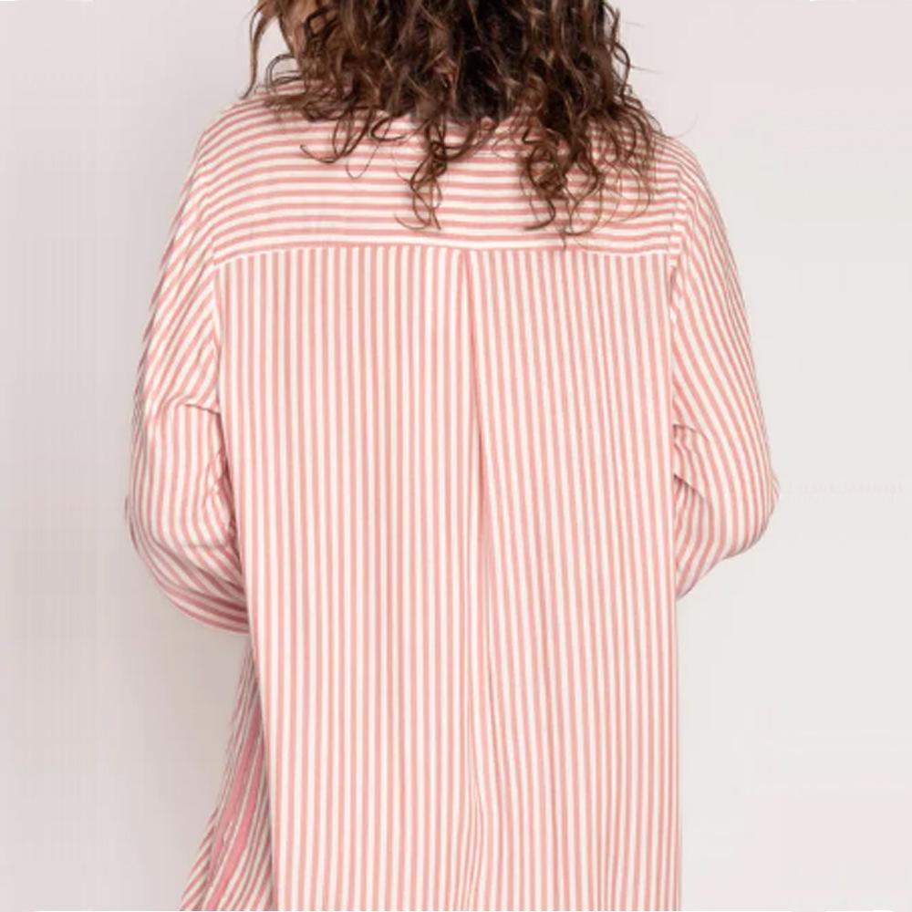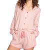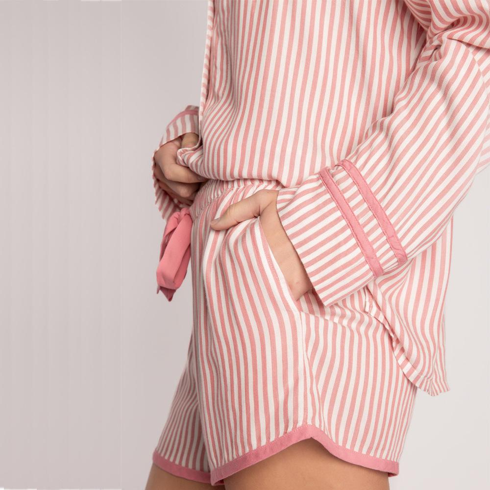 Traje de Ropa para Casa a Rayas para Mujer Nuevo Elegante Pijama para Mujer Manga Larga Shorts Camisa Conjunto de Dos Piezas 3719