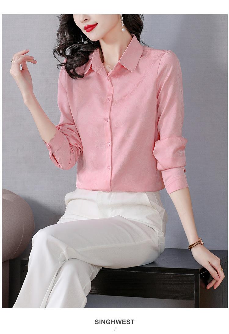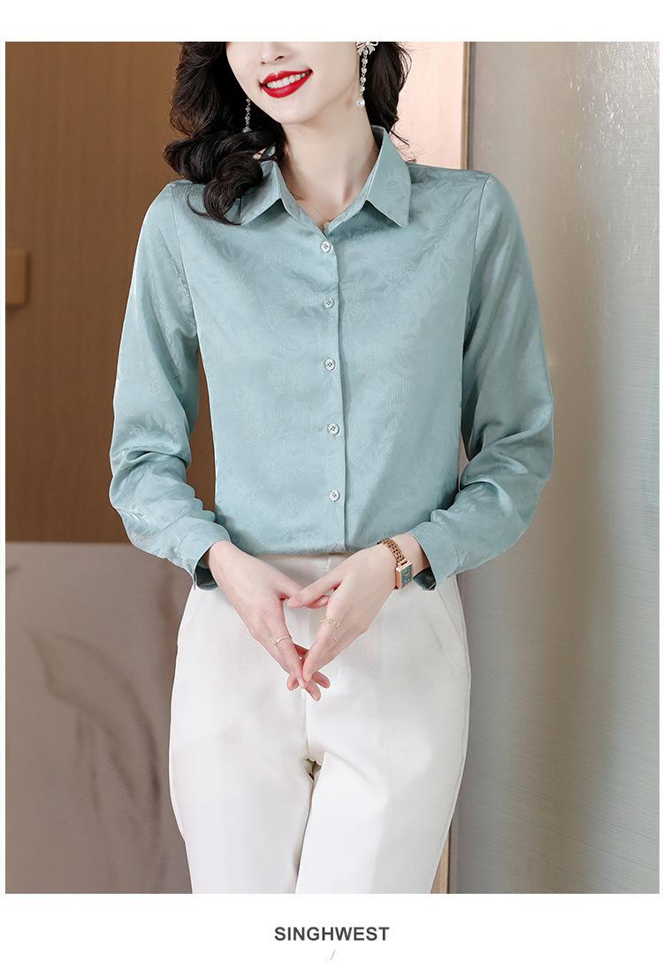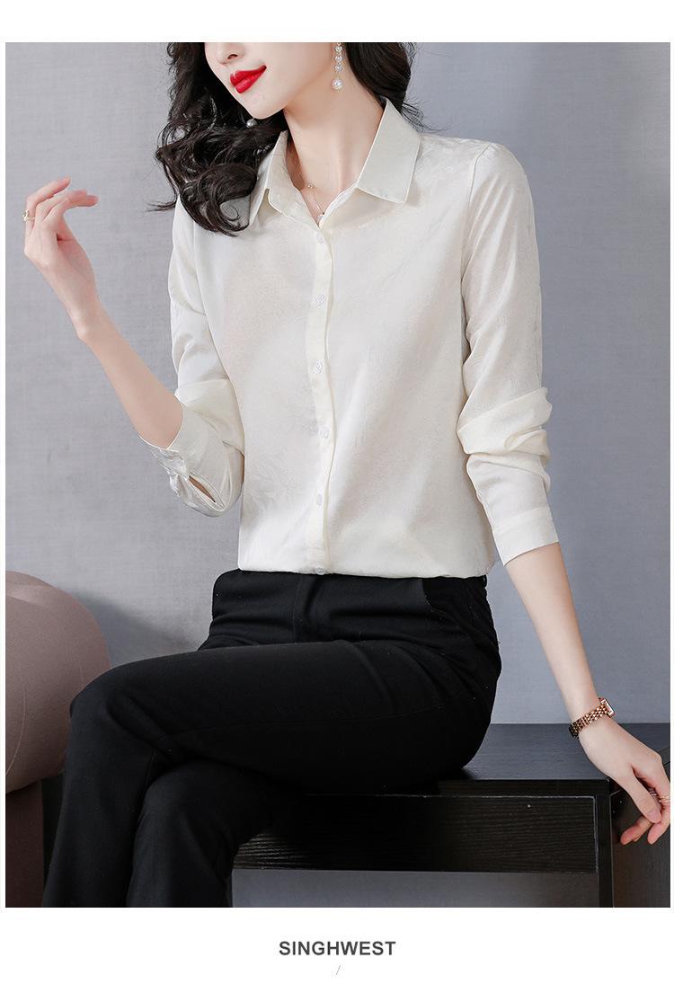 Camisa de seda Hangzhou de moda nueva primavera y otoño para mujer, elegante marca de manga larga 2025, blusa de seda morera madre