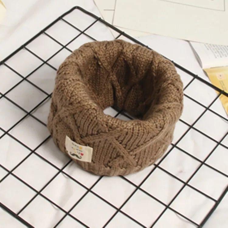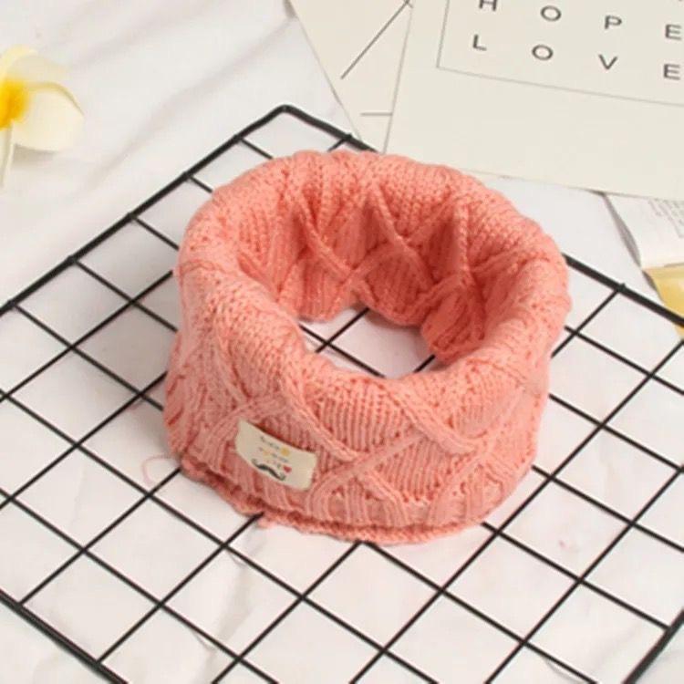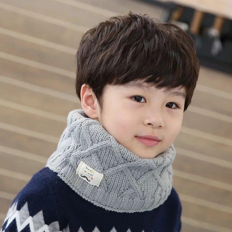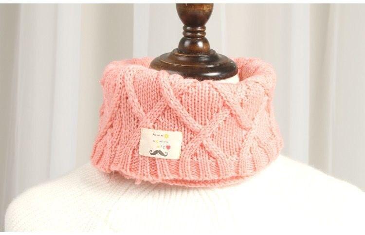 Bufanda de punto de color sólido con etiquetado para niños de otoño e invierno, estilo coreano, gruesa y cálida bufanda de lana para niños y niñas, para bebés, que combina con todo.