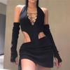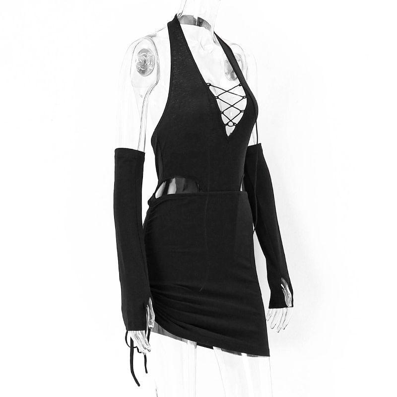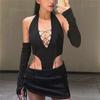 Mono sexy de estilo europeo y americano con escote en V, cuello halter y espalda descubierta, conjunto de dos piezas con falda con cordón a la moda para mujer de verano.