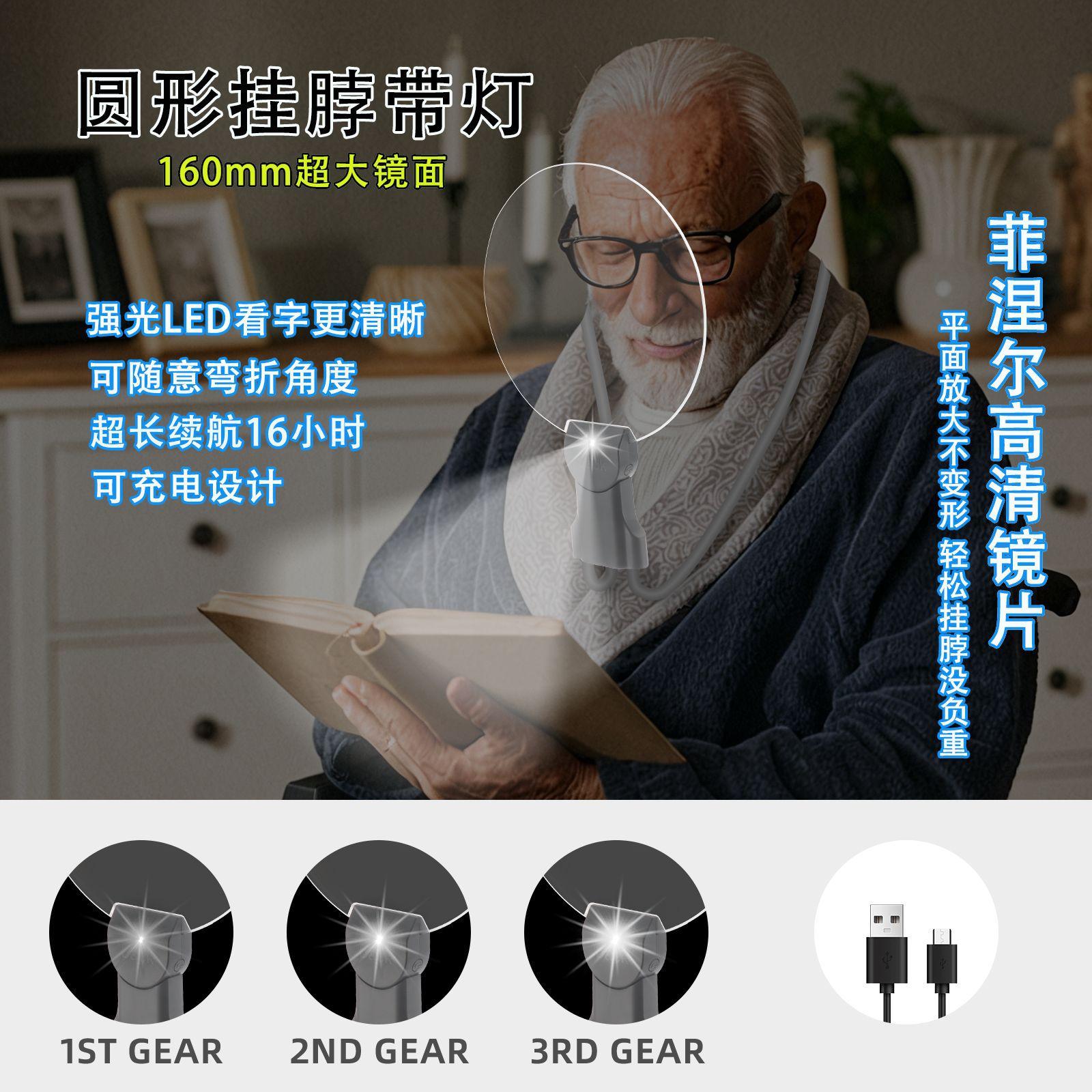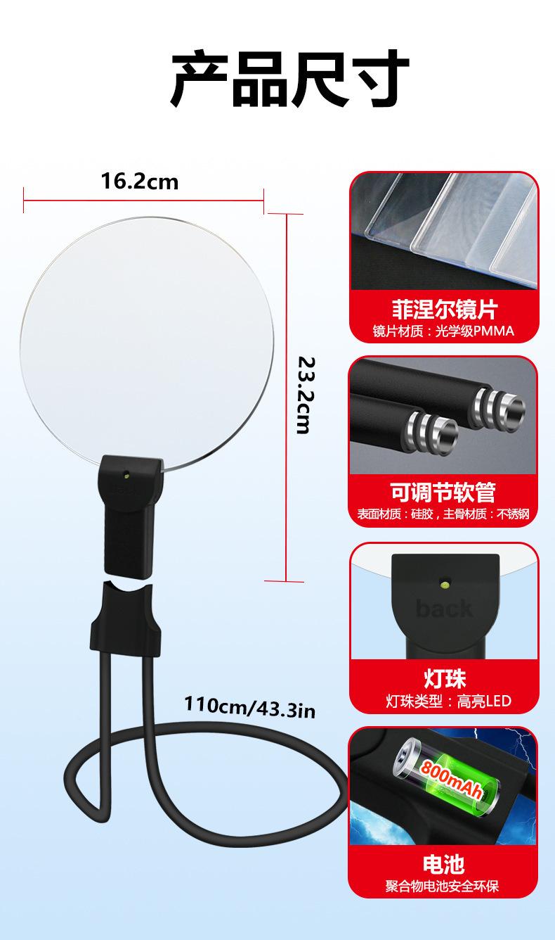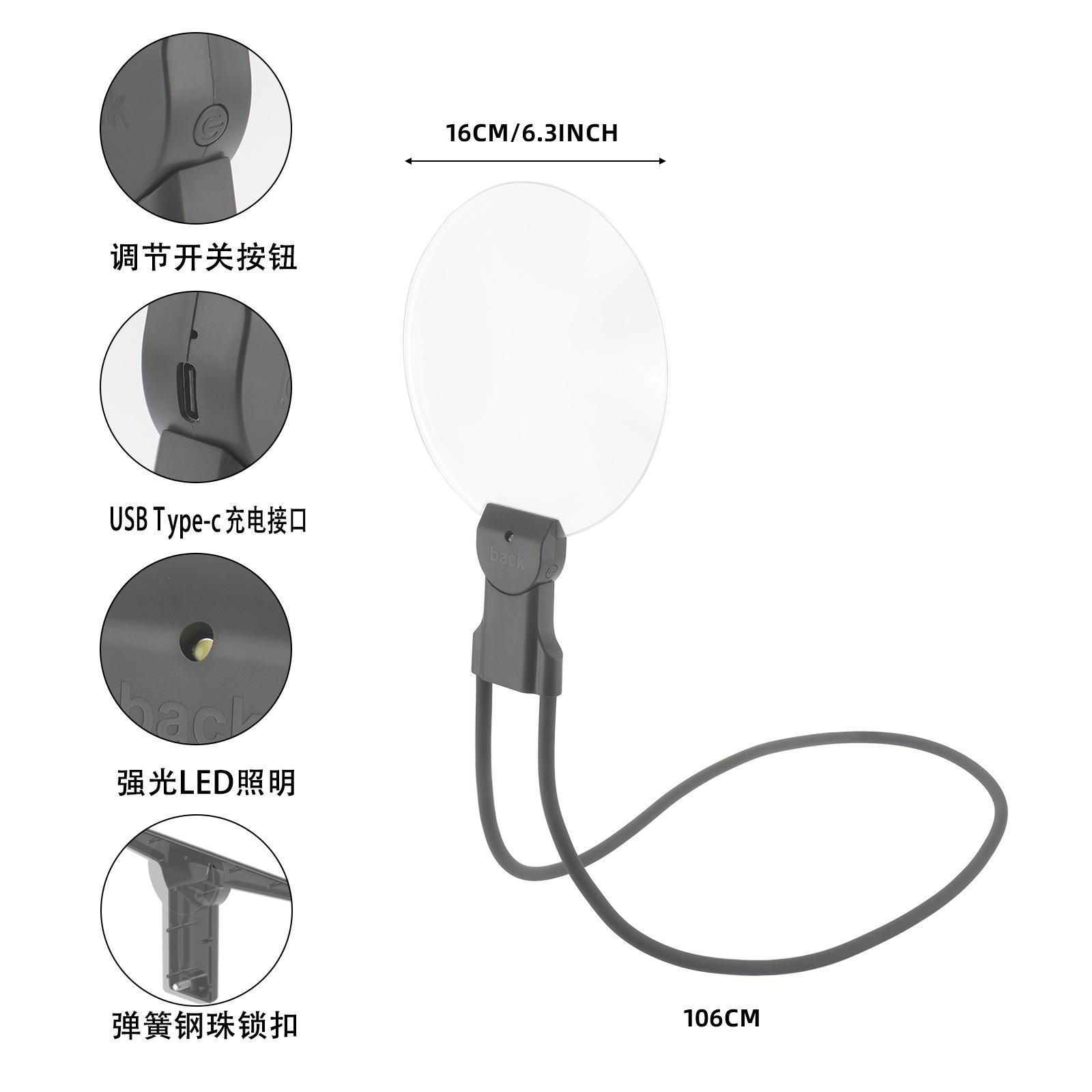 Lupa colgante para cuello de teléfono móvil con lámpara, carga, lectura, lupa de espejo grande, Amazon más vendido, colgante para cuello, de escritorio, de mano