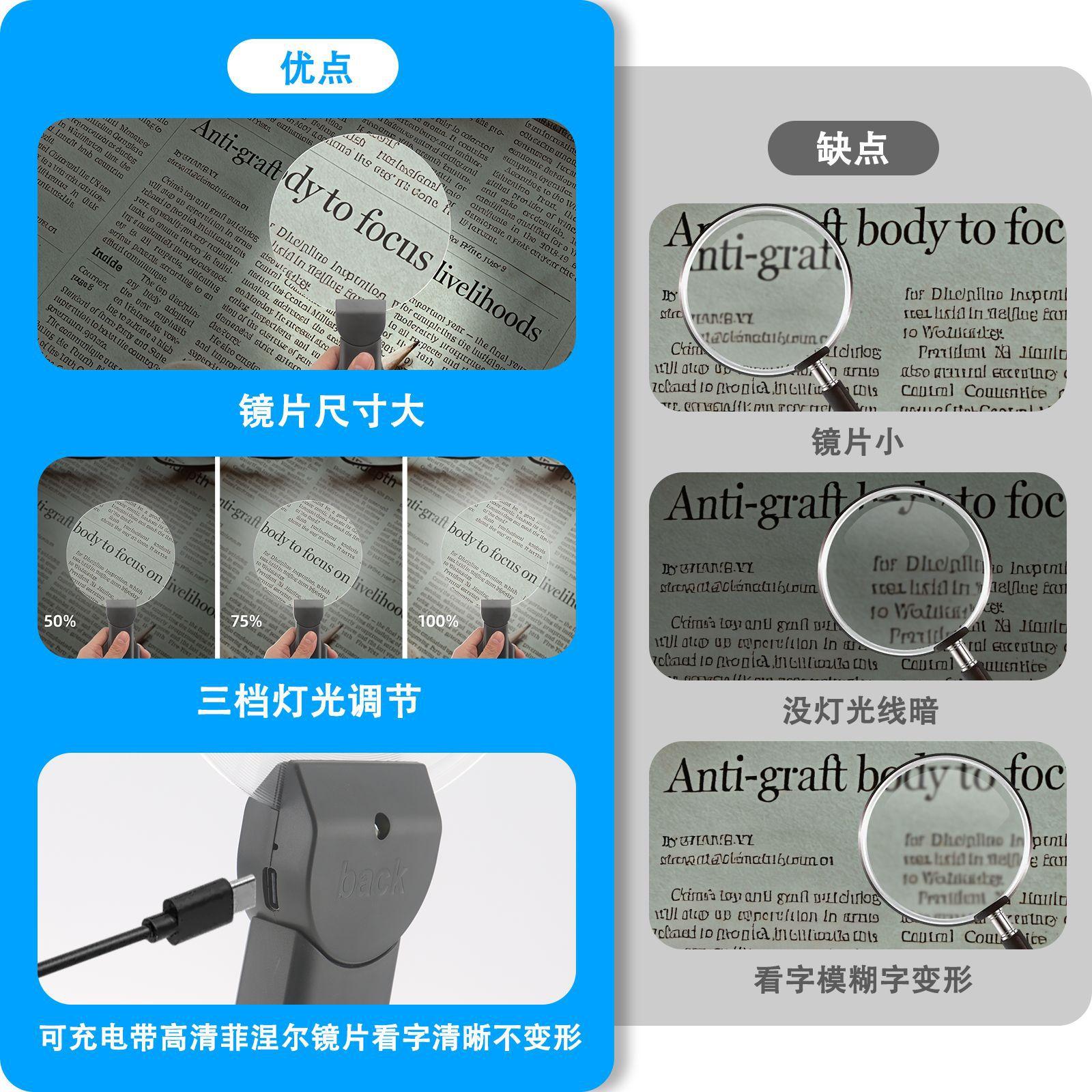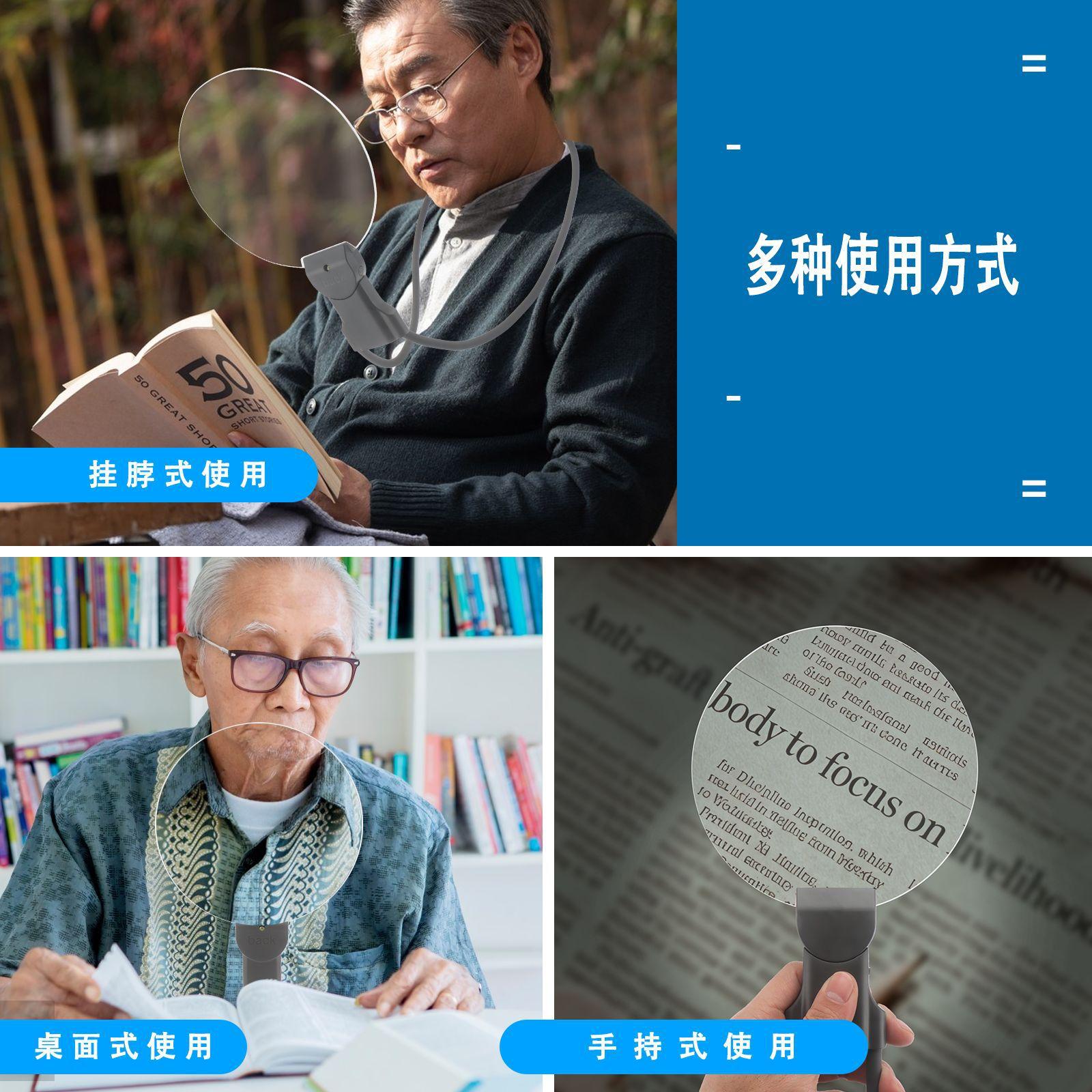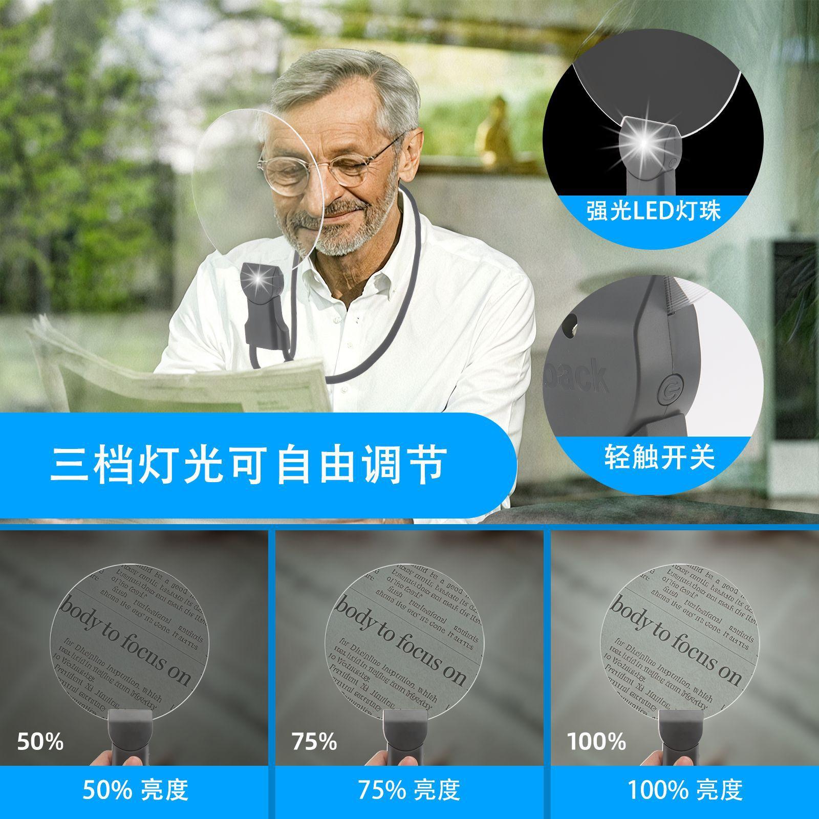 Lupa colgante para cuello de teléfono móvil con lámpara, carga, lectura, lupa de espejo grande, Amazon más vendido, colgante para cuello, de escritorio, de mano