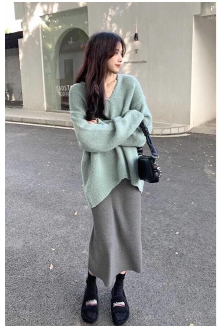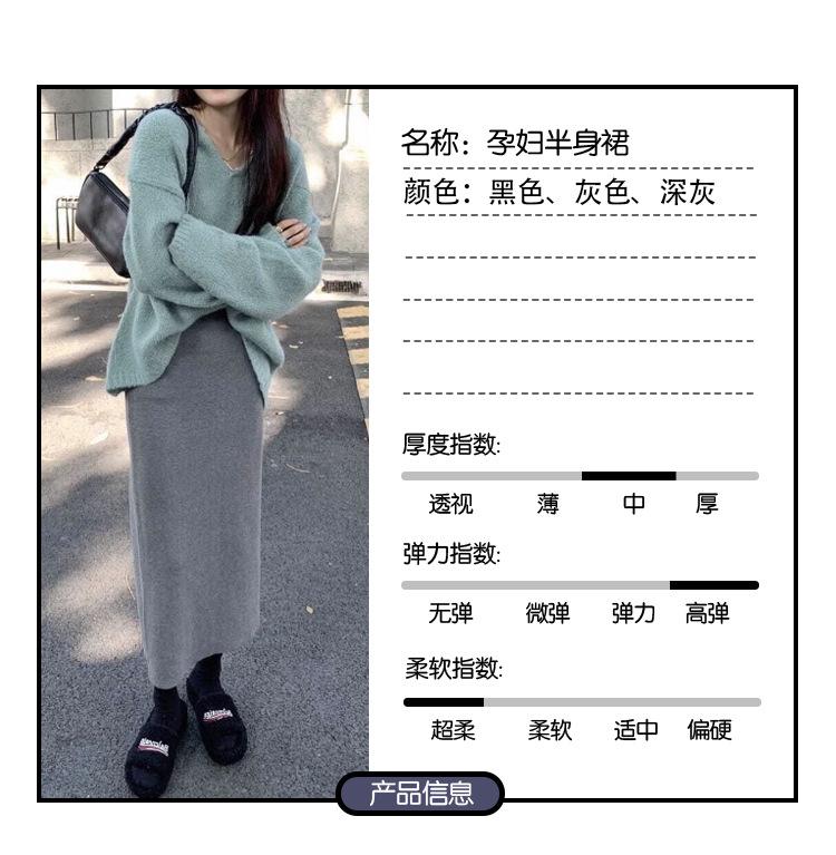 Falda de Punto Premamá sin Soporte para el Vientre para Mujer Verano Primavera y Otoño Embarazo Pequeño Gris Look Adelgazante Recta Cadera