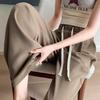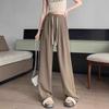 Pantalones de traje rectos, de cintura alta, con cordón ajustable, de pierna ancha, cortos, finos e informales, de verano, para mujer, talla 150XS, 145