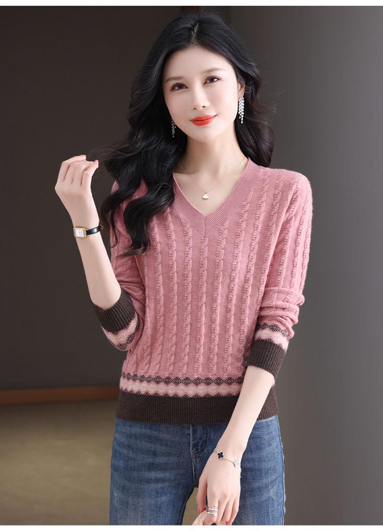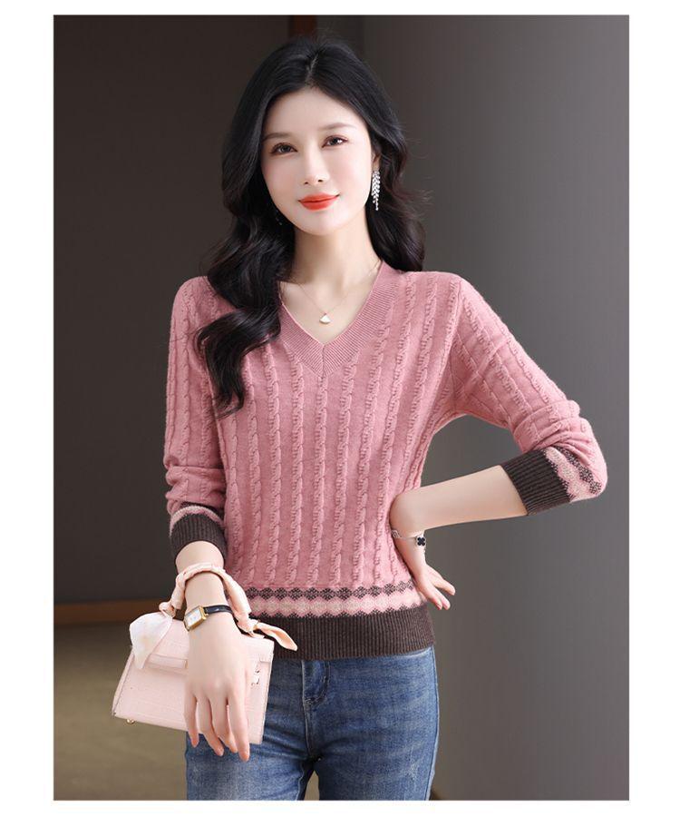 24 nuevas prendas de punto de manga larga para otoño e invierno, prendas de punto nuevas, holgadas y de moda, prendas de punto con un toque de otoño e invierno, camisetas de fondo para mujer.