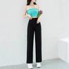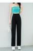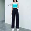 Pantalones de verano 145x finos de color verde frijol para mujer, cintura alta, holgados, pierna ancha, rectos, informales, talla 150 pequeña