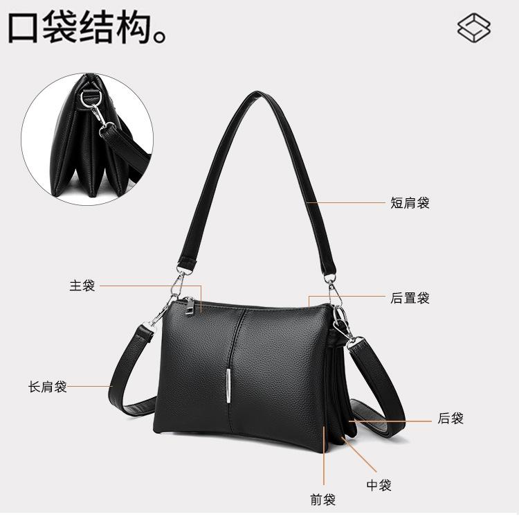 Bolso de hombro para mujer, moderno, sencillo, de cuero suave y texturizado, para uso diario, bandolera cuadrada pequeña con múltiples capas y almacenamiento.
