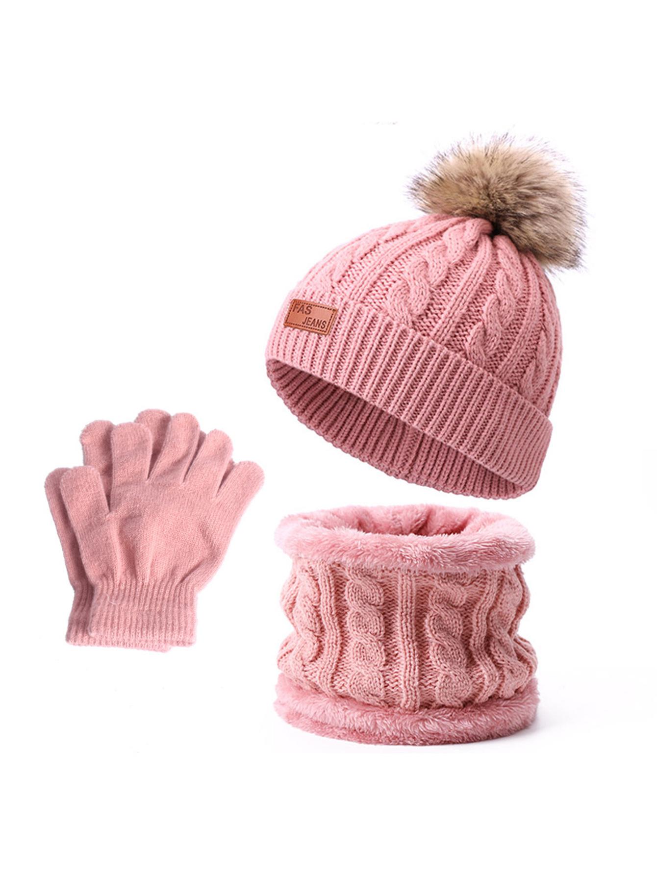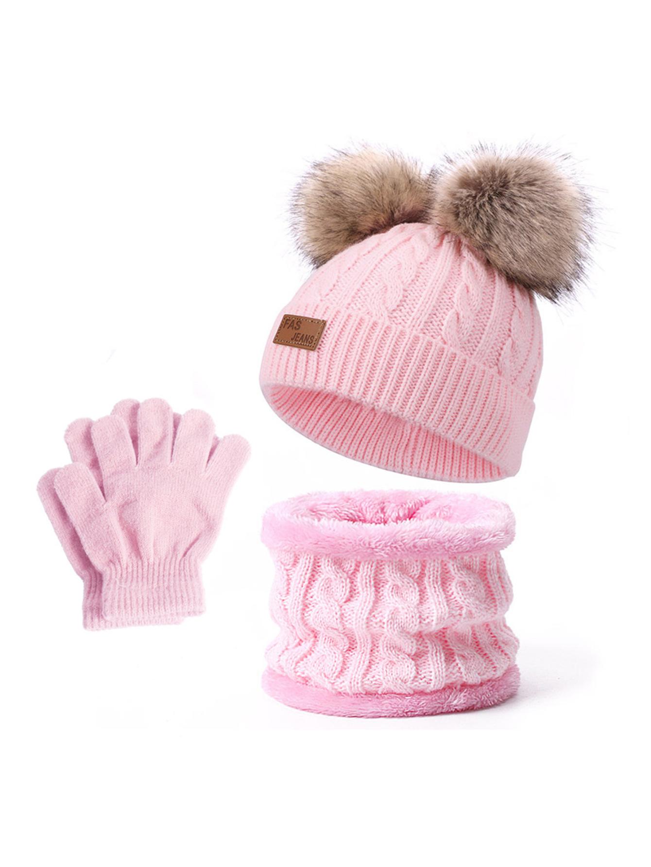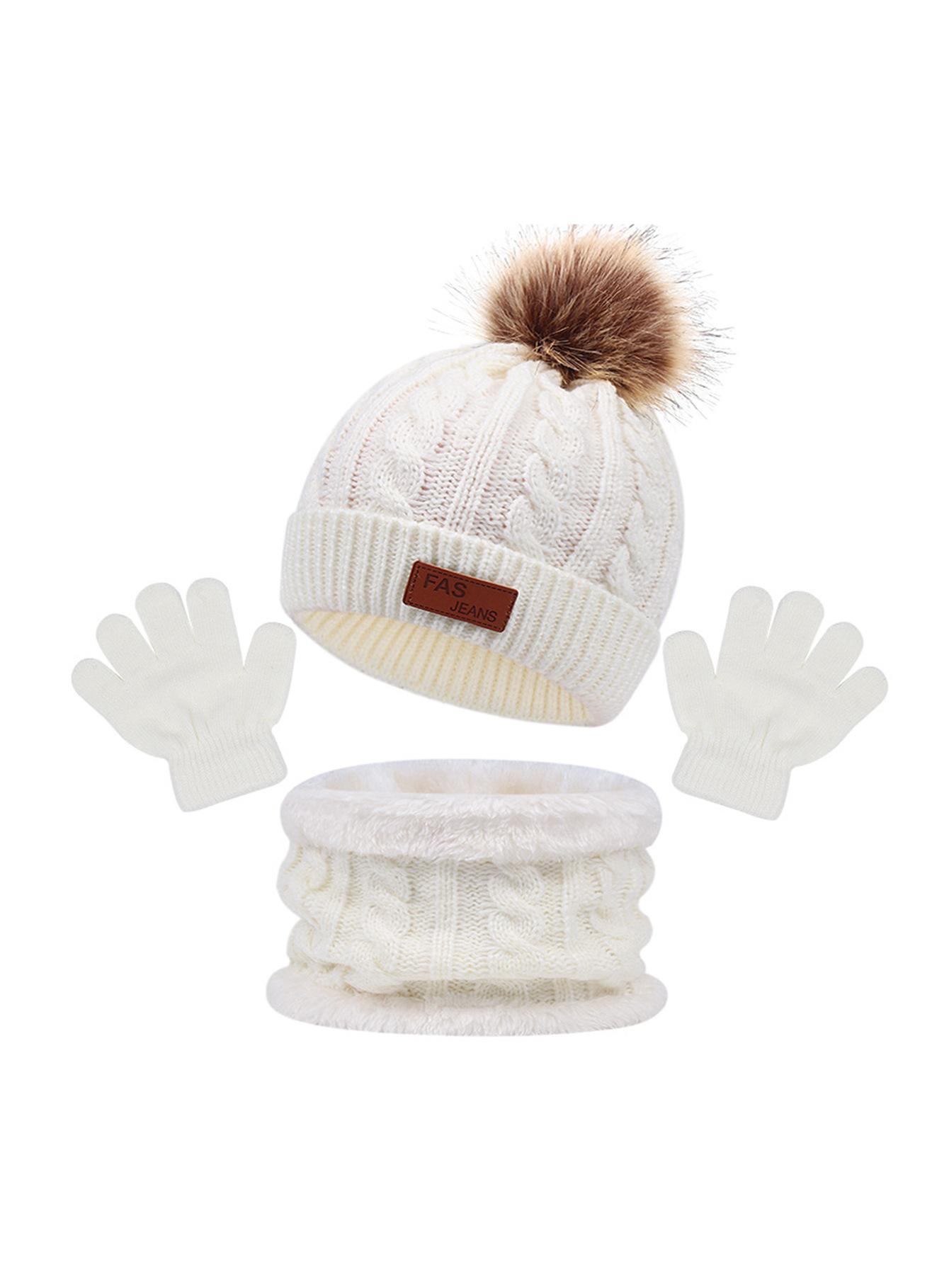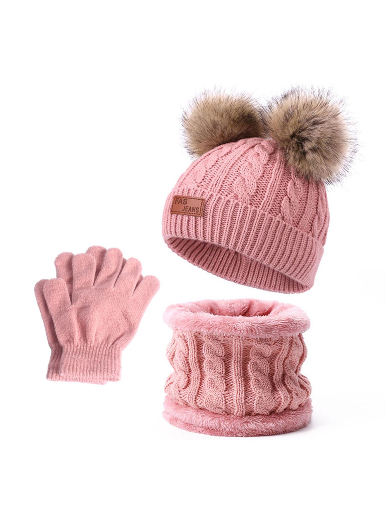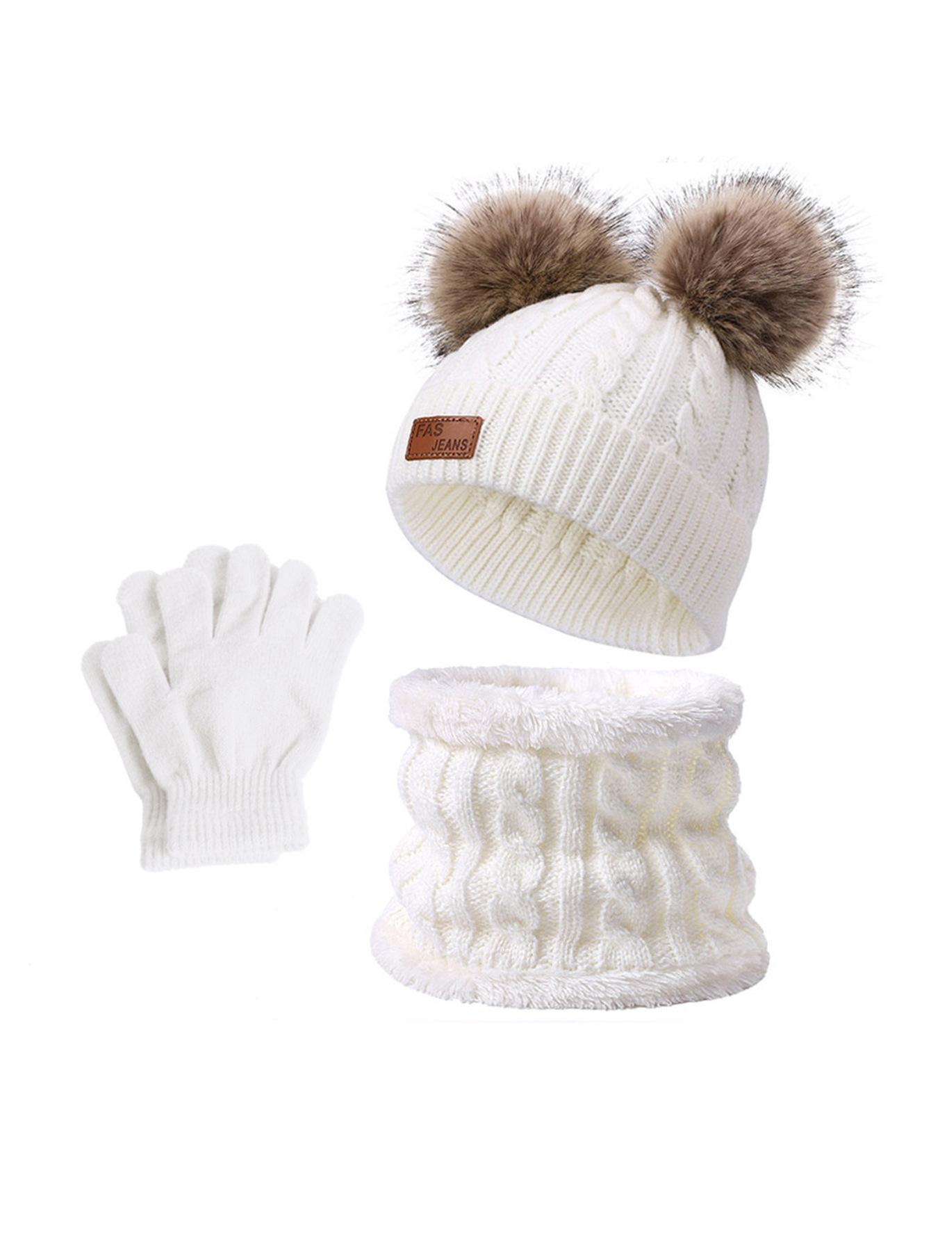 Gorro de punto, bufanda, otoño e invierno, forro polar, protección para los oídos, cálido gorro de lana de invierno, grueso, de tres piezas, bonito gorro con cabeza de bola de pelo.