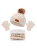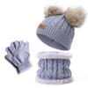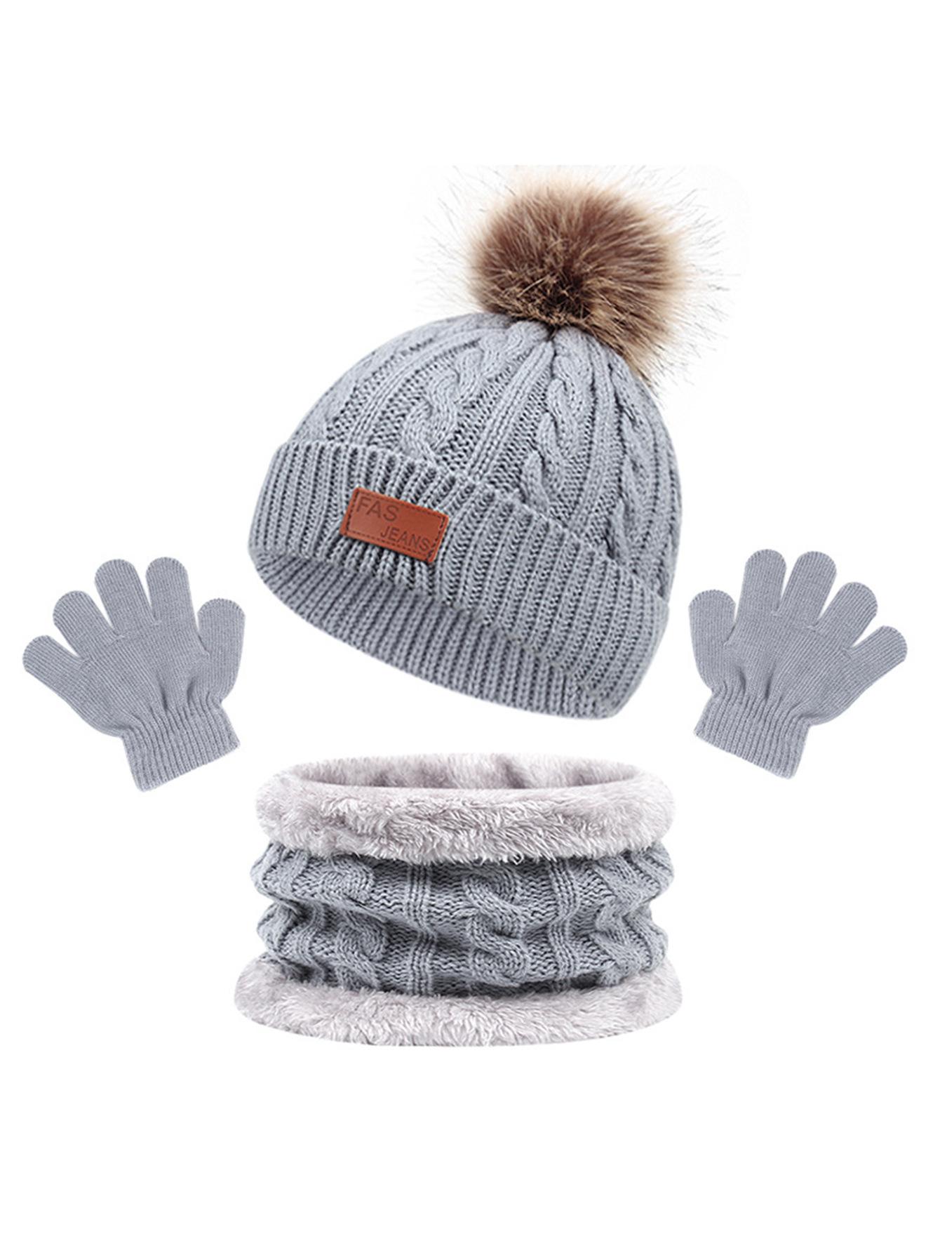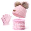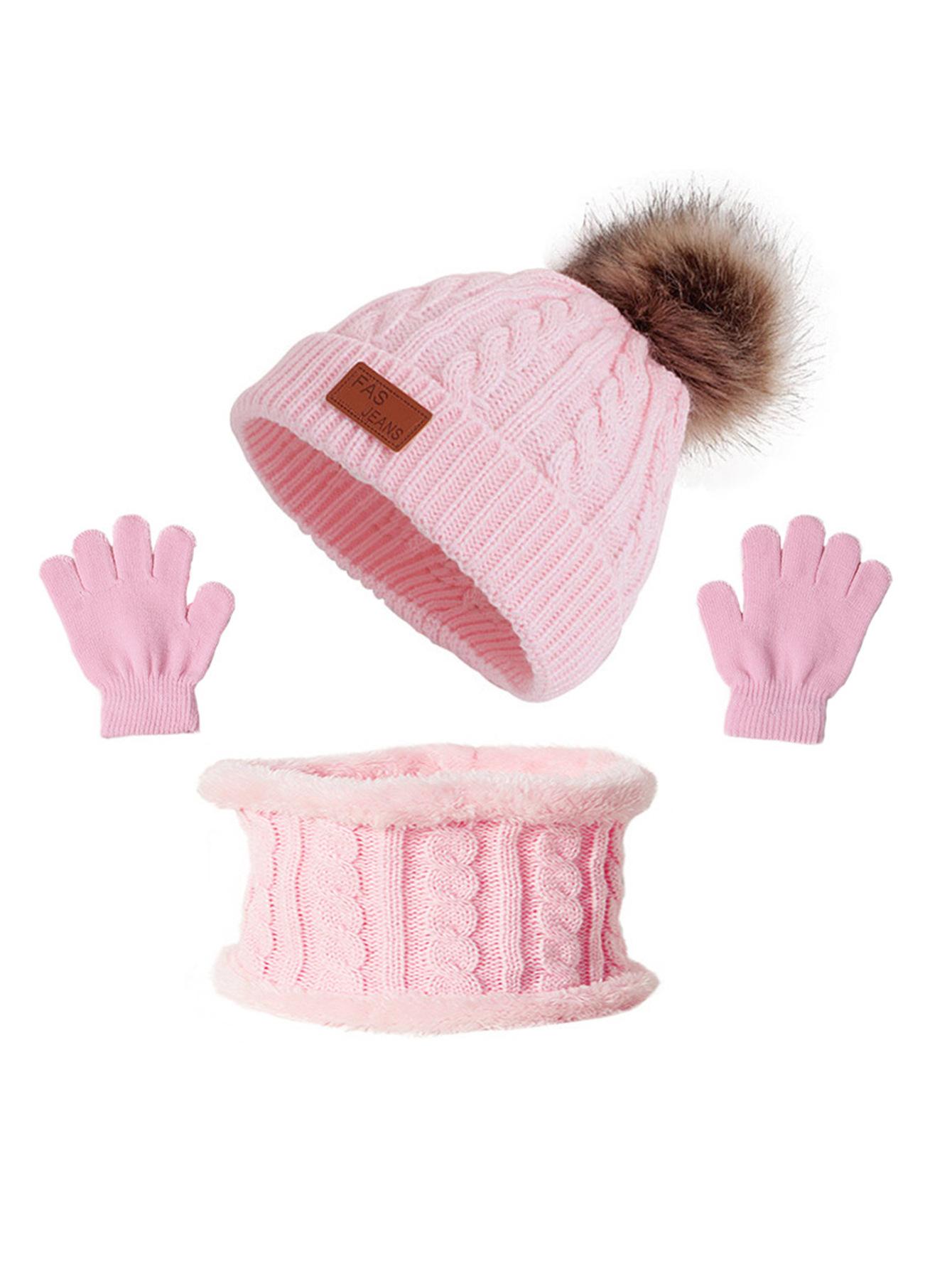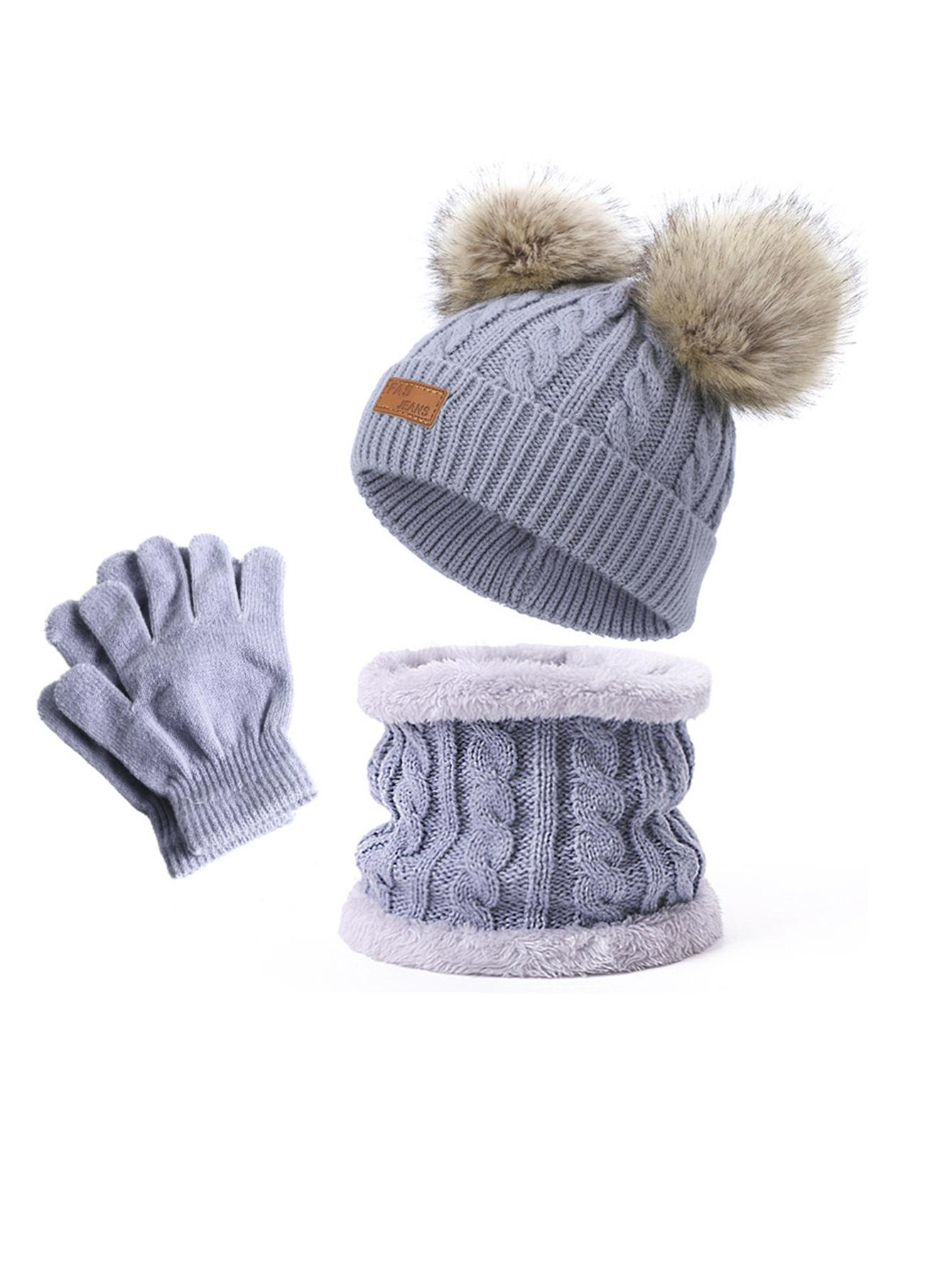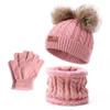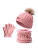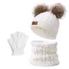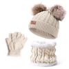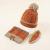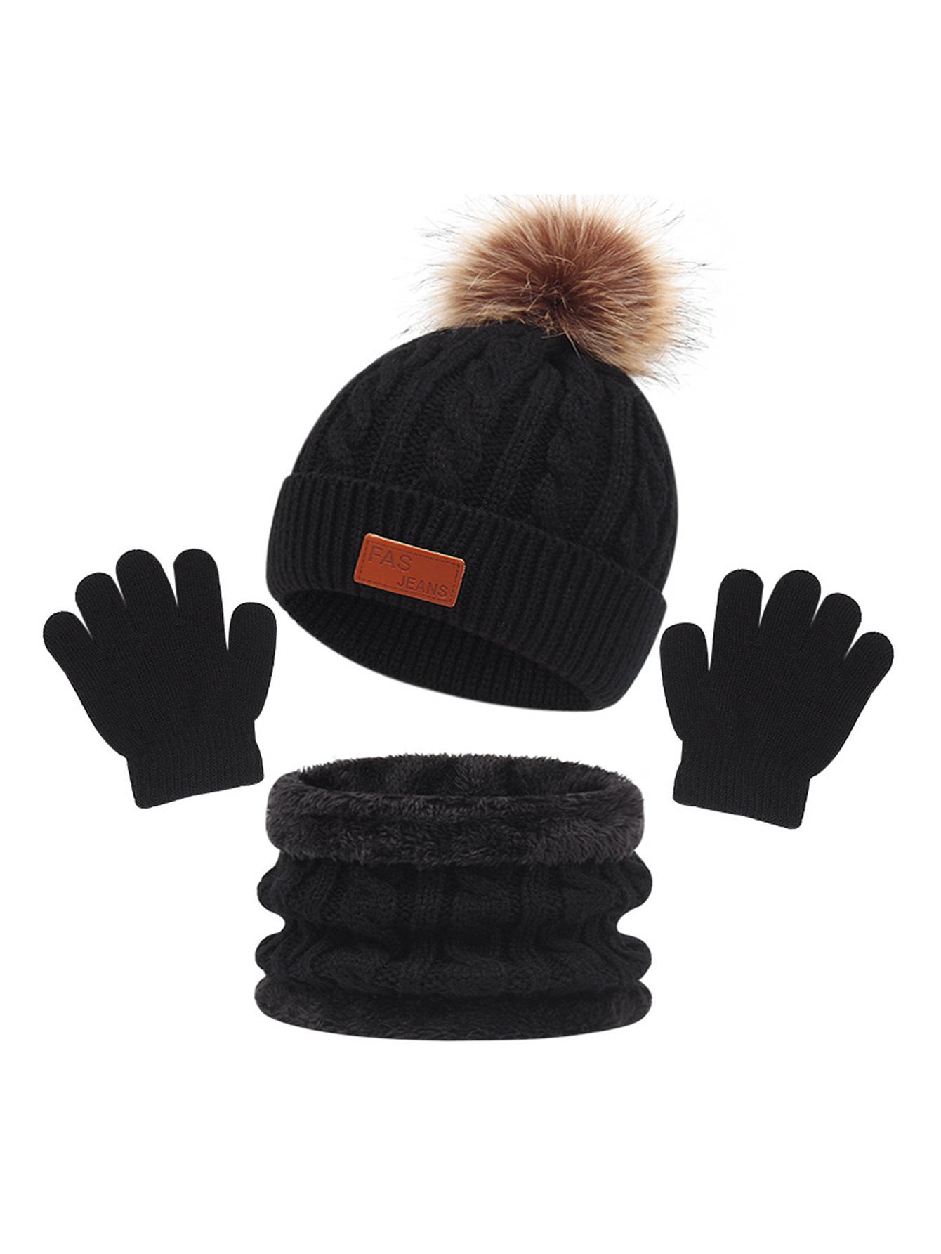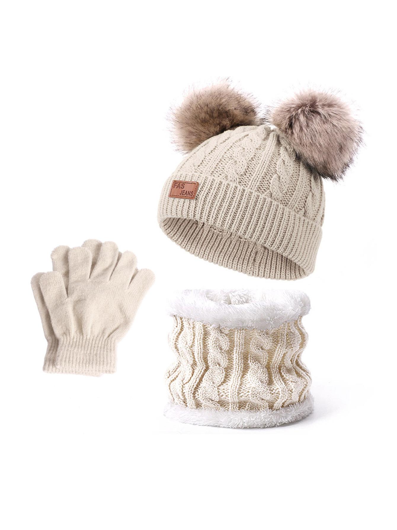 Gorro de punto, bufanda, otoño e invierno, forro polar, protección para los oídos, cálido gorro de lana de invierno, grueso, de tres piezas, bonito gorro con cabeza de bola de pelo.
