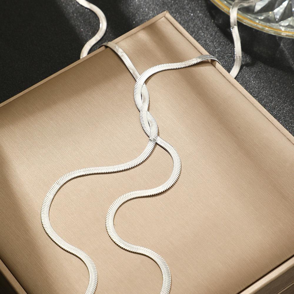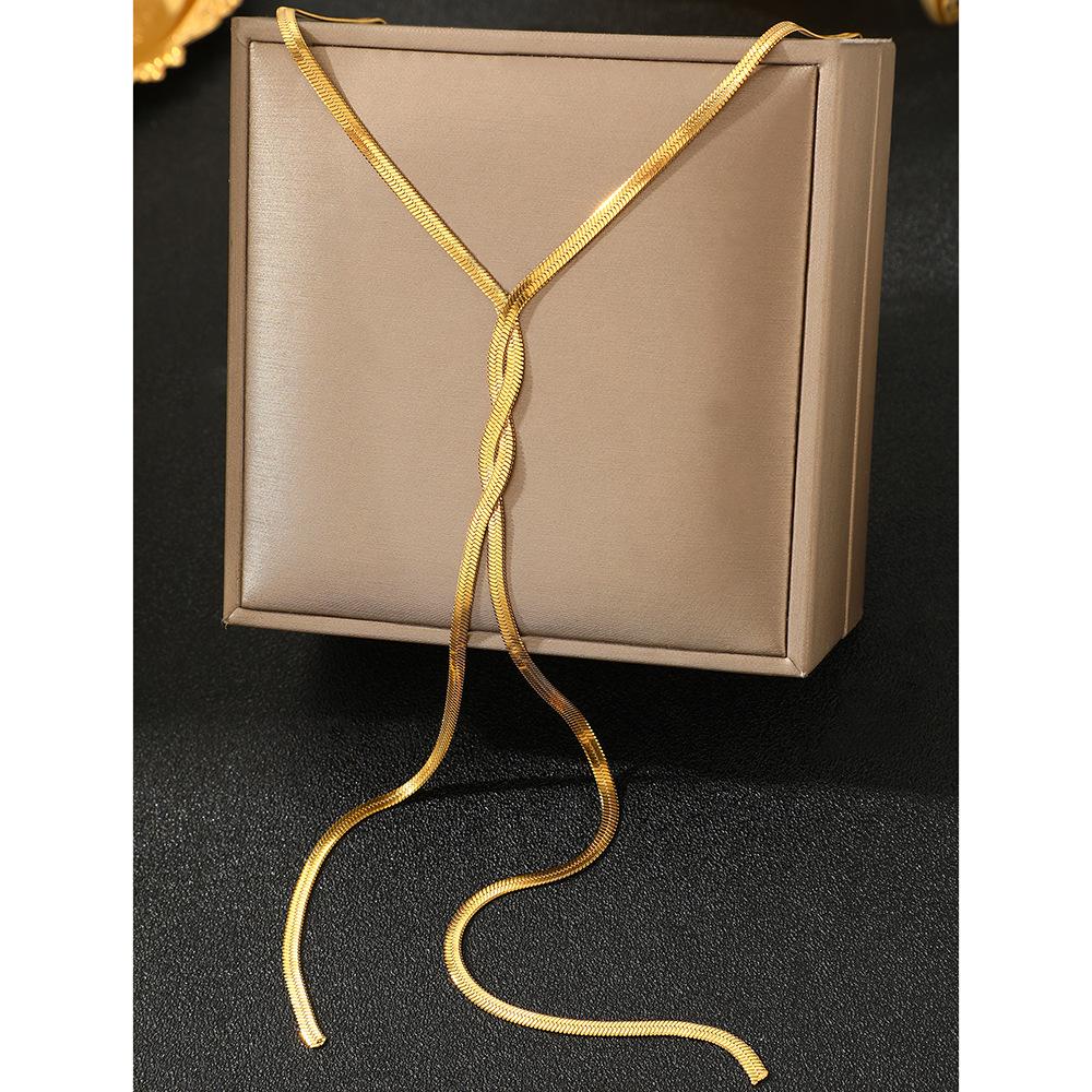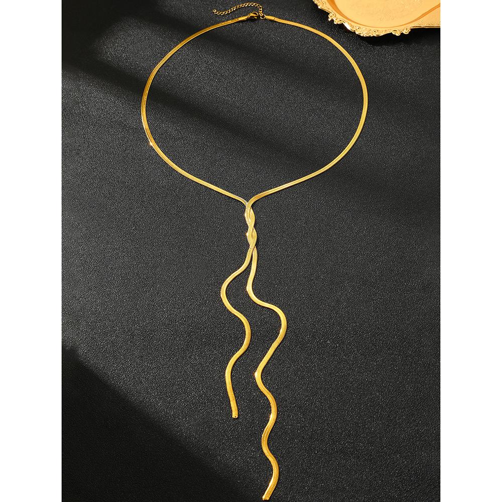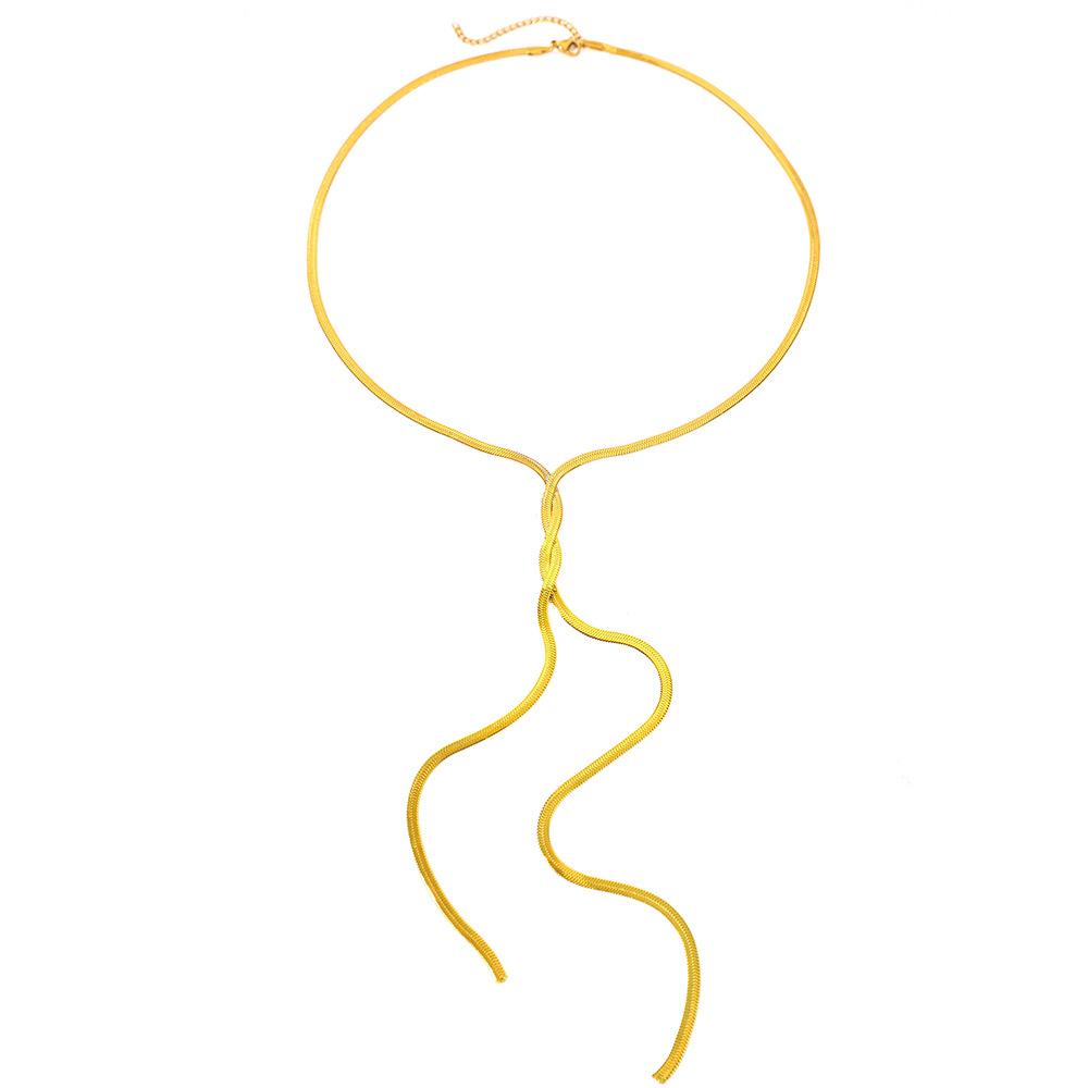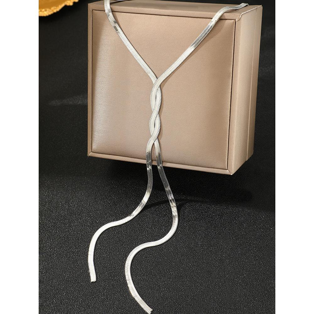 Collar de cadena de hueso de serpiente estilo hip-hop de metal, estilo europeo y americano, con diseño geométrico largo y trenzado para clavícula.