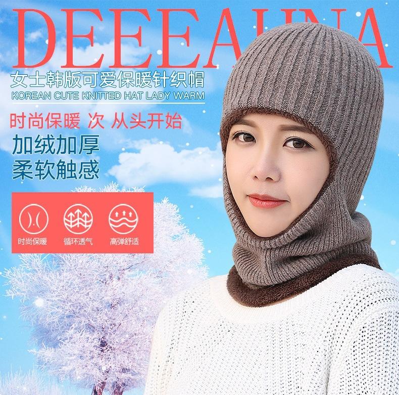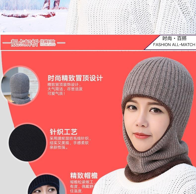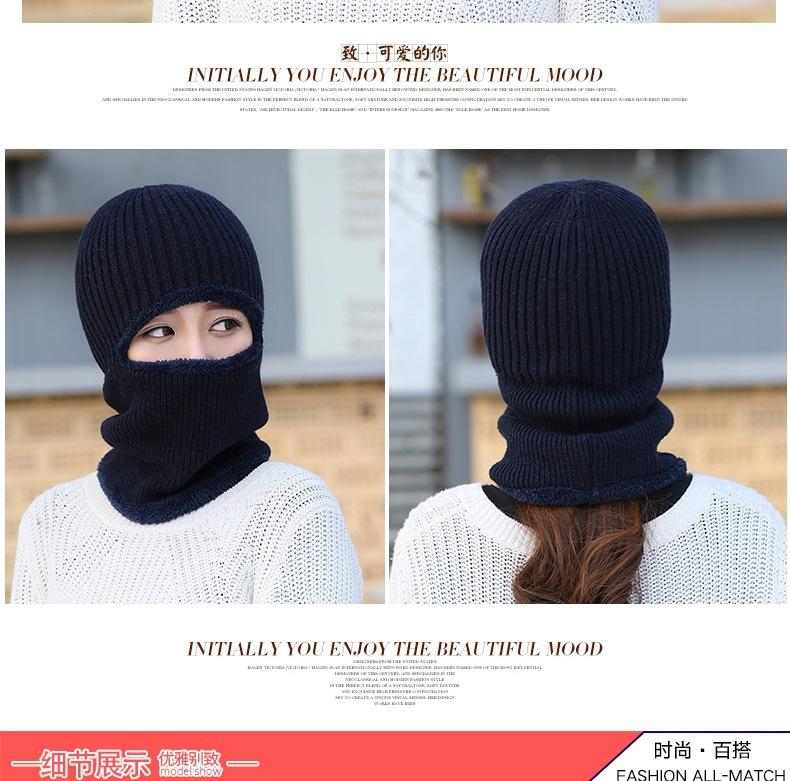 Gorro de Lana para Mujer Invierno Corea del Sur Moderno Traje de Bufanda con Máscara Forrado de Polar Engrosado Invierno Gorro de Punto Cálido Estilo Coreano para Mujer