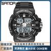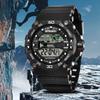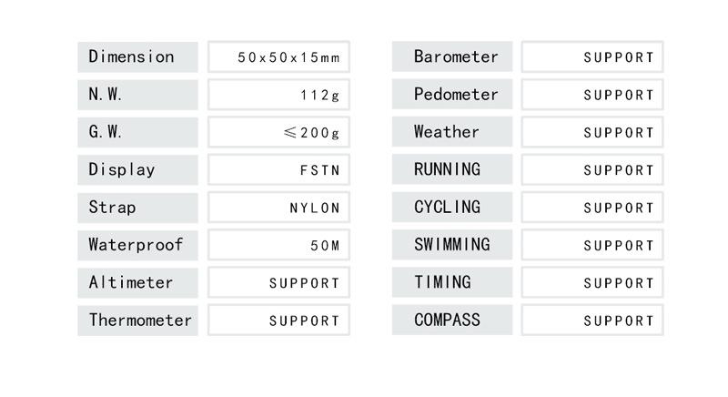 El reloj incluye la caja de embalaje y la caja exterior. Peso: 300 g. Funciones: Altitud, presión atmosférica, brújula, termómetro, sumergible hasta 50 metros, esfera metálica, retroiluminación, podómetro, hora mundial, cuenta regresiva, pronóstico del tiempo, alarma y recordatorio de batería baja. Es un reloj electrónico multifunción; solo se muestra en inglés, no en otros idiomas.