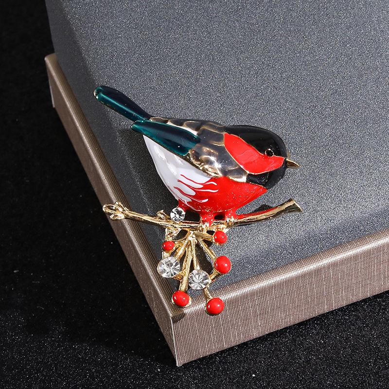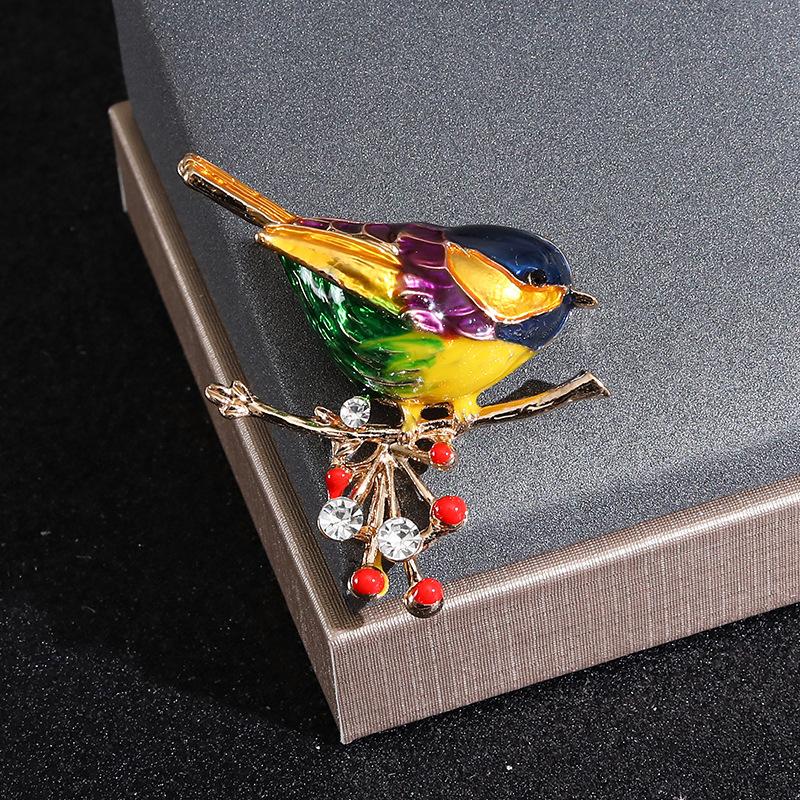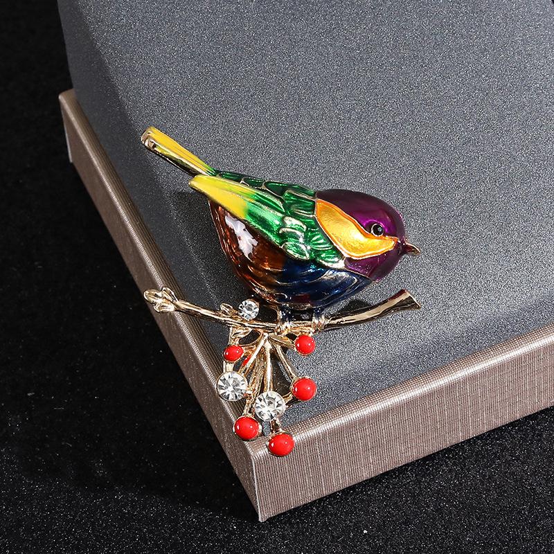 Suministro Directo de Fábrica Broche de Pájaro Pintado con Goteo de Aceite Creativo Transfronterizo Dibujos Animados Lindo Pequeño Fresco Accesorios de Diamantes Ramillete