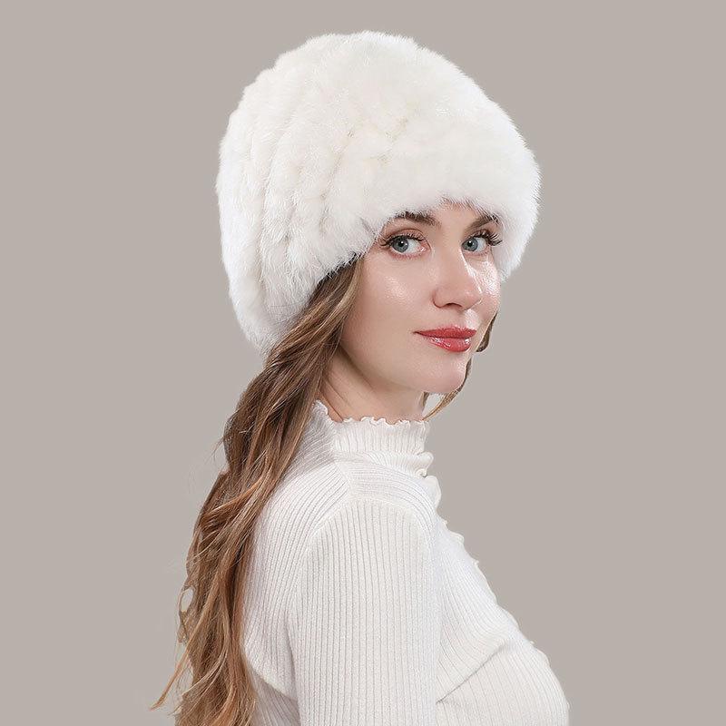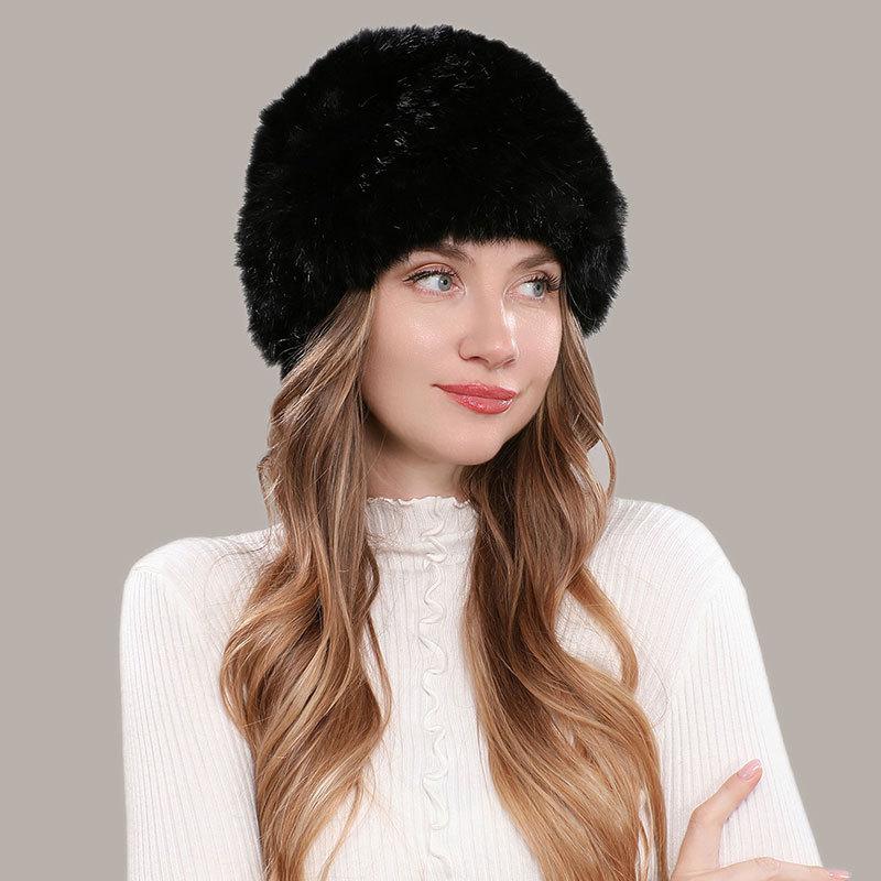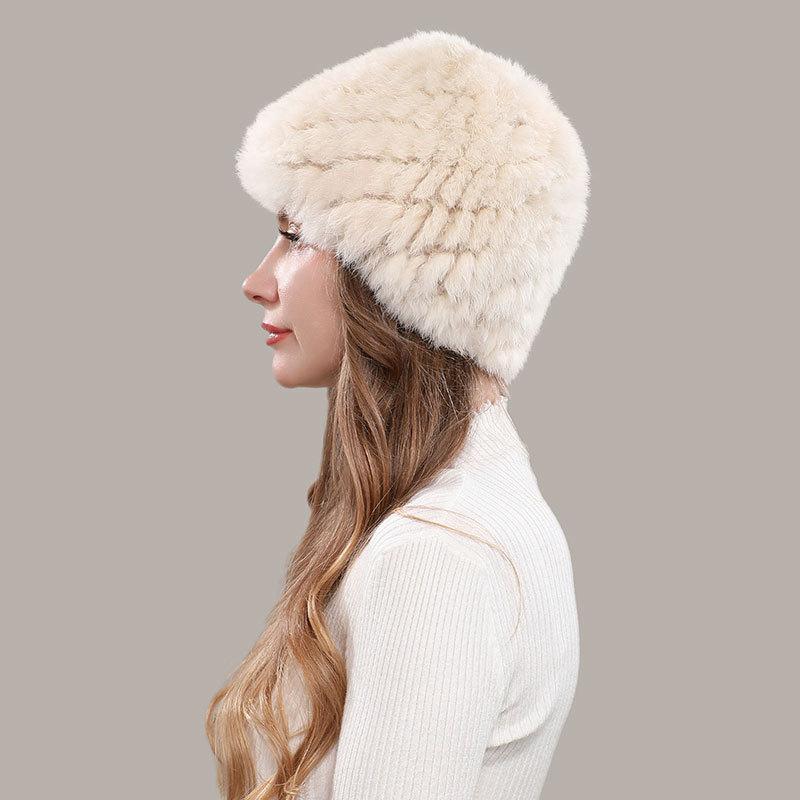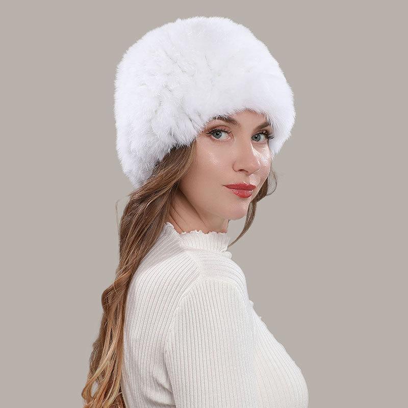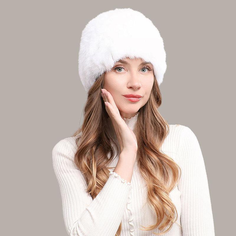 Nombre: Sombrero de piña tejido de piel de conejo de nieve