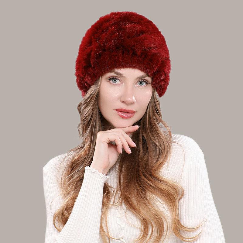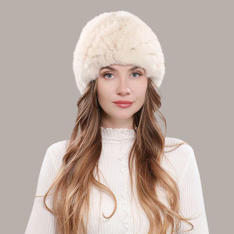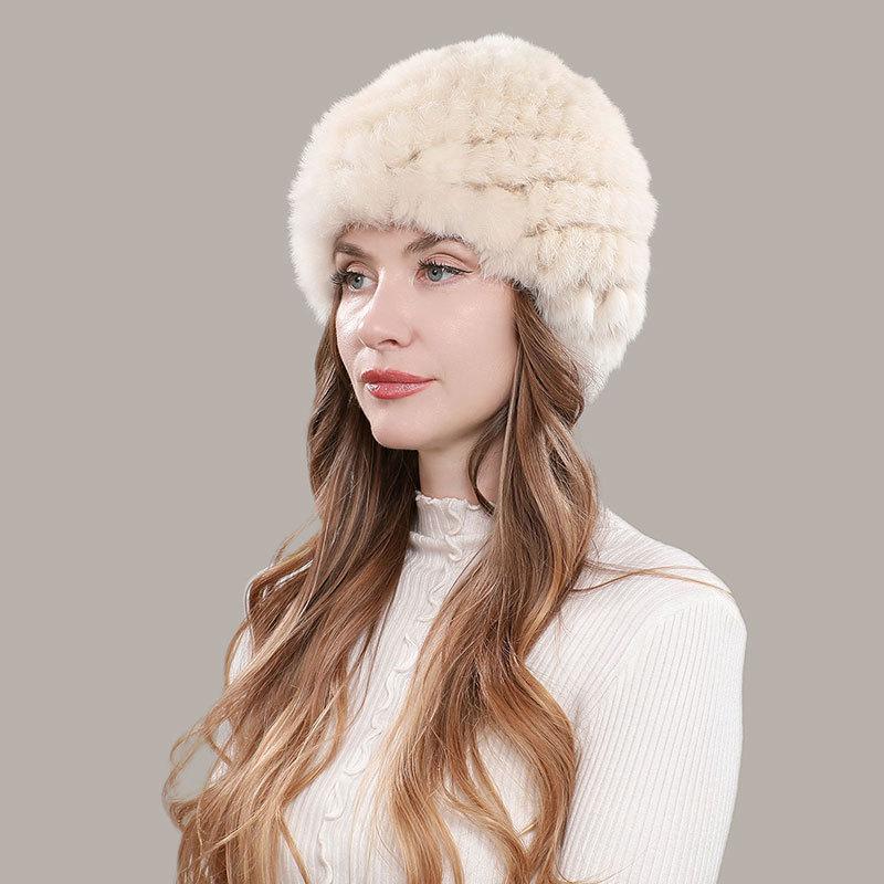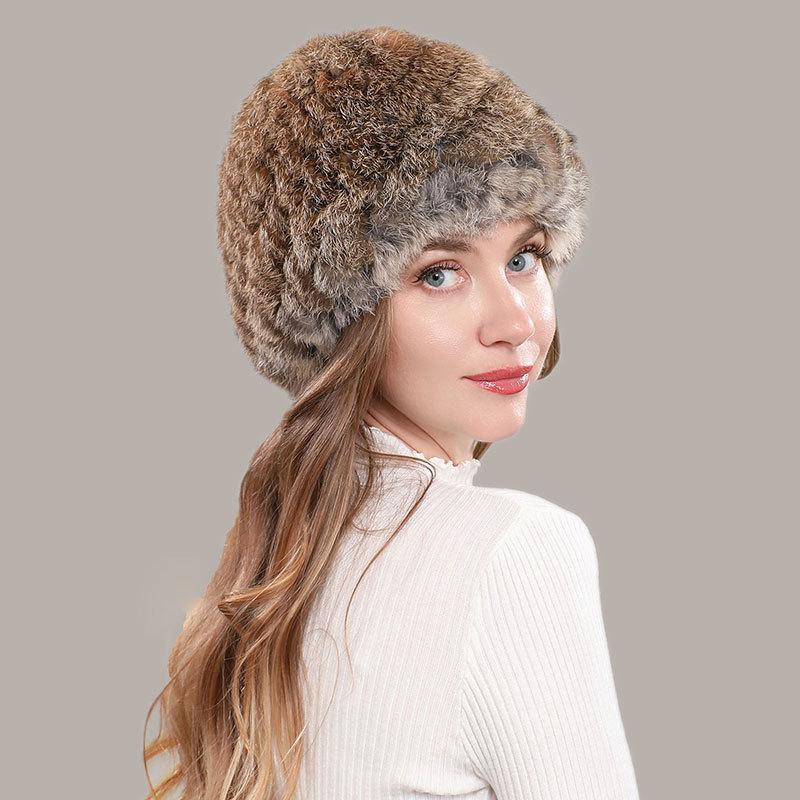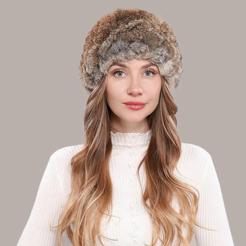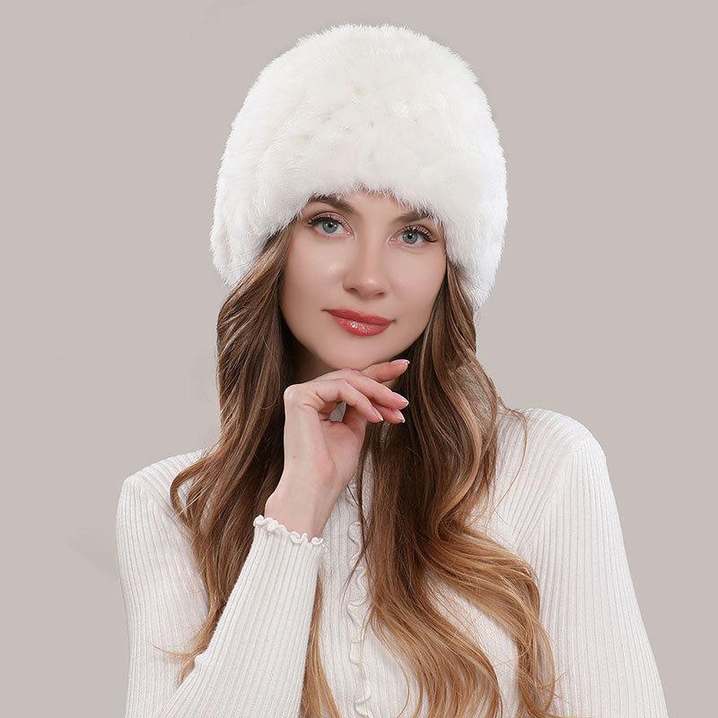 Nombre: Sombrero de piña tejido de piel de conejo de nieve