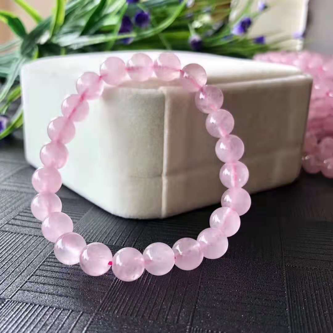 8mm natural rose quartz bracelet, 8mm imitation powder crystal bracelet, 8mm Glass Plus Color High Imitation P...