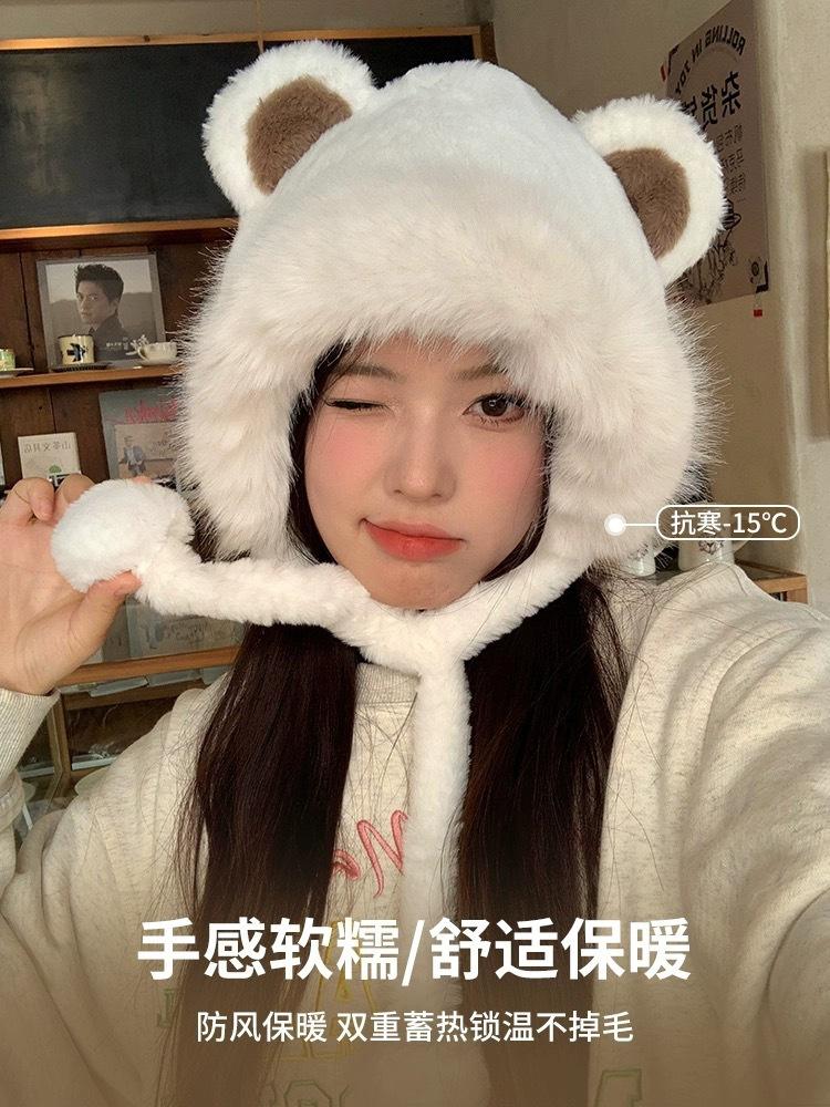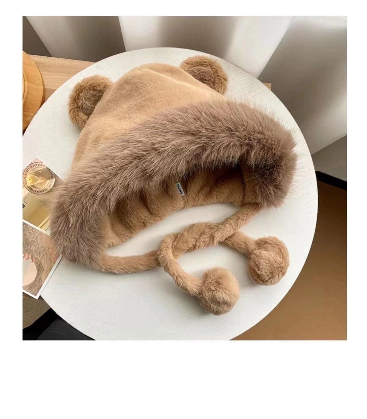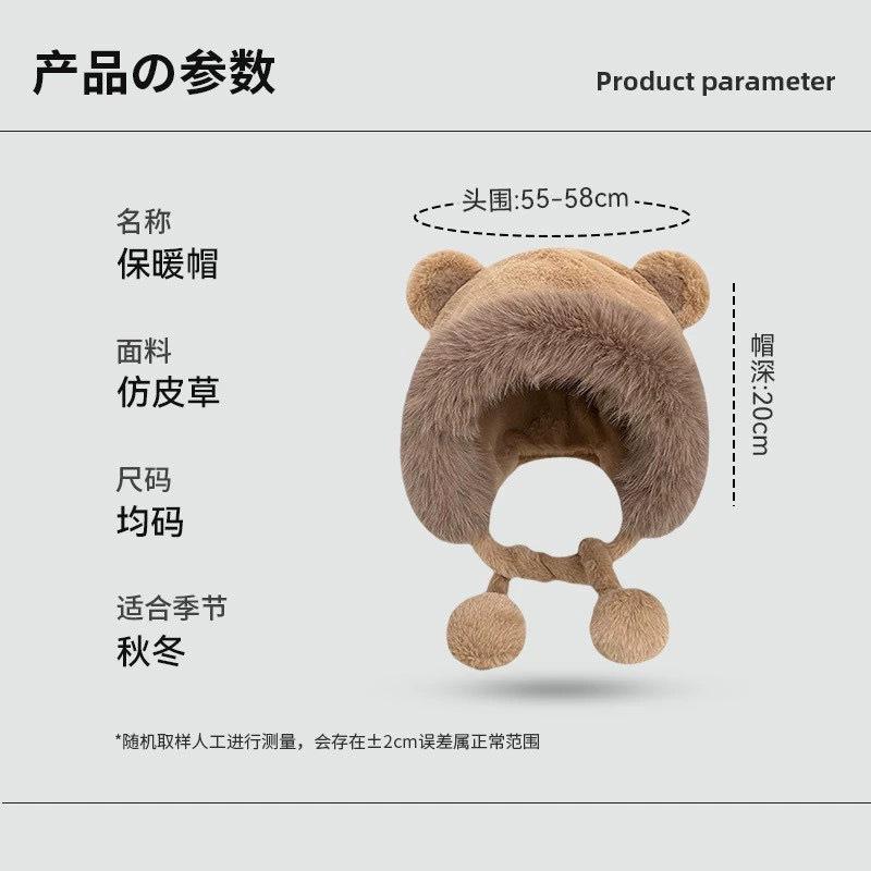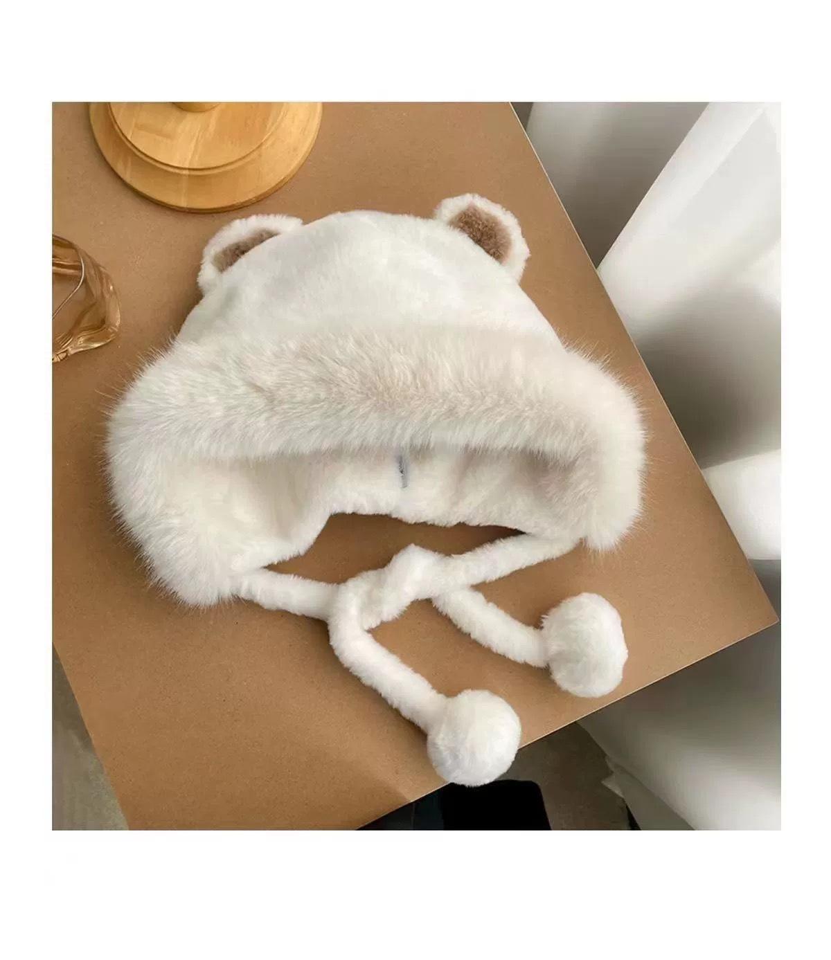 Sombrero de Invierno para Mujer Lindo Sombrero Esponjoso con Orejas de Oso Nuevo Cálido Grueso con Protección para las Orejas Sombrero con Forro Polar a Prueba de Viento Sombrero con Bola Esponjosa