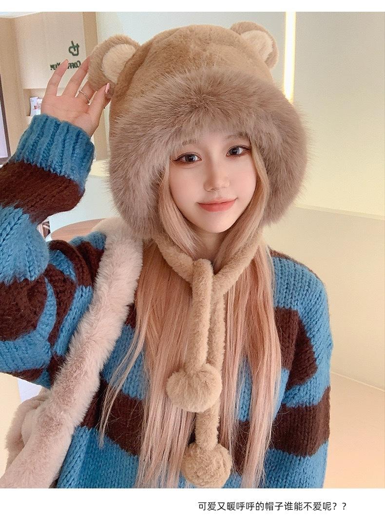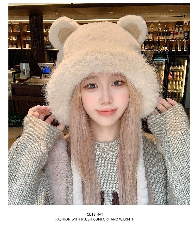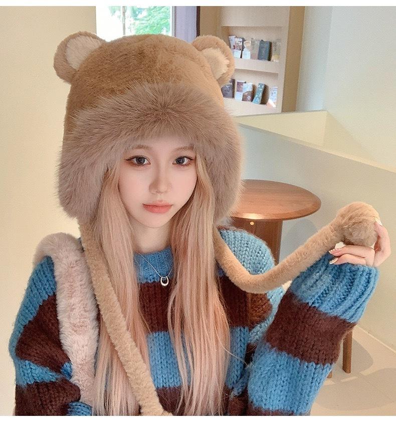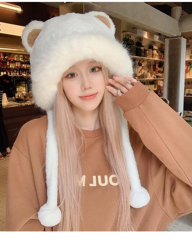Sombrero de Invierno para Mujer Lindo Sombrero Esponjoso con Orejas de Oso Nuevo Cálido Grueso con Protección para las Orejas Sombrero con Forro Polar a Prueba de Viento Sombrero con Bola Esponjosa