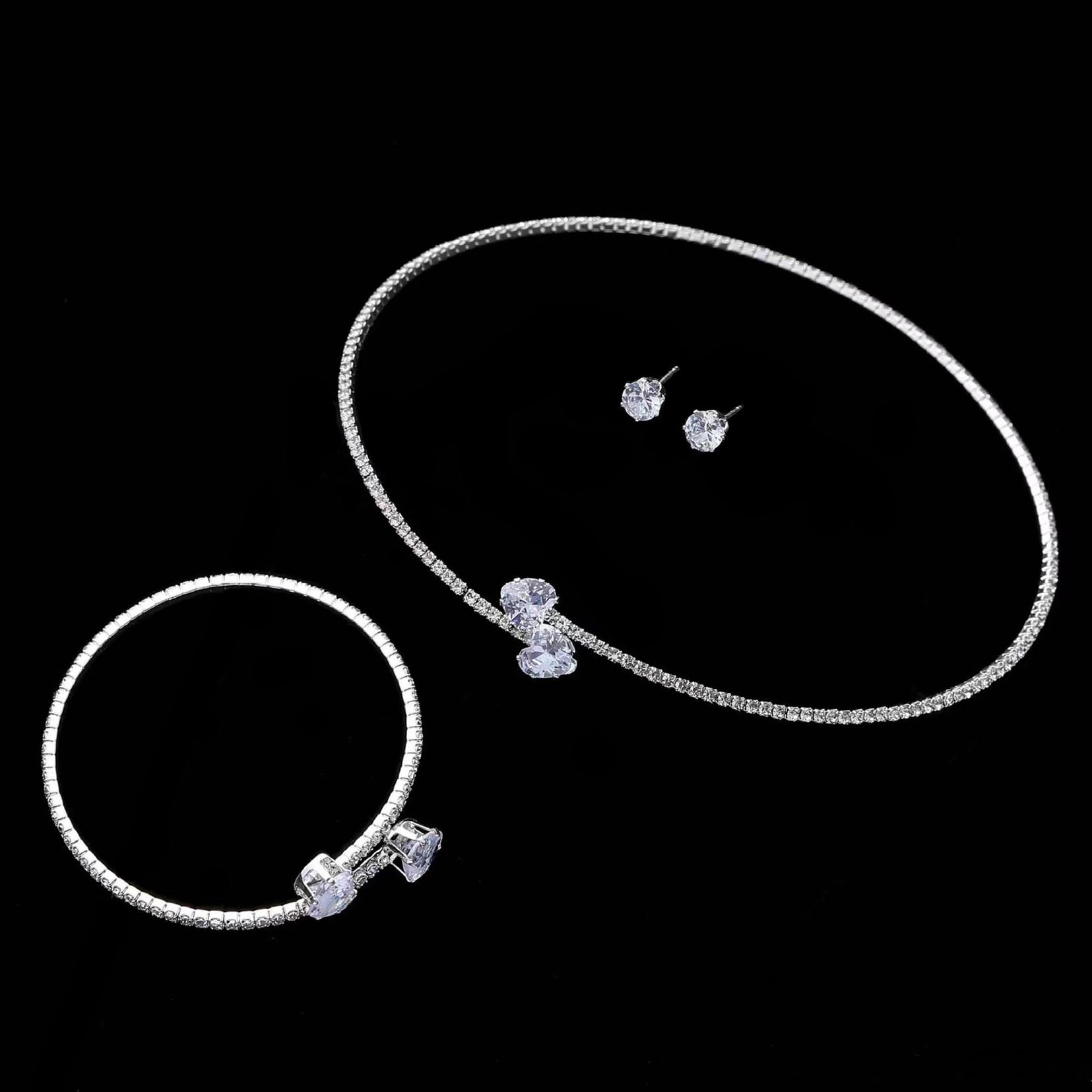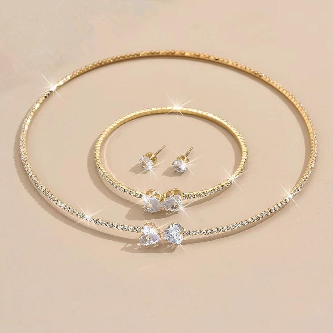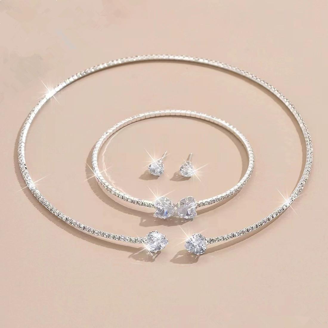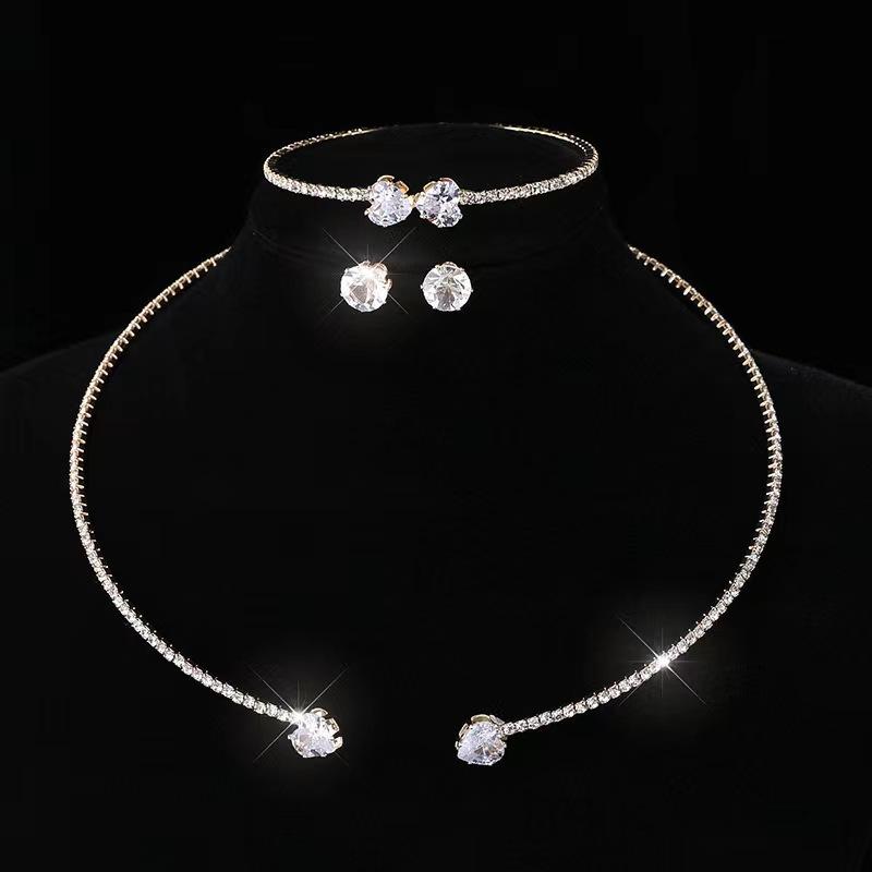 Venta al por mayor de moda, traje de tres piezas, joyería femenina para novia, collar de diamantes de imitación, pulsera, pendientes, venta directa de fábrica