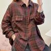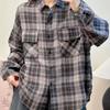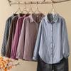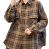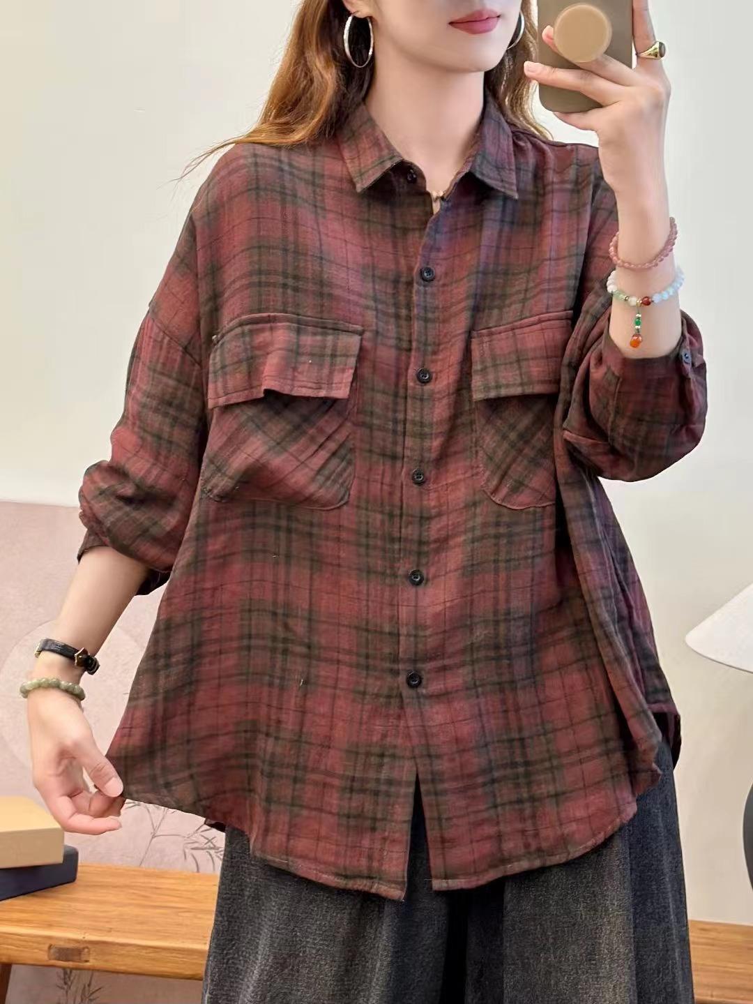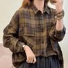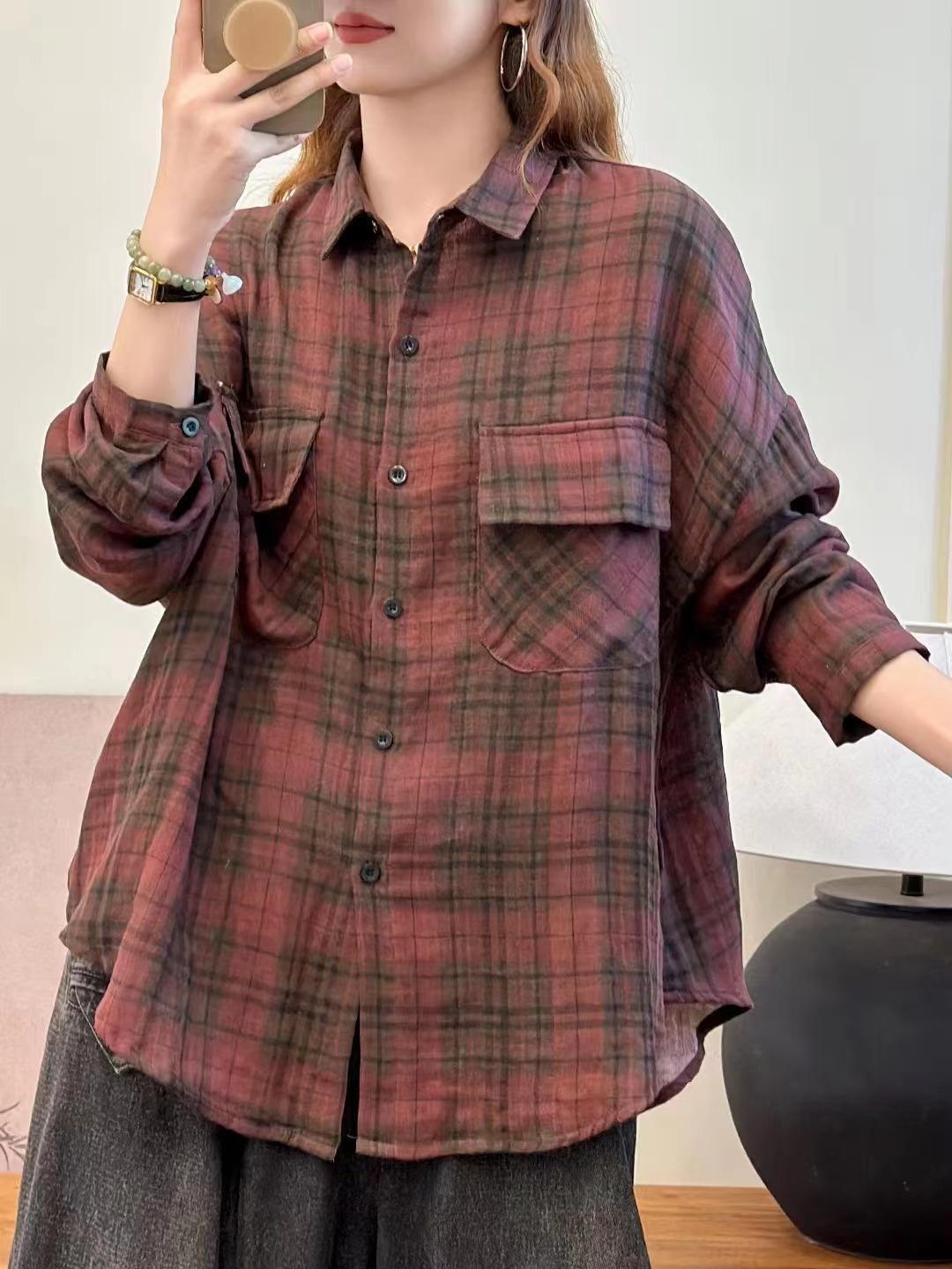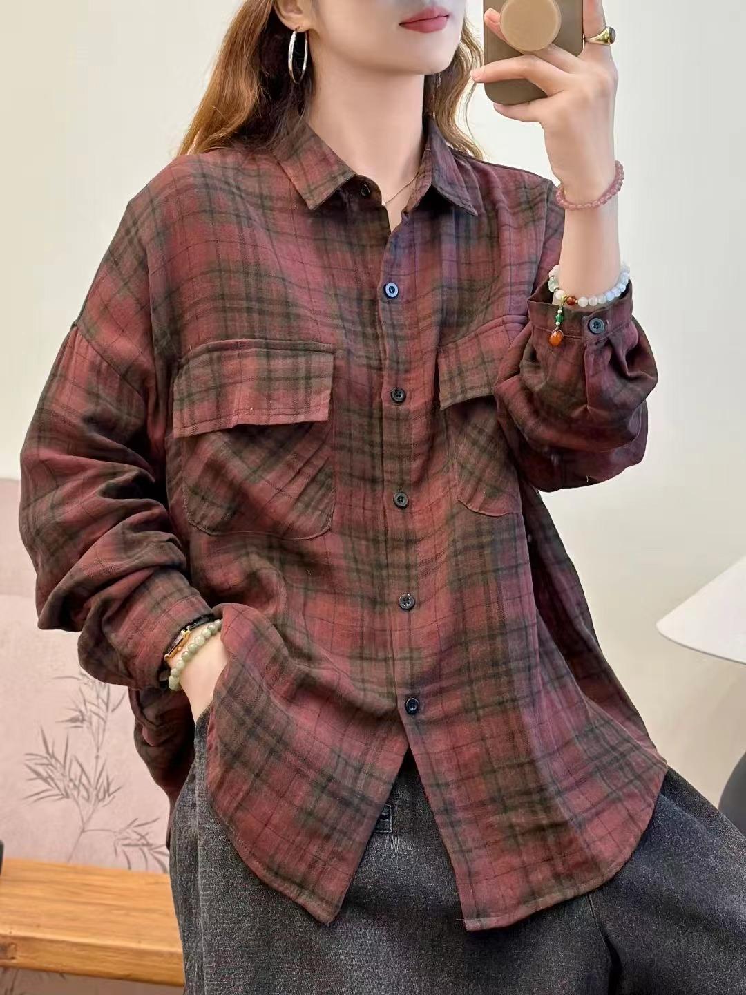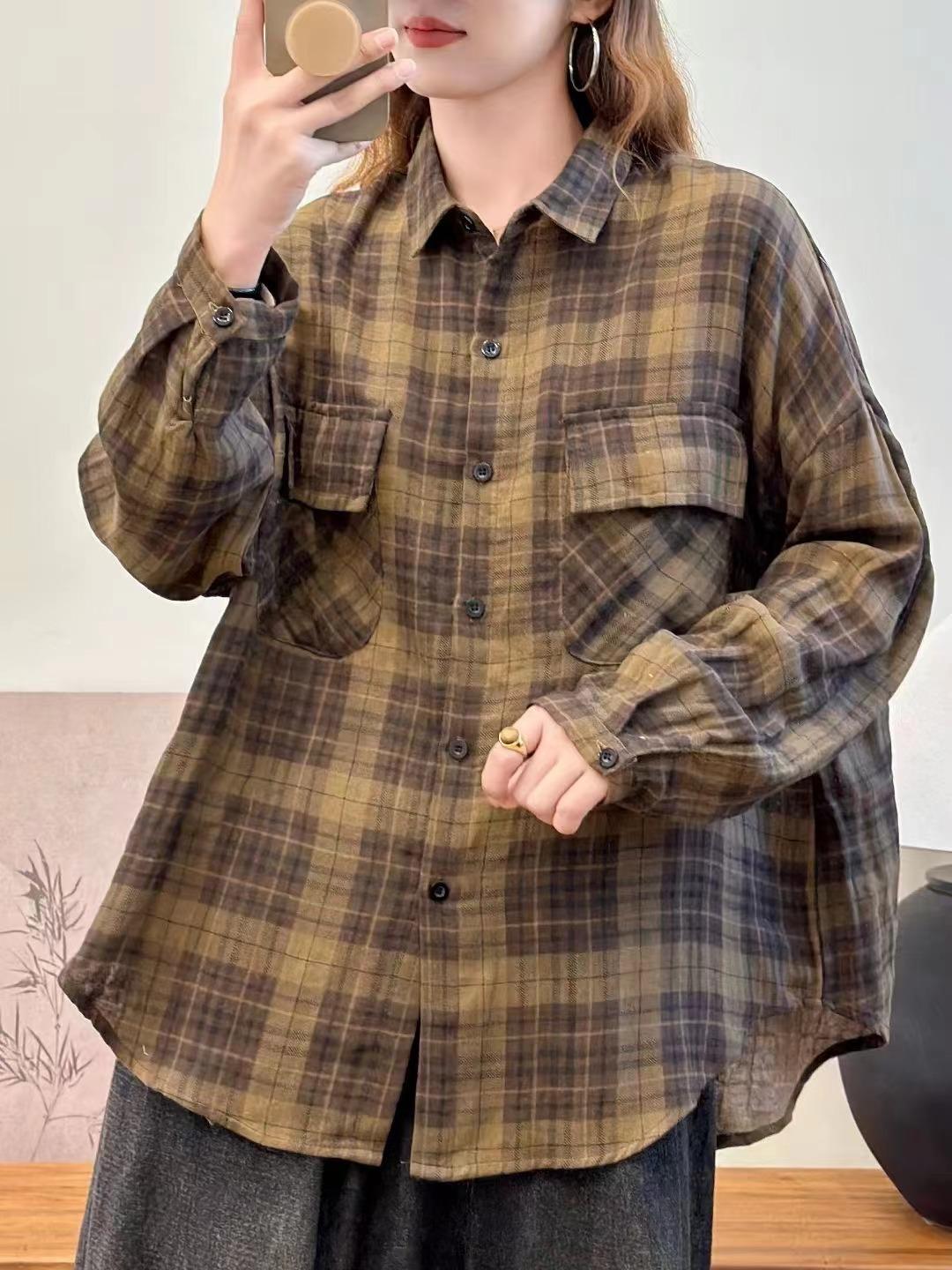 Camisa de otoño nueva informal de manga larga con doble capa de hilo de algodón a cuadros para mujer, ajustada, de talla grande