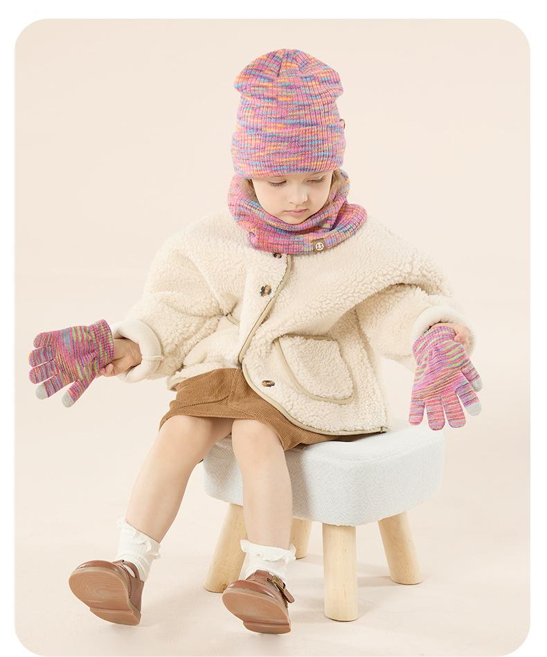 Invierno Nuevo Set de Gorro, Bufanda y Guantes de Punto para Niños Cálido para Exterior Gorro de Terciopelo para Niñas Tendencia