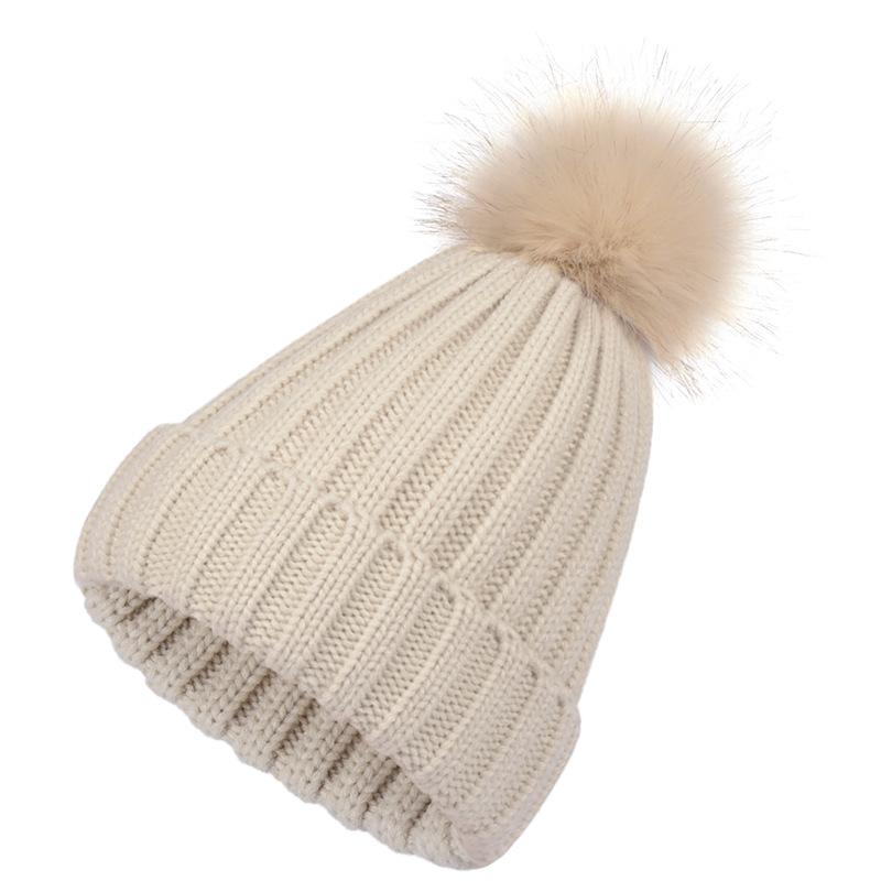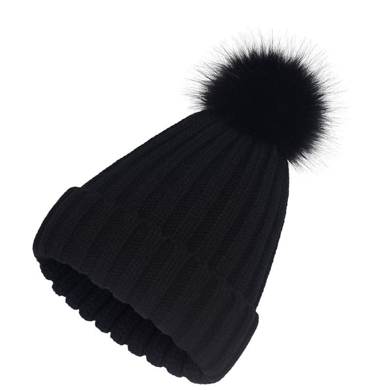 Gorro de punto para mujer otoño e invierno nuevo gorro para mujer gorro de lana gorro con pompón de imitación de piel de zorro gorro grueso y cálido de piel sintética