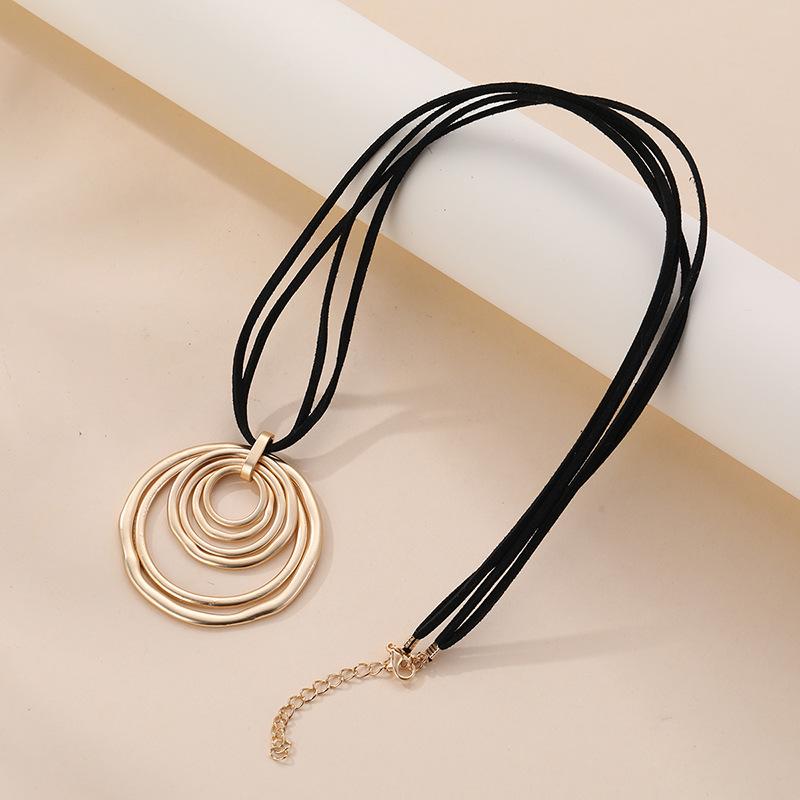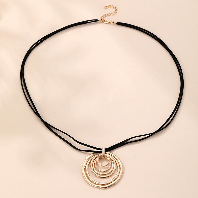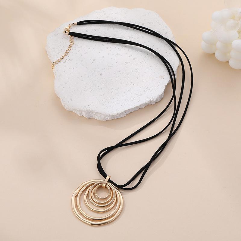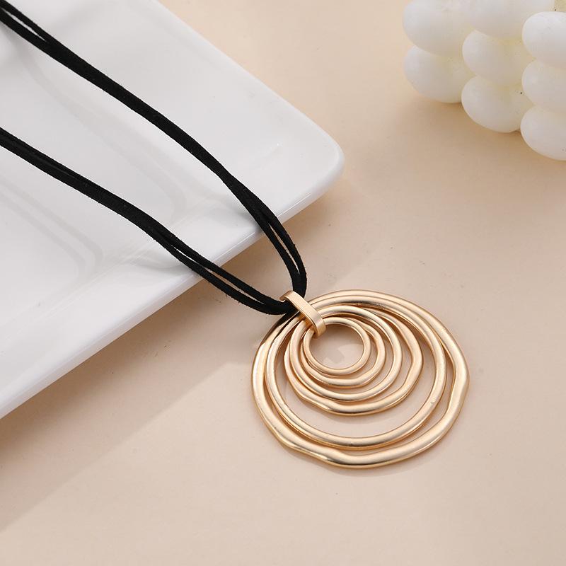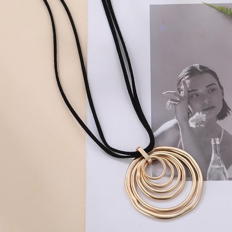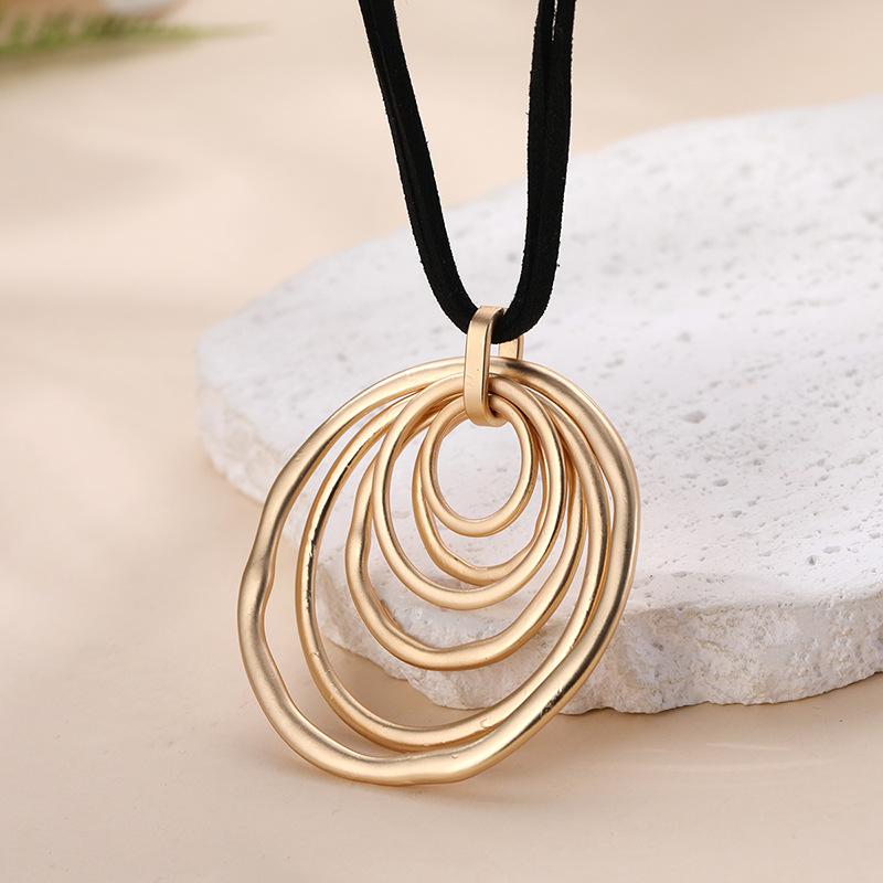 Venta caliente transfronteriza, colgante de múltiples anillos con forma de flor de cinco pétalos irregulares, hueco, de aleación de amor, collar grande con colgante al por mayor