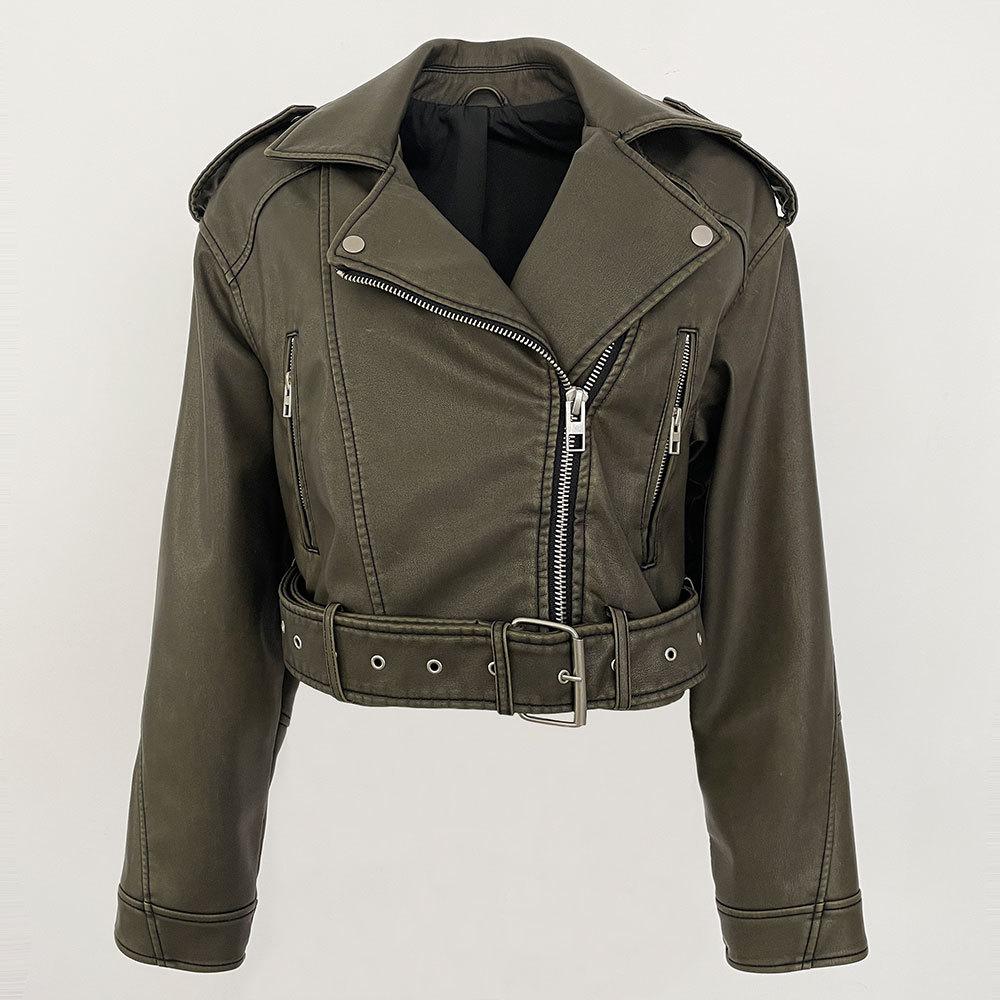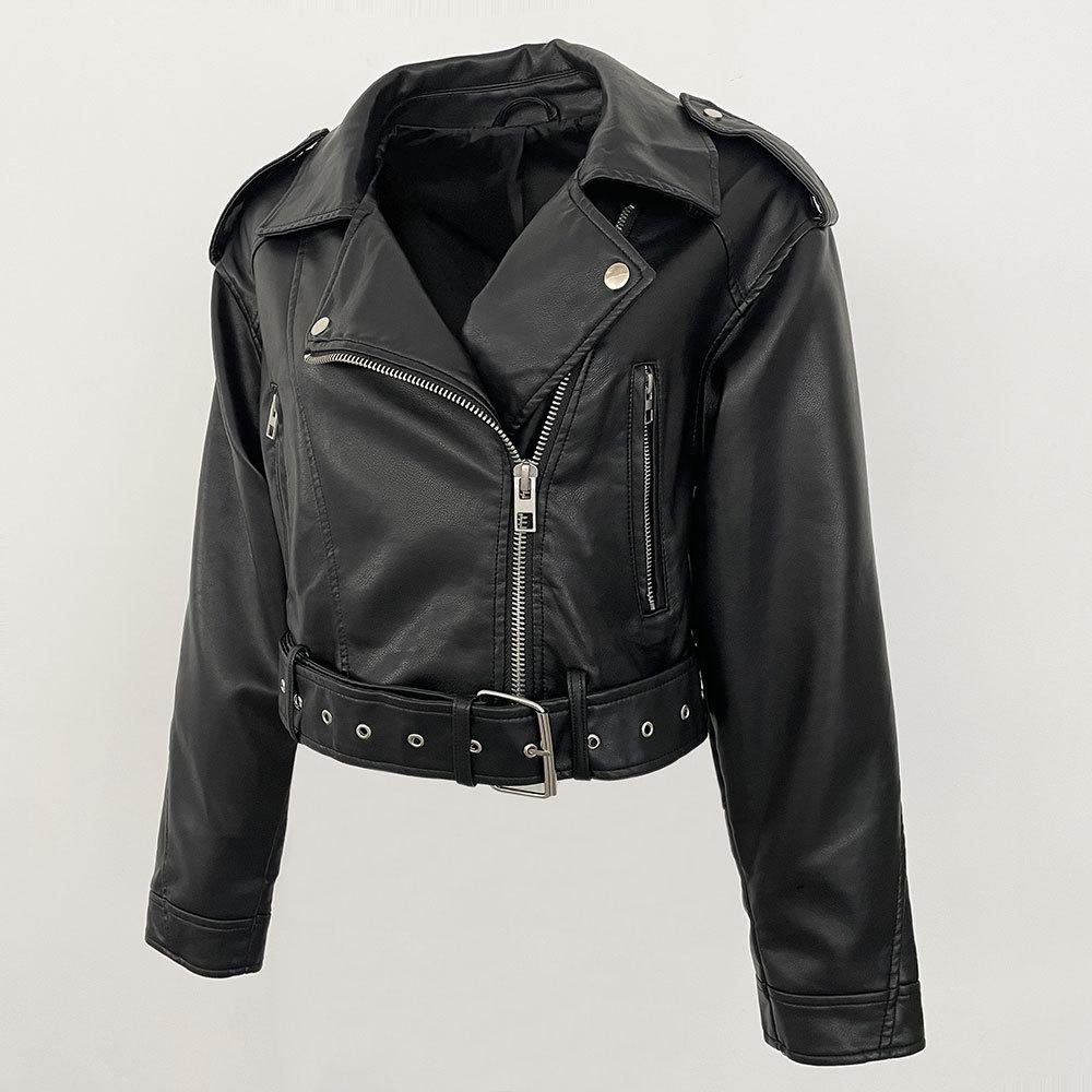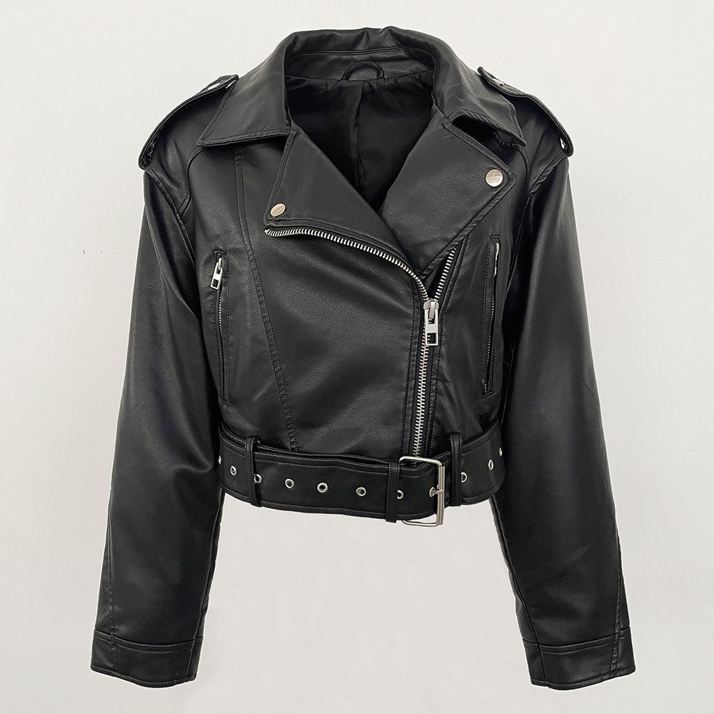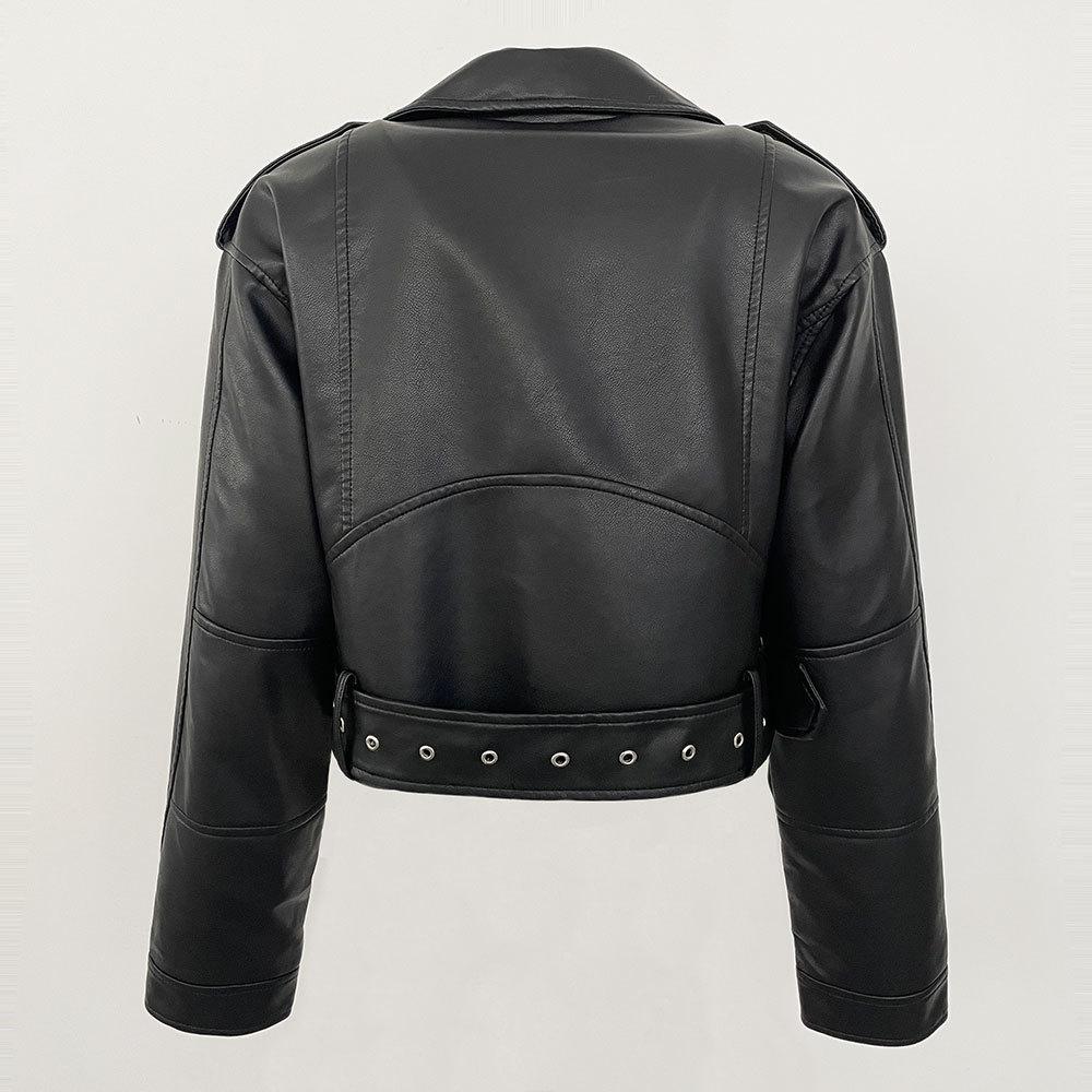 Chaqueta de moto de primavera y otoño 2024, delgada, de cuero PU, de primavera, de cuero corto europeo, de alta gama para mujer