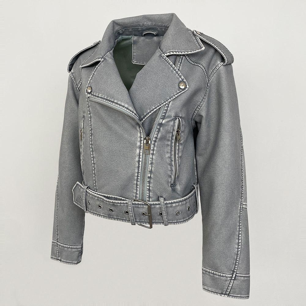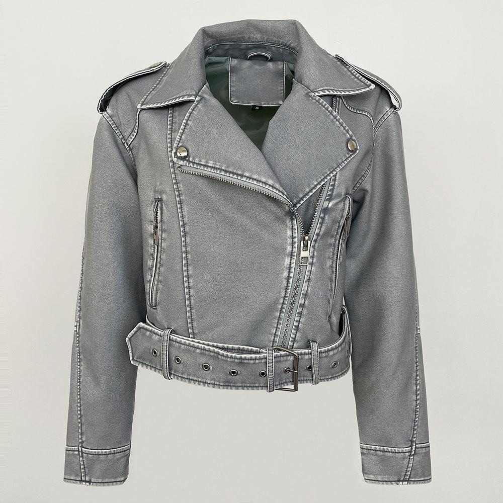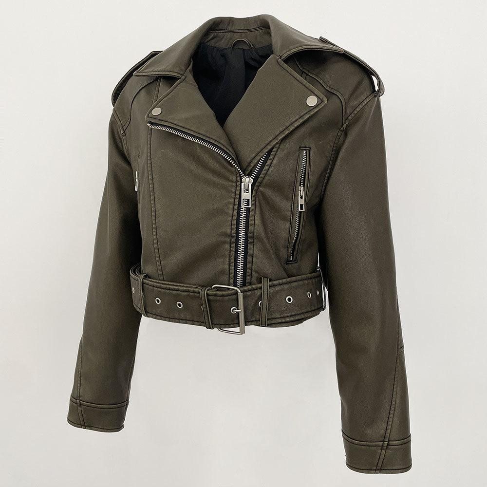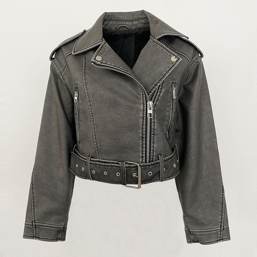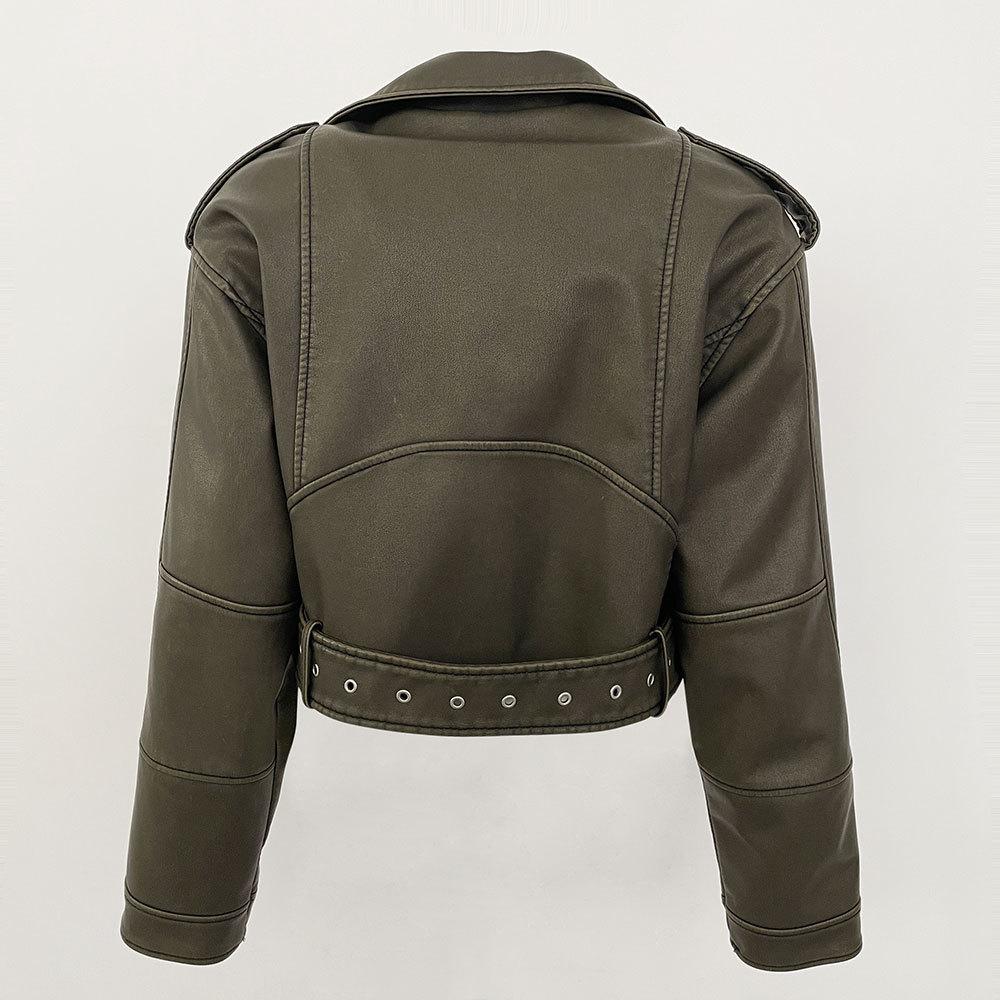 Chaqueta de moto de primavera y otoño 2024, delgada, de cuero PU, de primavera, de cuero corto europeo, de alta gama para mujer