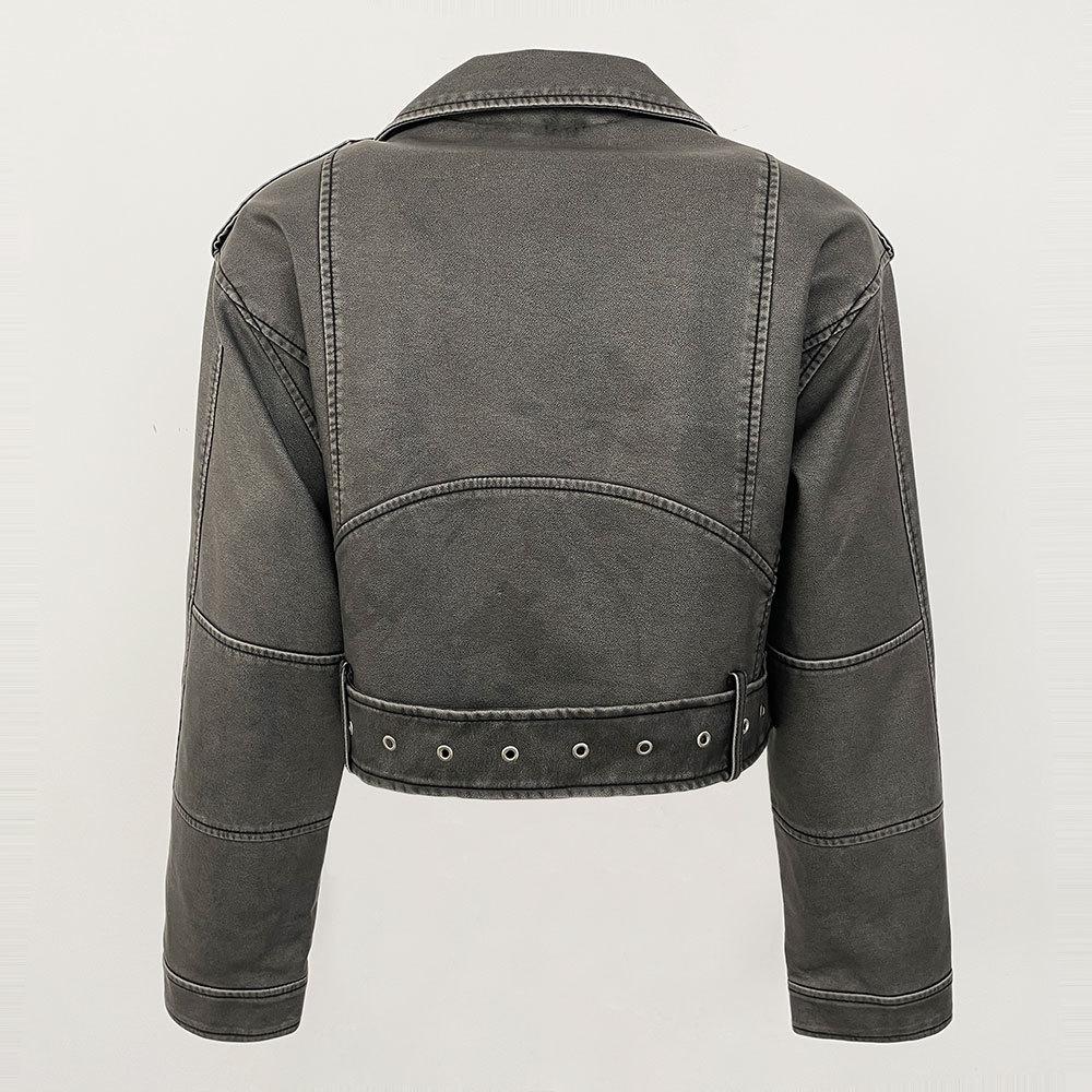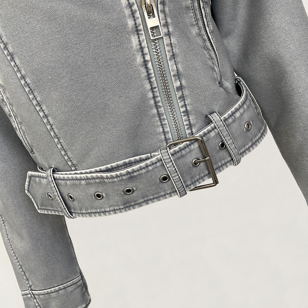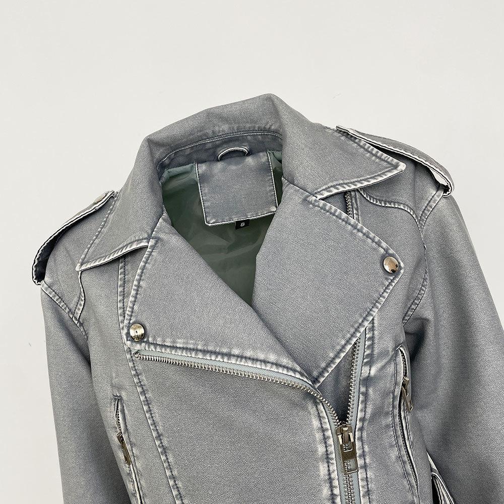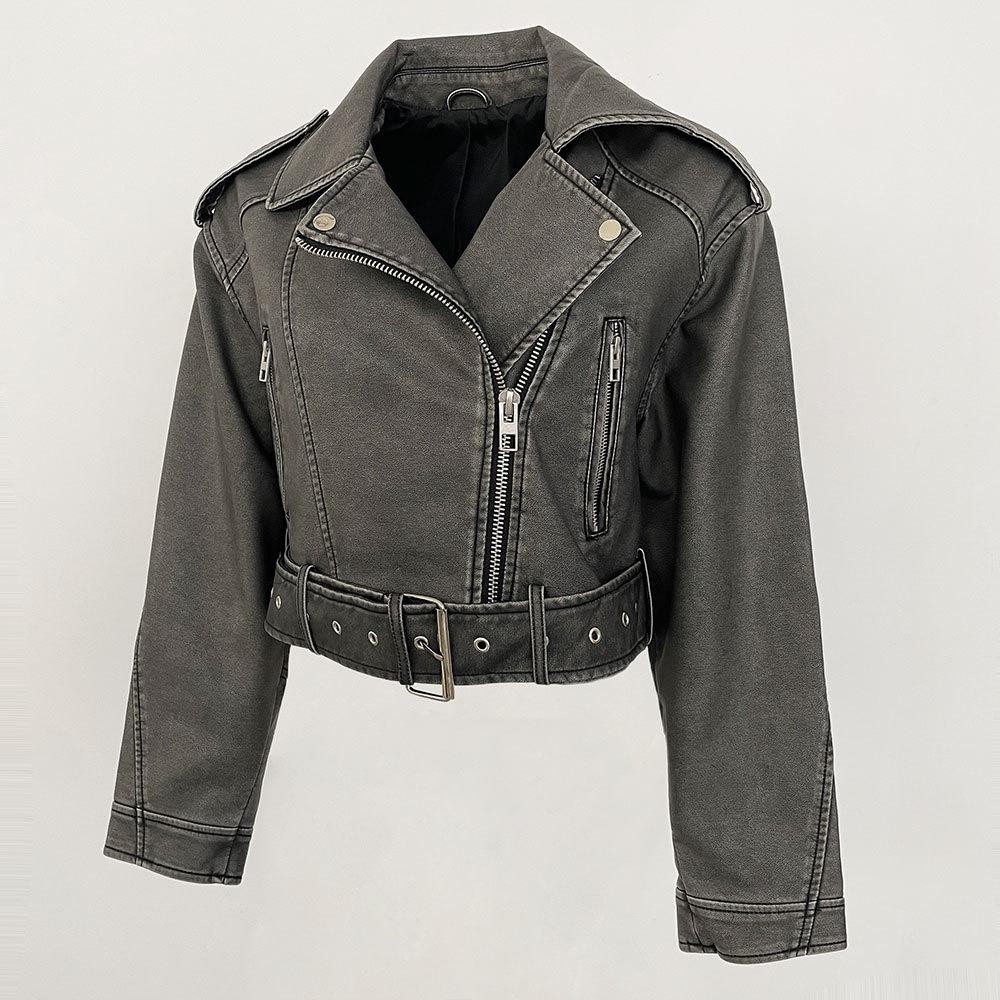 Chaqueta de moto de primavera y otoño 2024, delgada, de cuero PU, de primavera, de cuero corto europeo, de alta gama para mujer