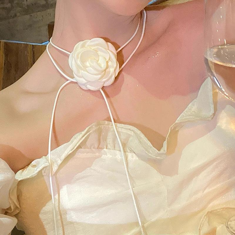 Collar con flor de rosa negra popular en Amazon, gargantilla de camelia para mujer, collar decorativo con cadena de clavícula.