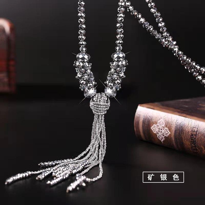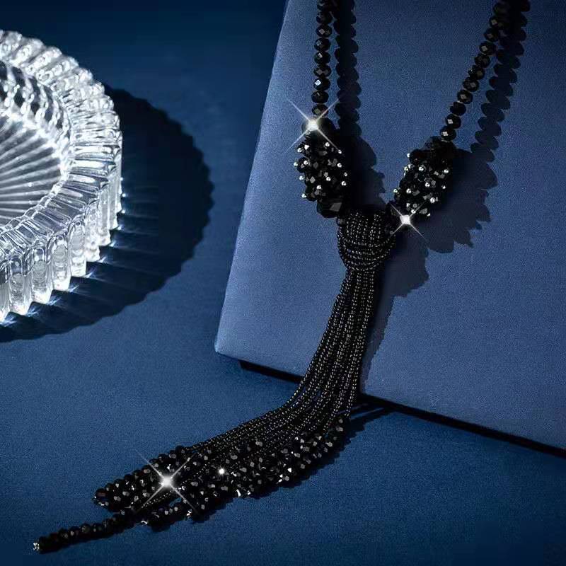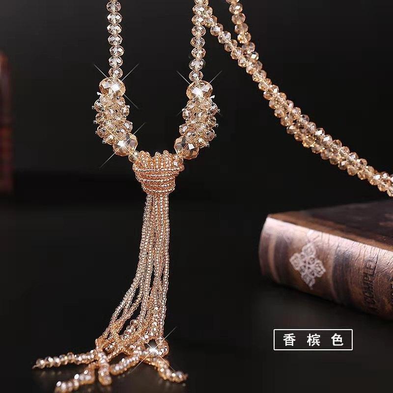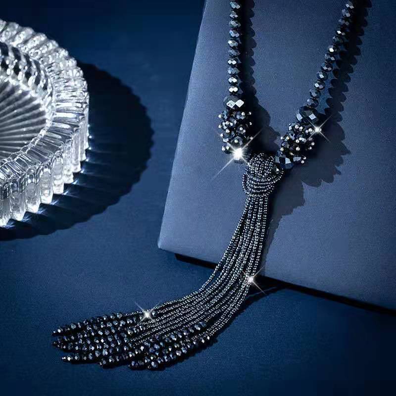 Nuevo y elegante collar colgante de borla larga de cristal que combina con cualquier atuendo.