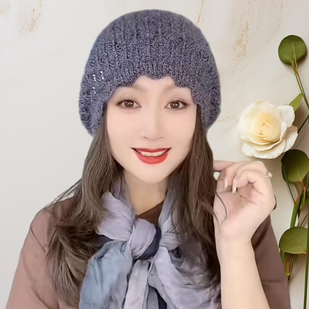 Sombrero de Lana Nuevo Invierno Madre Cálido Gorro Pulóver Mediana Edad y Ancianos Combinación Total Coreano Tejido Gorro de Punta Boina