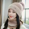 Gorro de Invierno para Mujer con Forro Polar Ciclismo a Prueba de Frío Otoño e Invierno Lana Gorro de Luna Combinable Cálido Protección para Cuello y Orejas Tejido