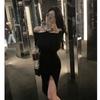 Vestido ajustado con hombros al descubierto y cadera para mujer, nuevo vestido de verano a la moda, elegante y sexy con abertura en la parte superior.