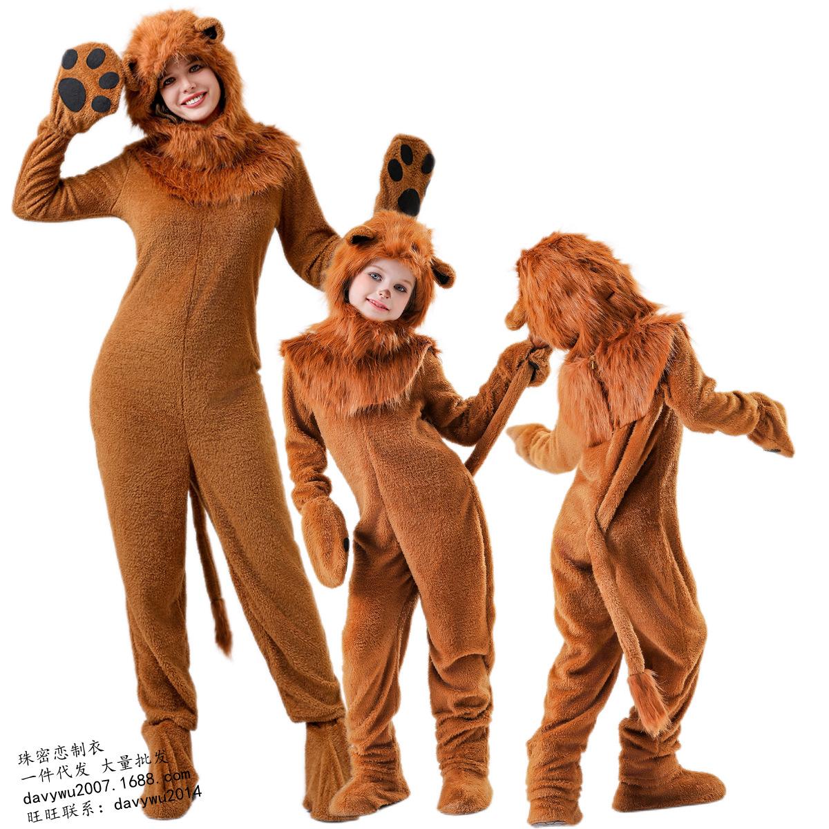 Drama Disfraz de León de Dibujos Animados Padre-Hijo Mago de Oz Halloween Cos Rendimiento Animal Disfraces para Adultos y Niños