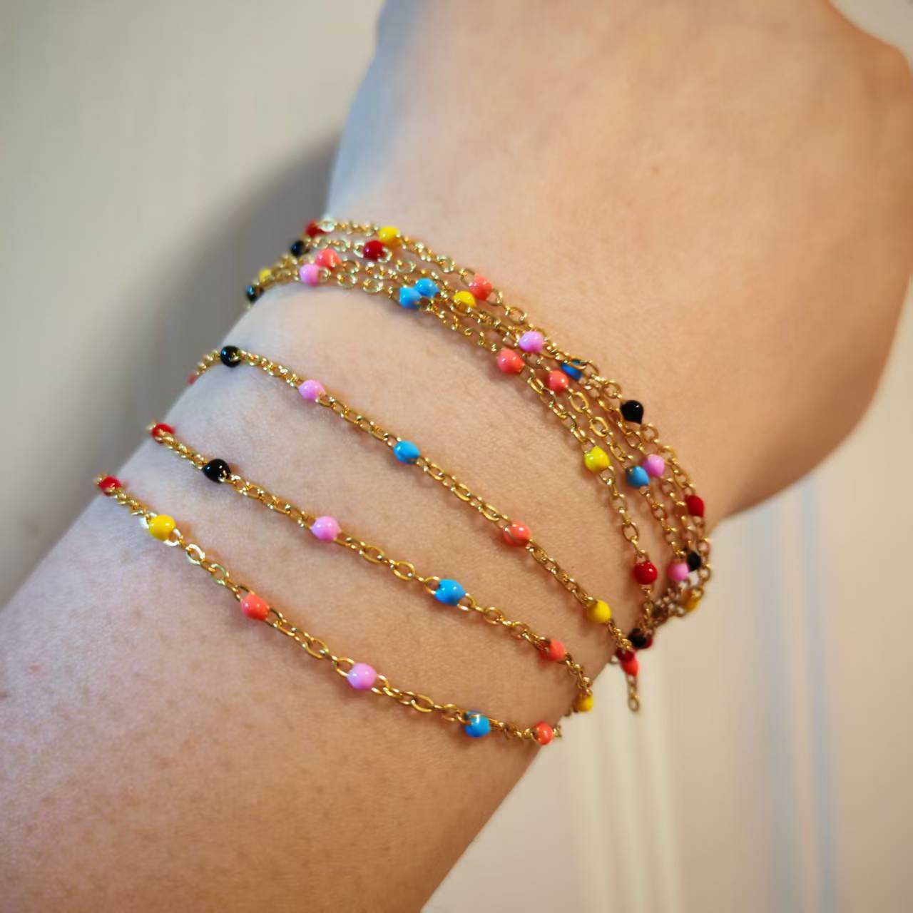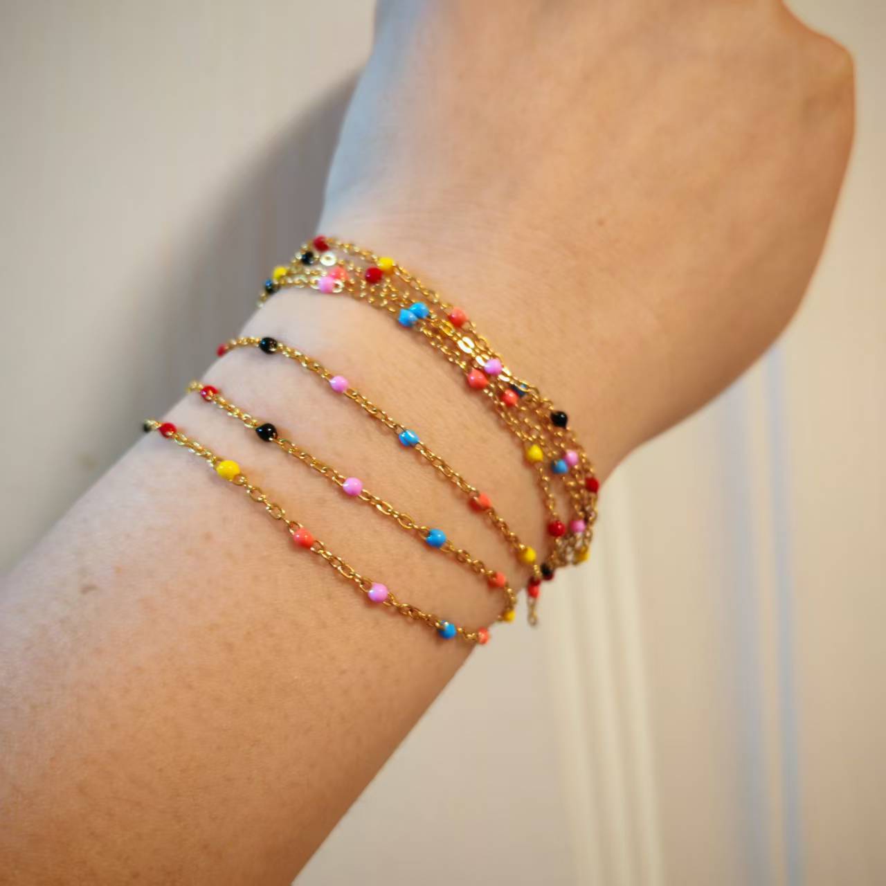 Pulsera de cadena de cuentas de esmalte dorado 18K que conserva el color 17,5 cm Explosiones de Amazon moda joyería Joker al por mayor
