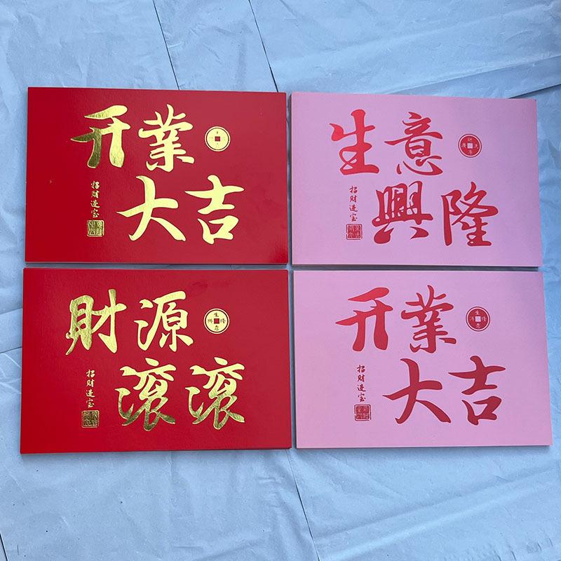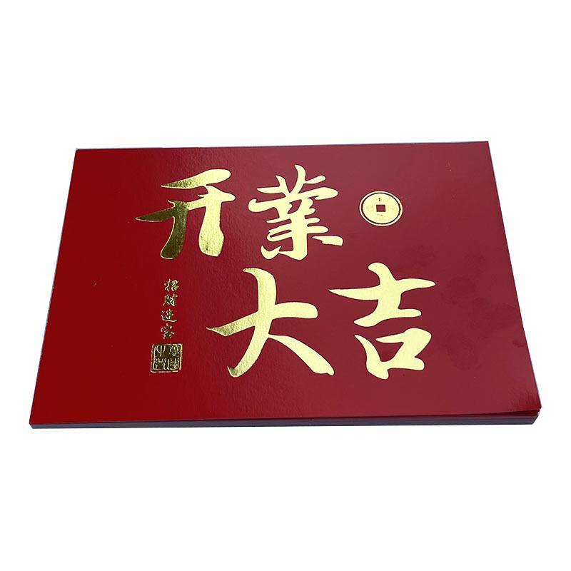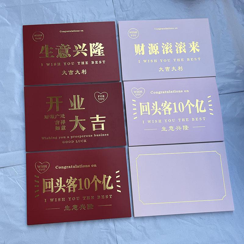 Tarjeta Cesta de Flores de Prosperidad Abierta Tarjeta de Felicitación Lámina Dorada Éxito Empresarial Tarjeta Roja Mensaje en Blanco Estilo Chino