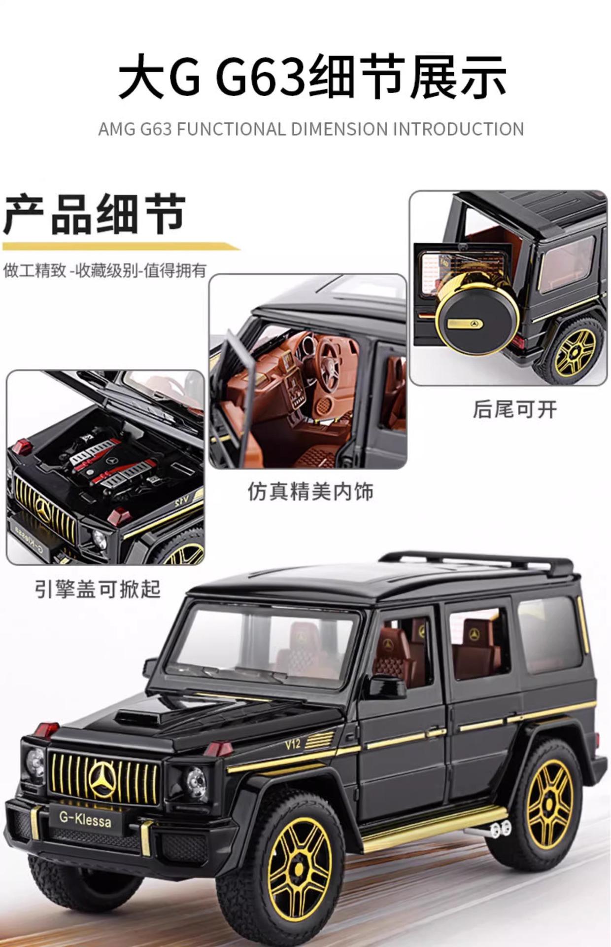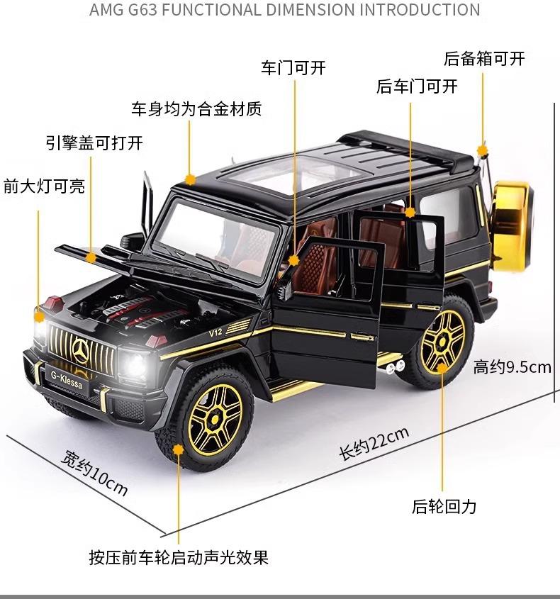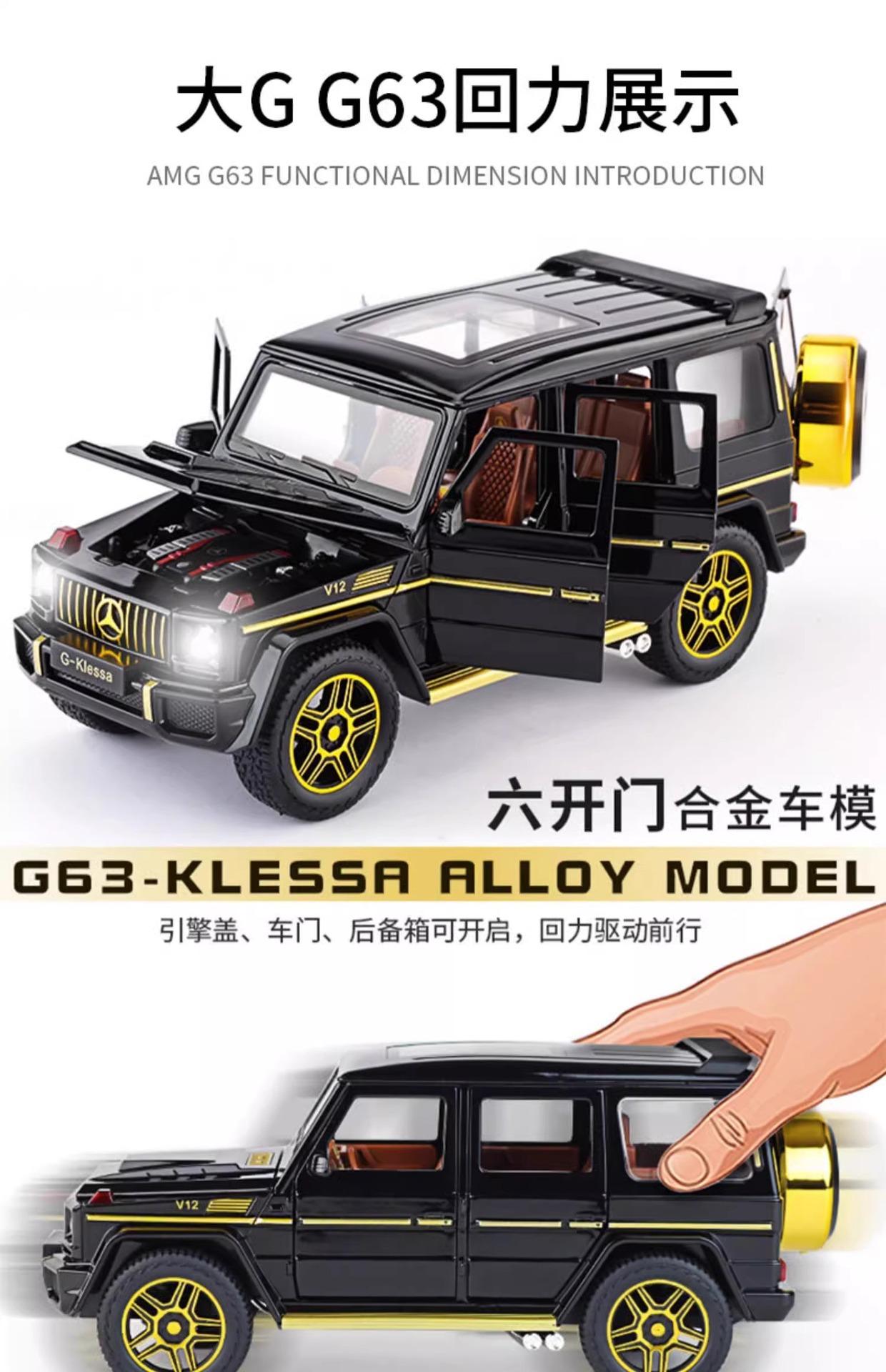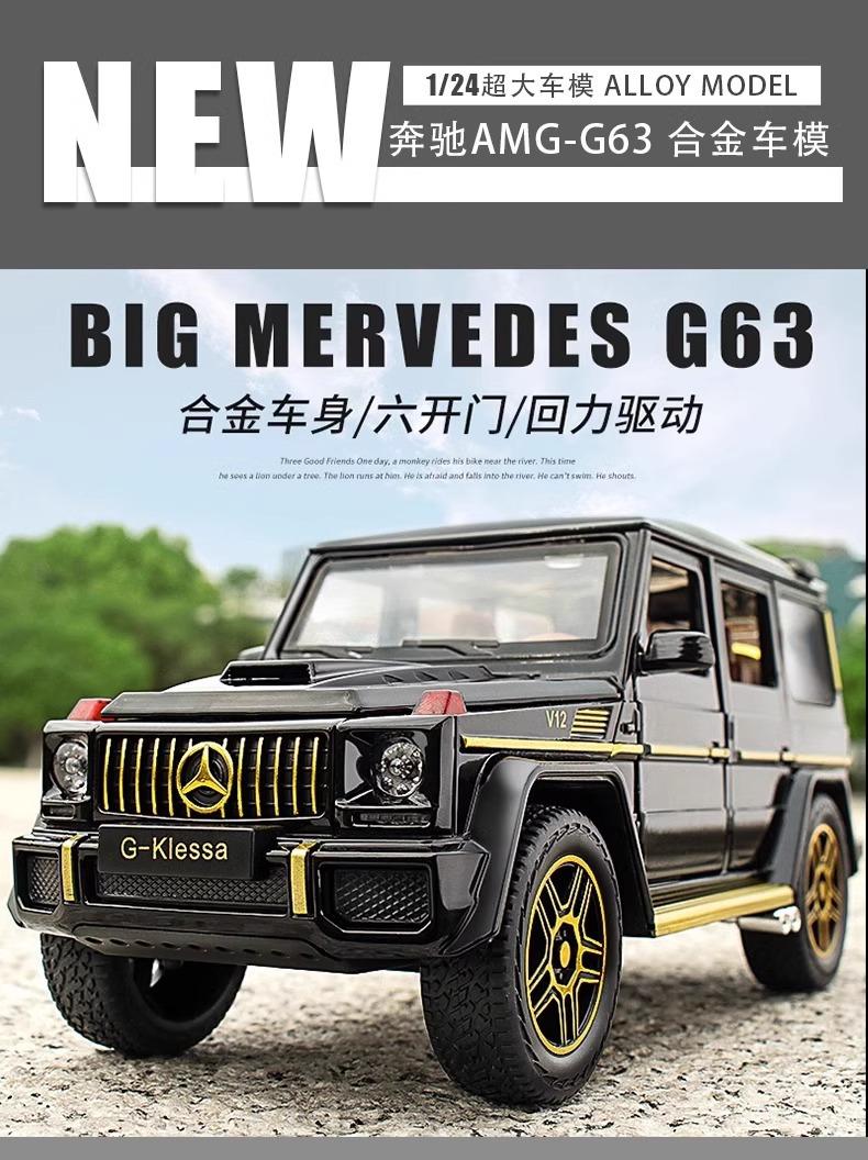 Modelo 1 de coche de aleación Mercedes-Benz Big G:Coche de juguete de aleación todoterreno G63 grande para niños, modelo de coche de simulación, 24 unidades