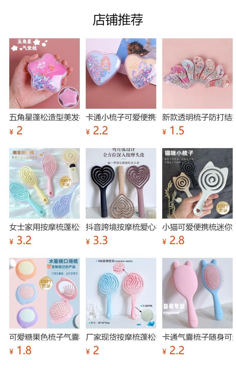 Blue air cushion comb, Pink air cushion comb, Yellow air cushion comb, Green air cushion comb