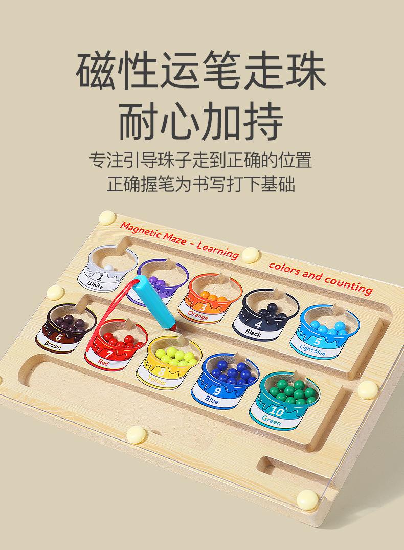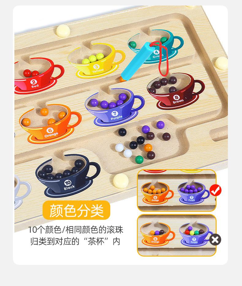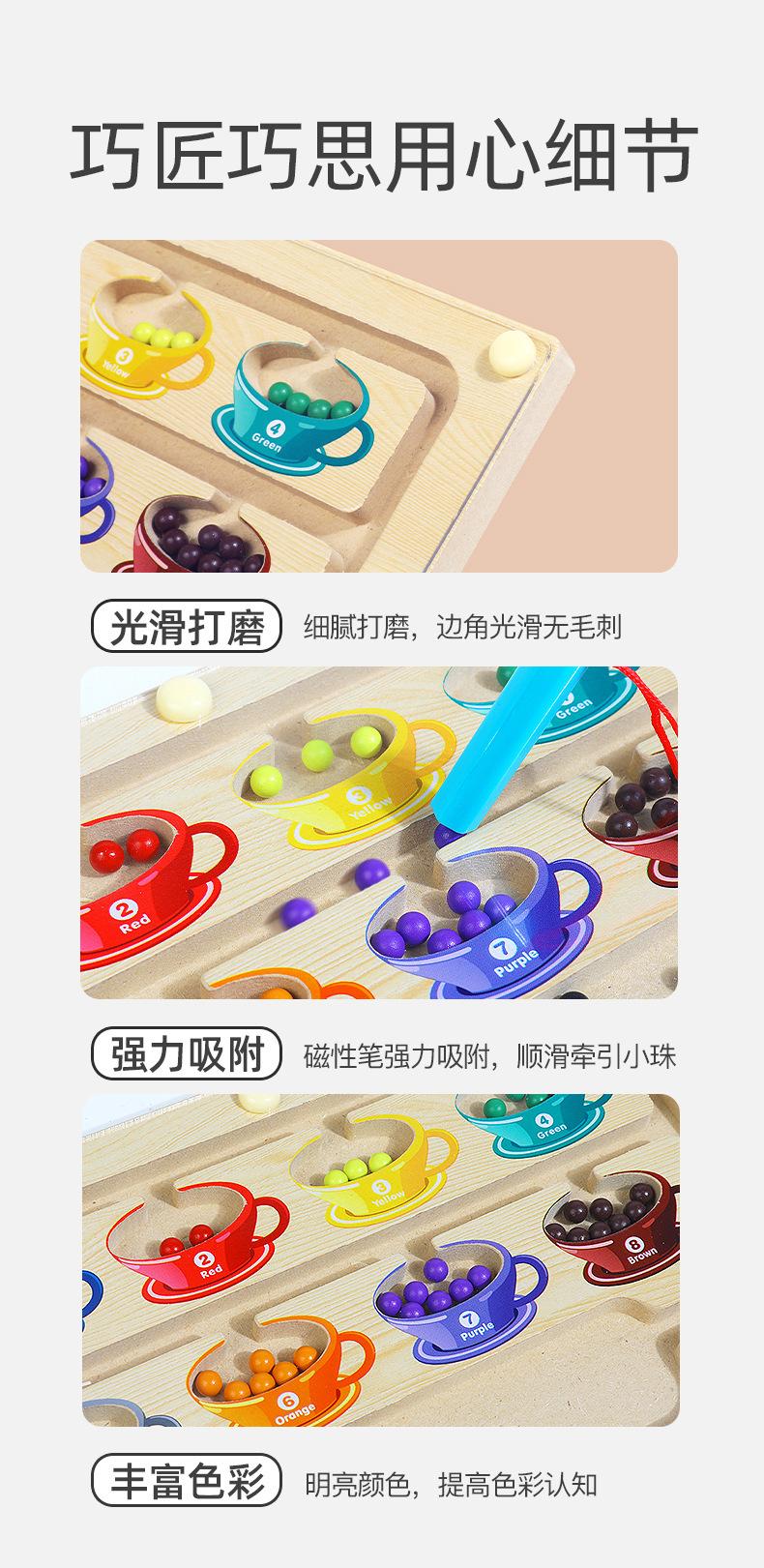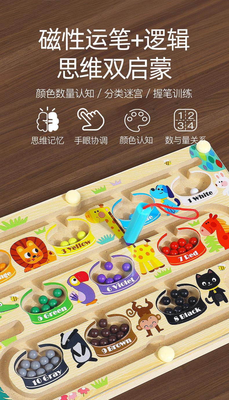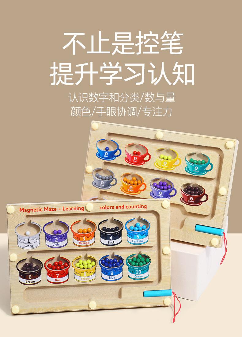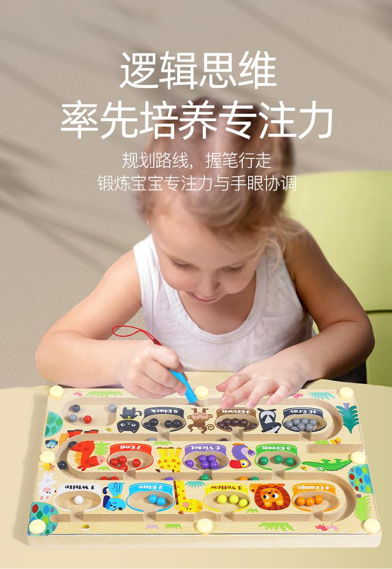 Cepillo de dientes para niños pequeños, cepillo de succión de hierro, beneficio para la inteligencia, entrenamiento del pensamiento lógico, laberinto de cuentas digitales magnéticas, juguetes de madera para educación temprana
